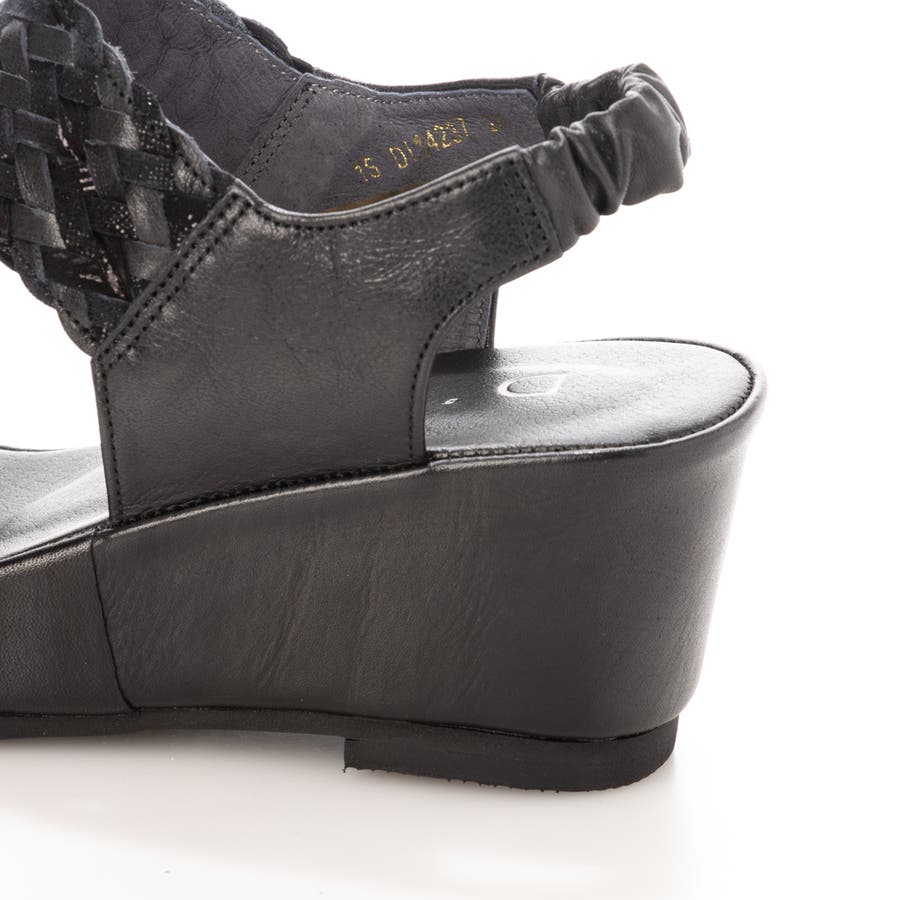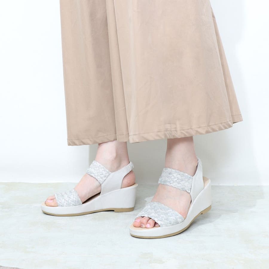 スタイルアップを狙える6㎝ヒールながら、安定感のあるウェッジタイプなのも嬉しいポイント。