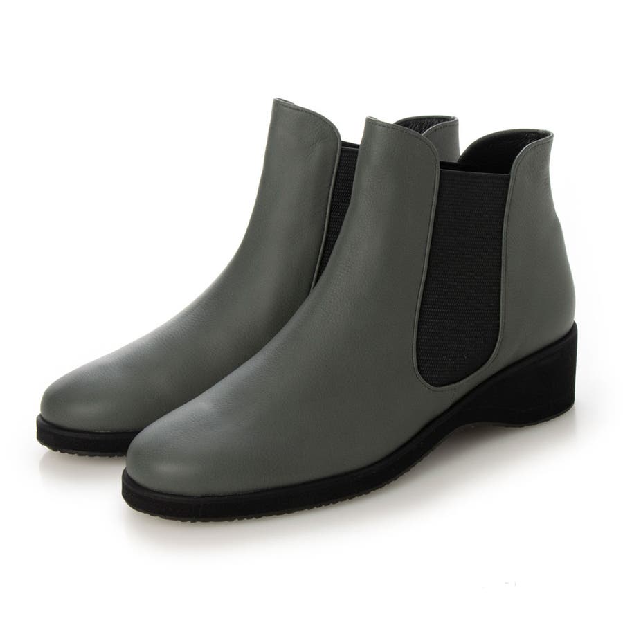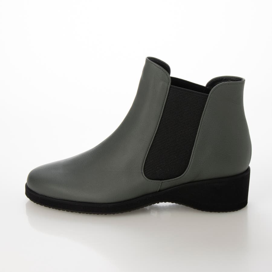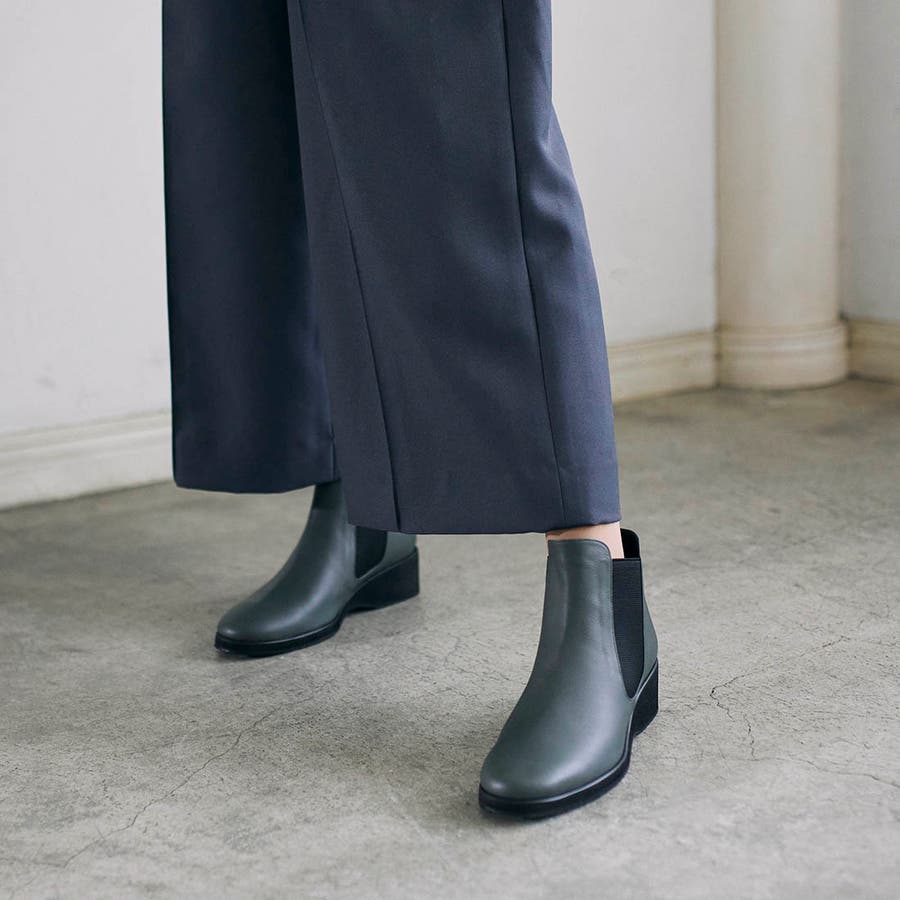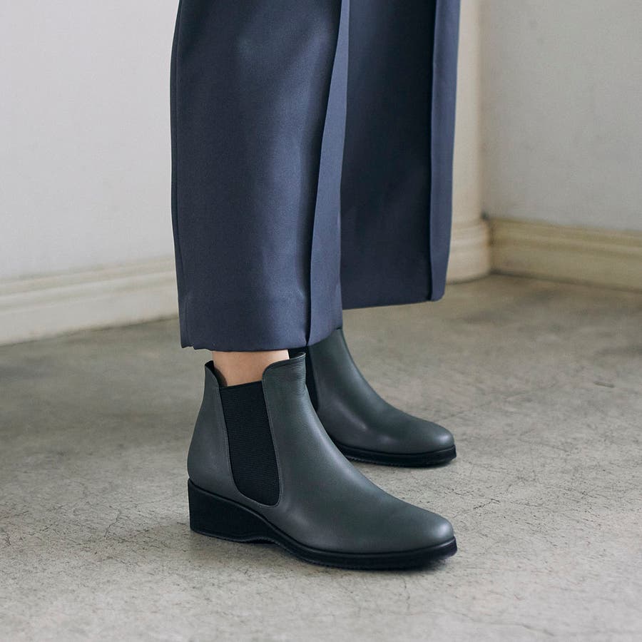 すっきりとしたラウンドトゥのシルエットが美しいサイドゴアショートブーツ。