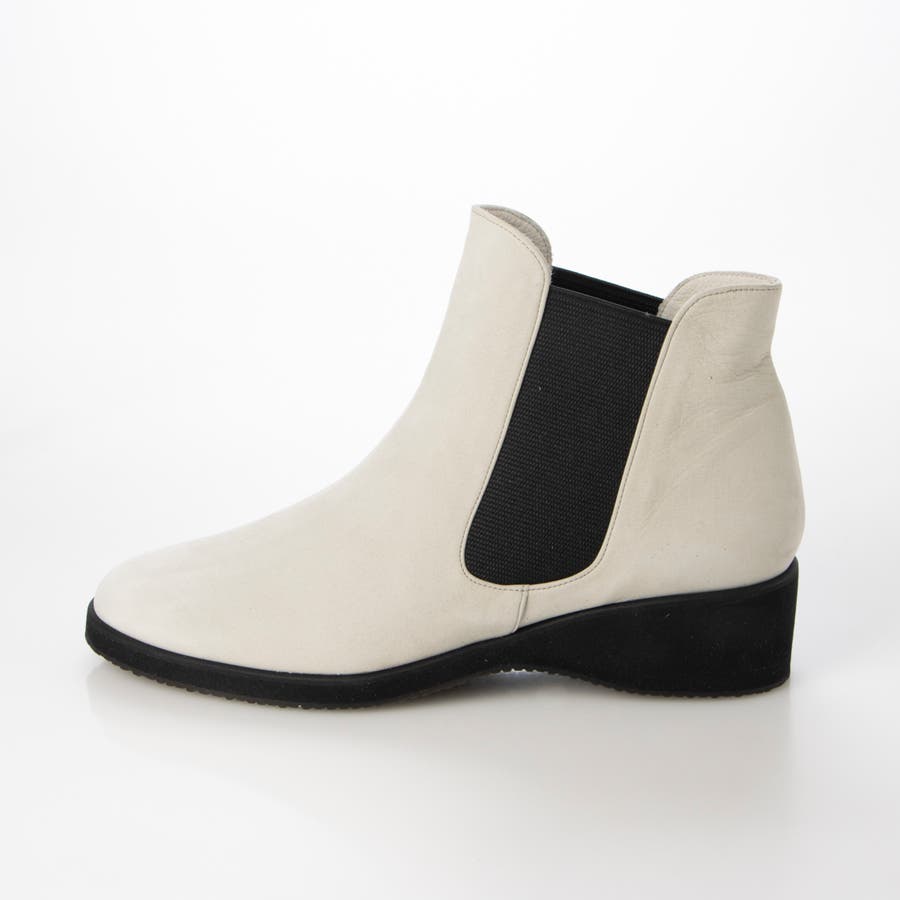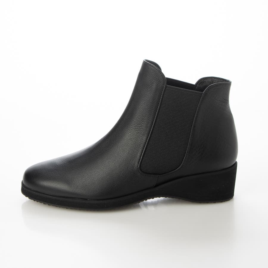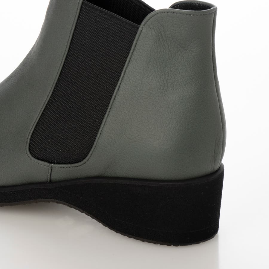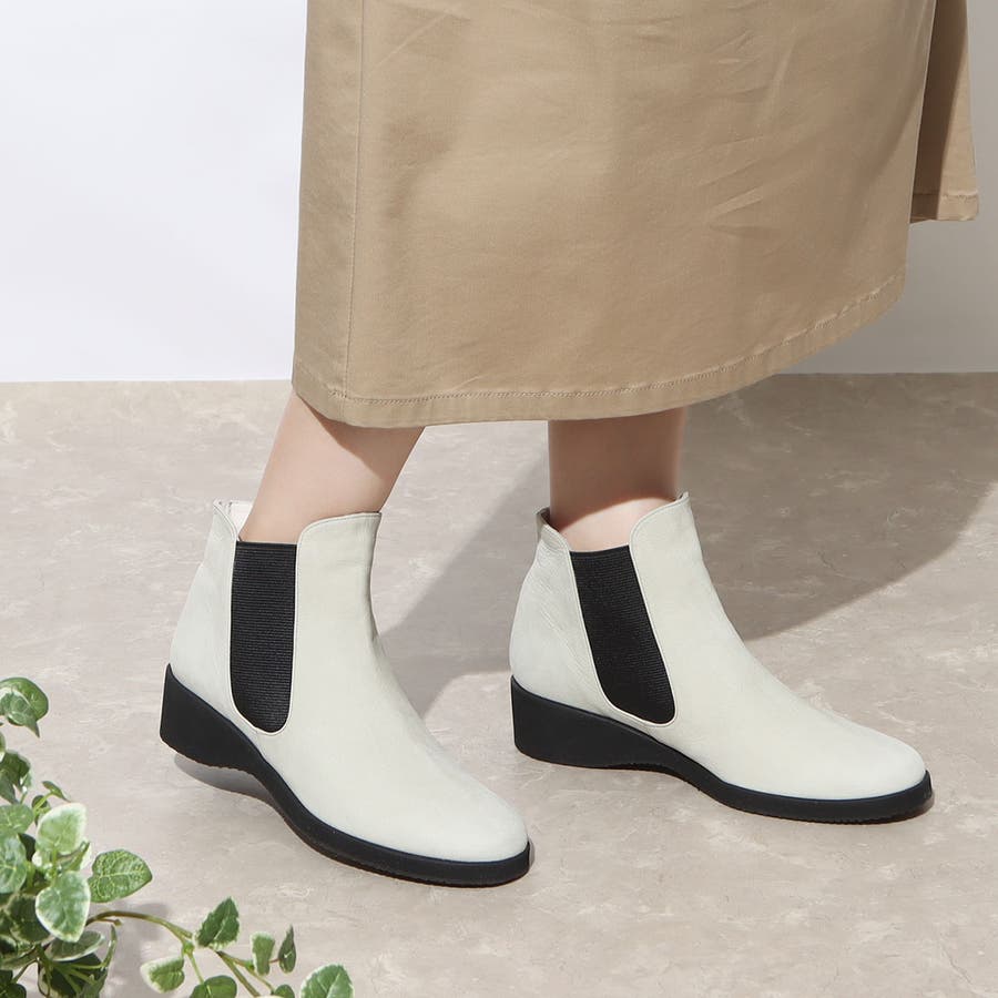 すっきりとしたラウンドトゥのシルエットが美しいサイドゴアショートブーツ。