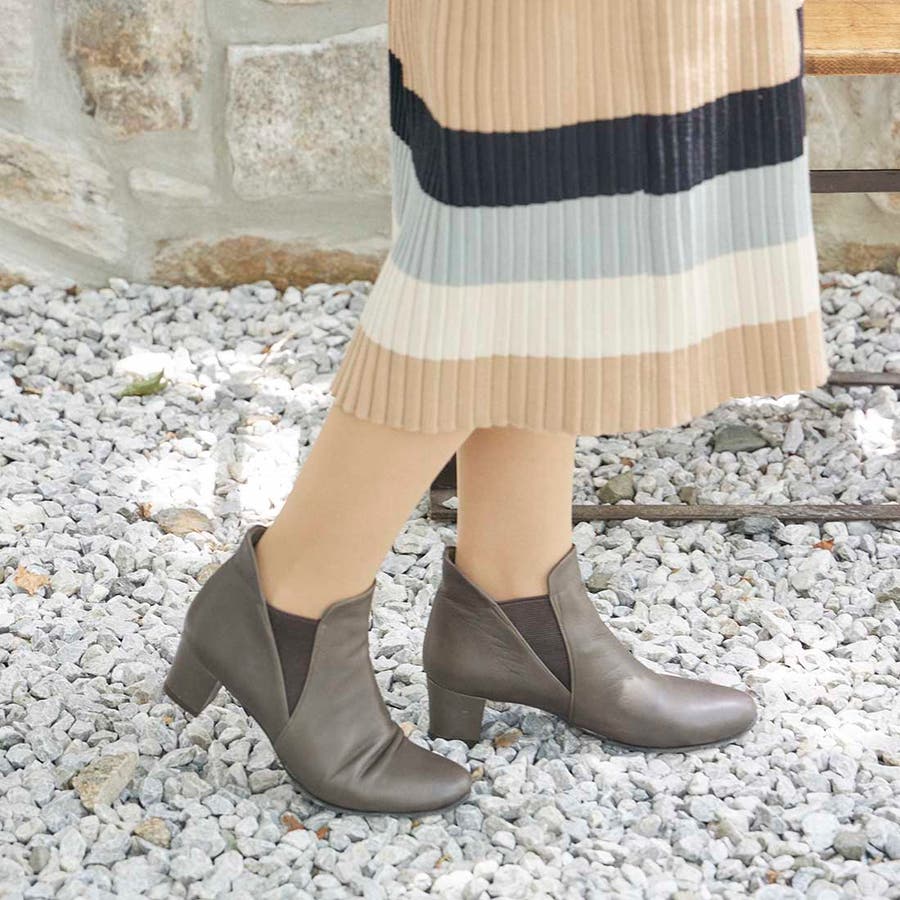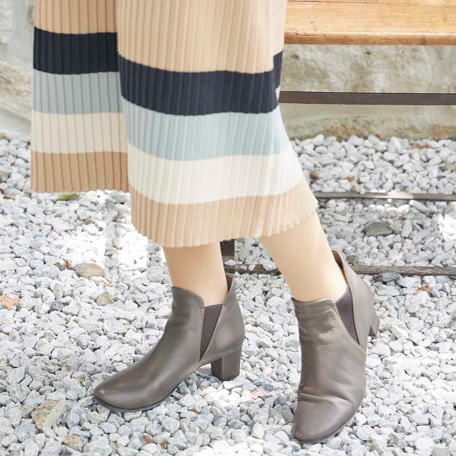 シャープなデザインのサイドゴアが足元を華麗に演出するD'ICI定番のショートブーツ。