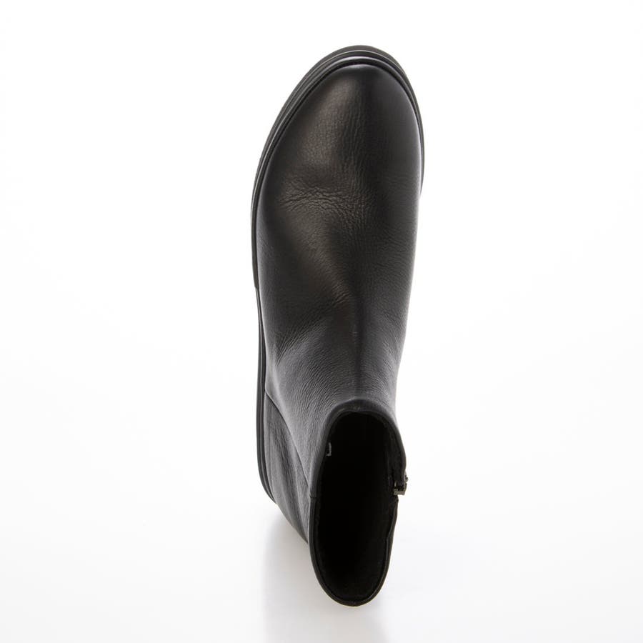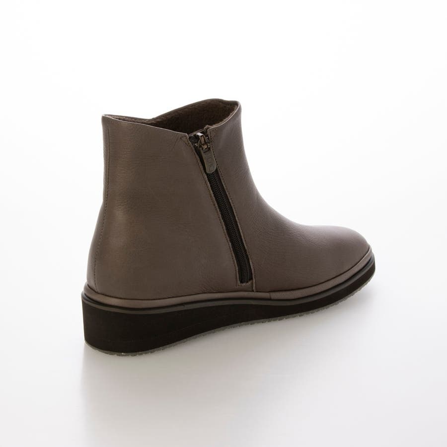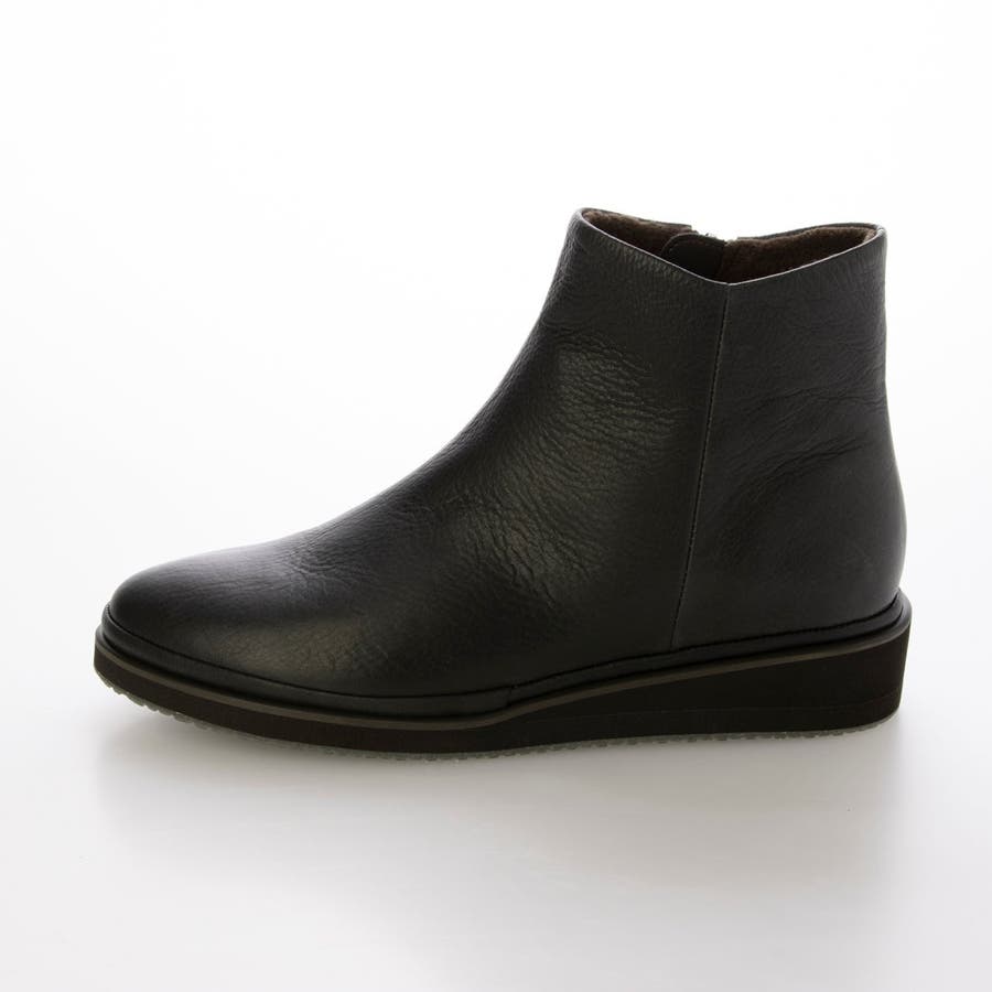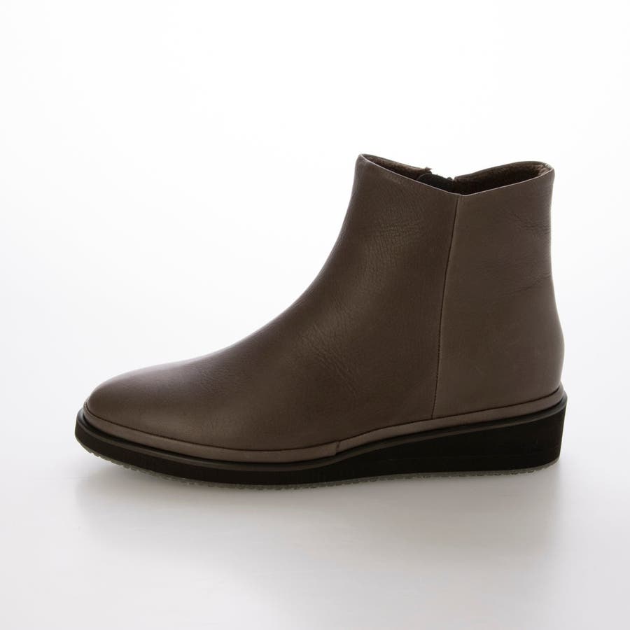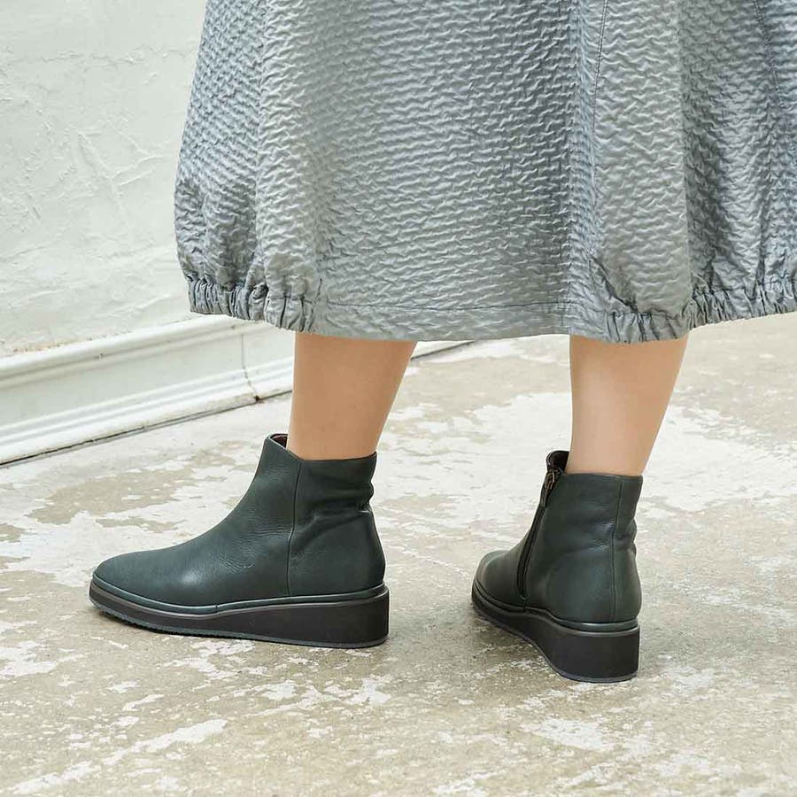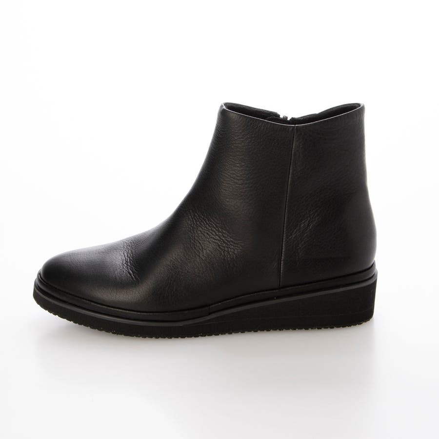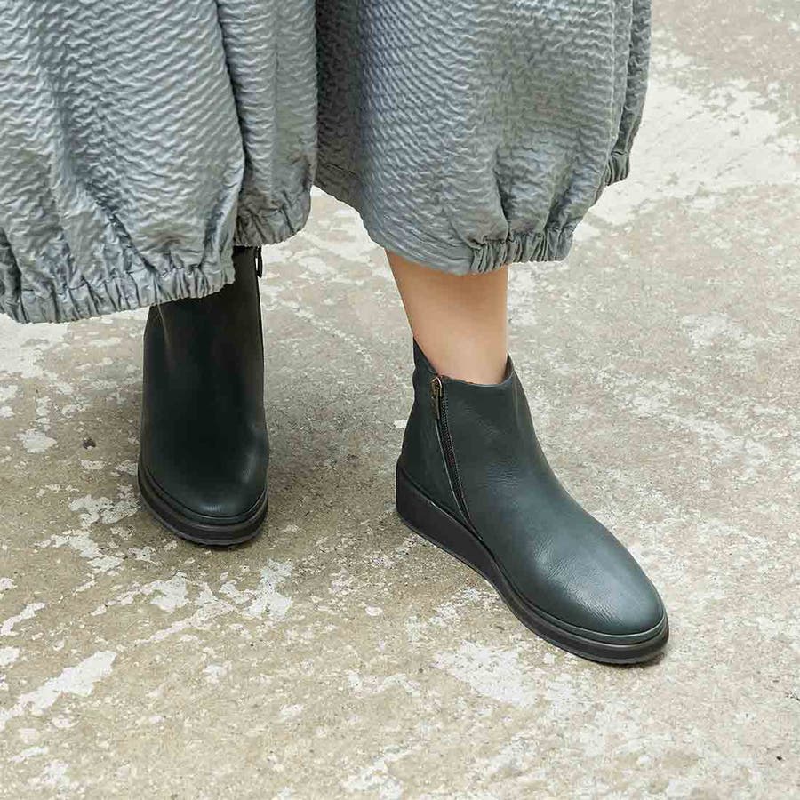 デザインをそぎおとしキレイ目スッキリなシルエットのウエッジヒールショートブーツ。