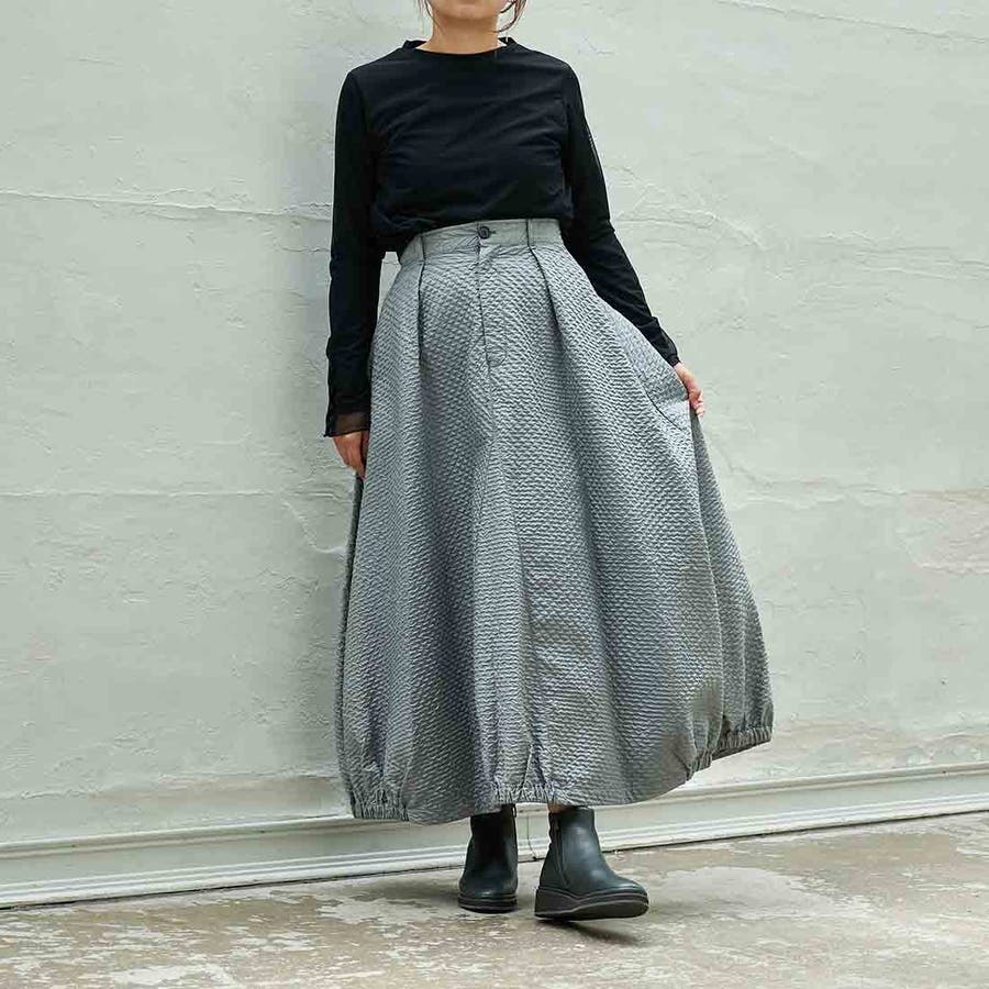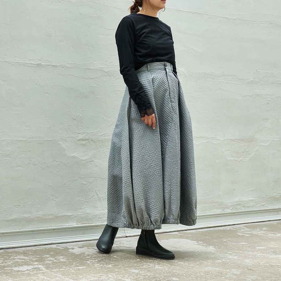 足首周りはスッキリとフィットするので、パンツでもスカートでも合わせやすい。