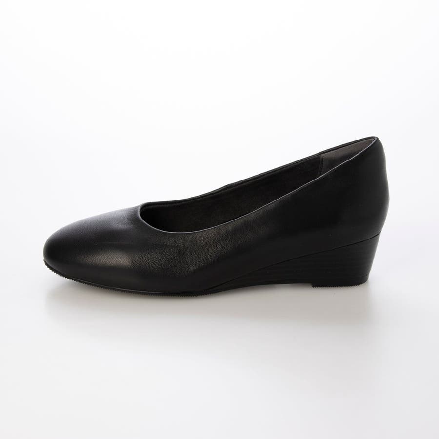 安定感と快適さを備えたシンプルで実用的なウエッジソールパンプス。