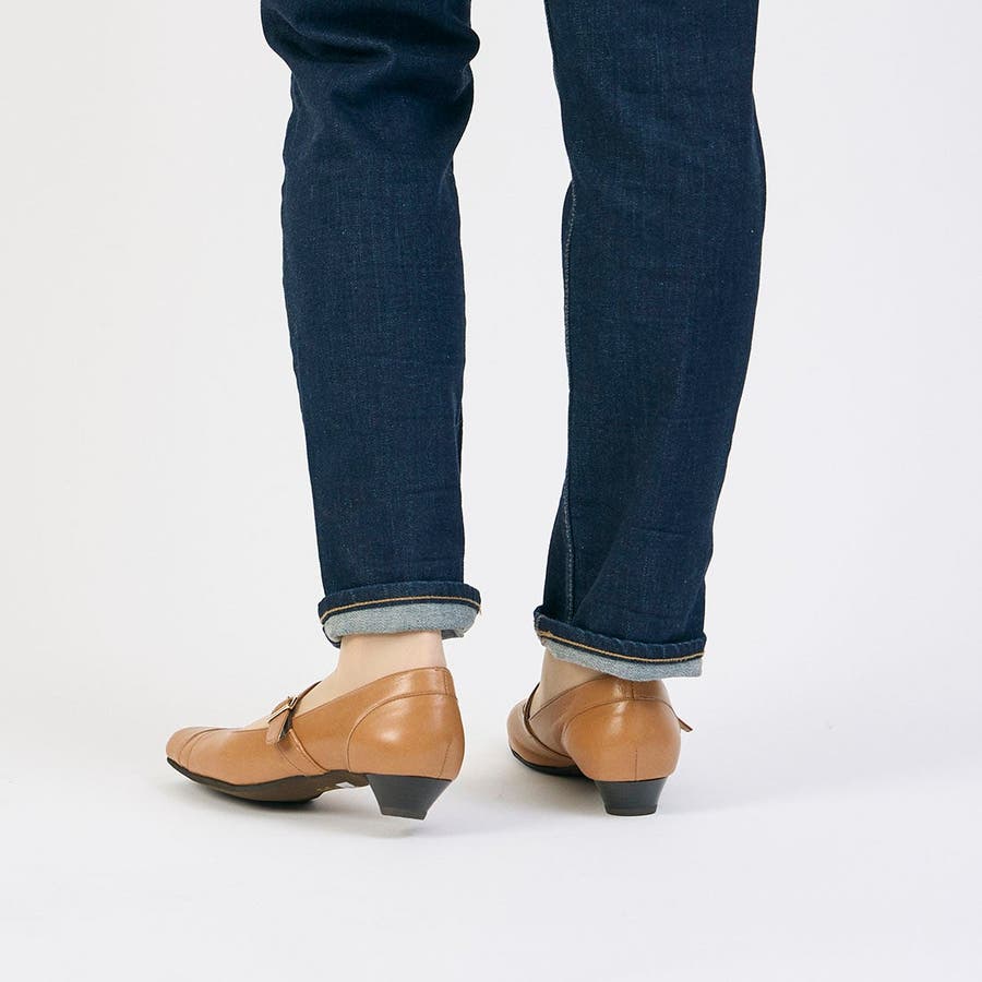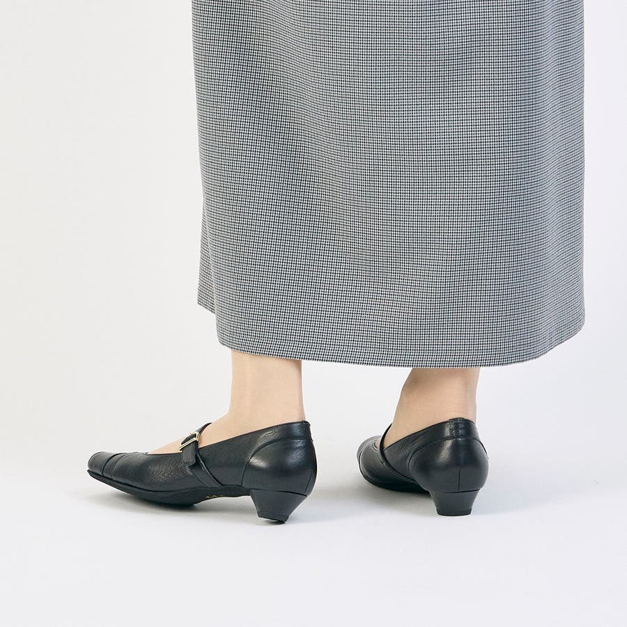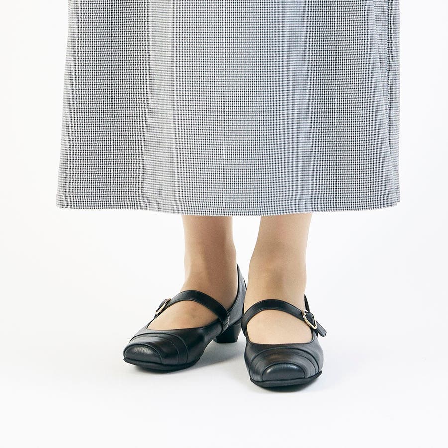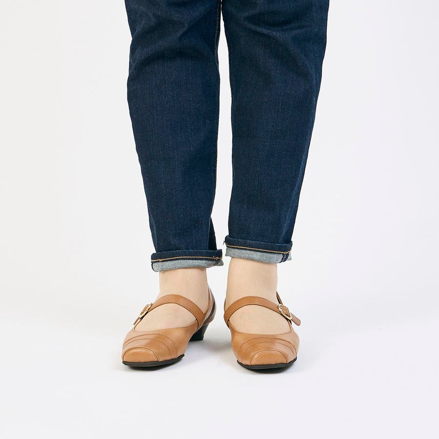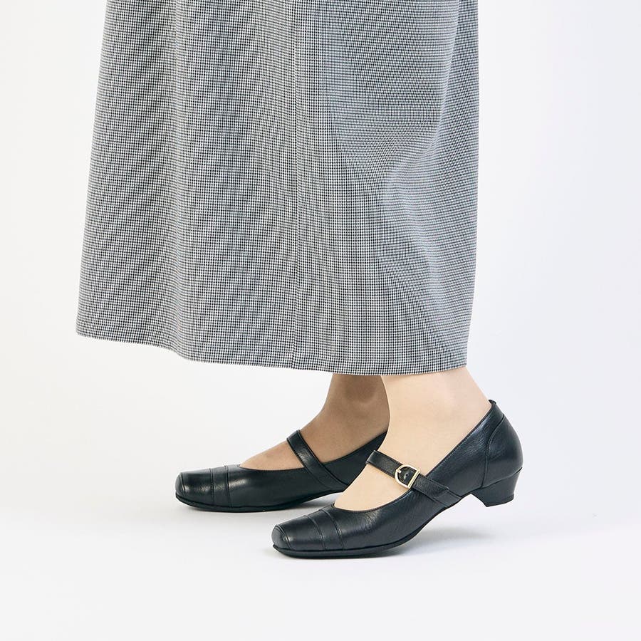 ベルトを外さずにそのまま履けるメリージェーンパンプス。