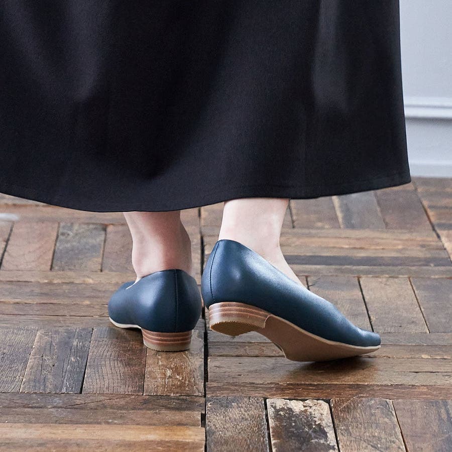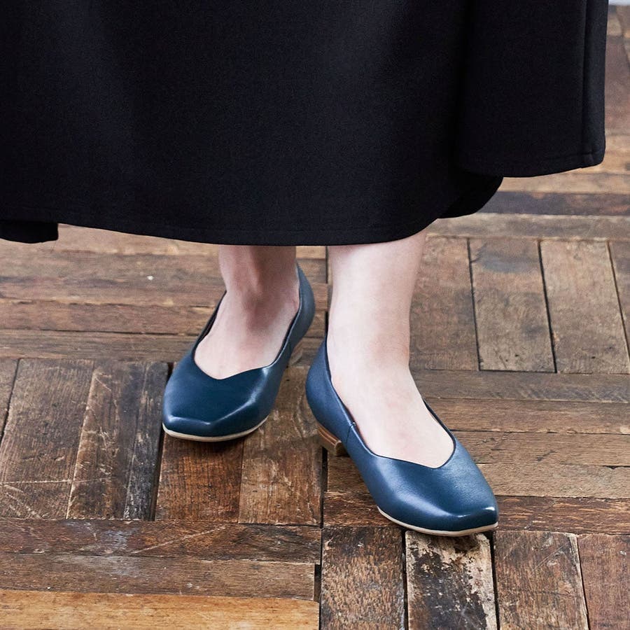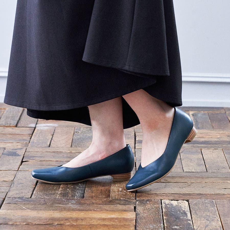 スクエアトゥがスタイリッシュかつ、足先がゆったりと収まり歩きやすく履き心地◎。