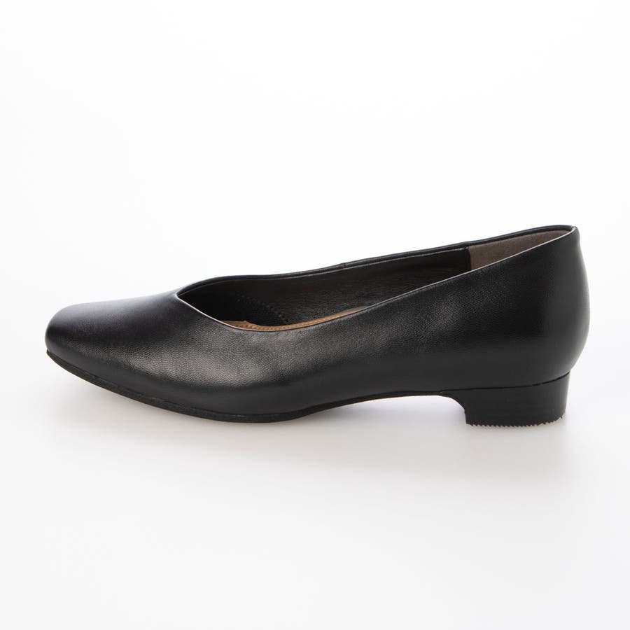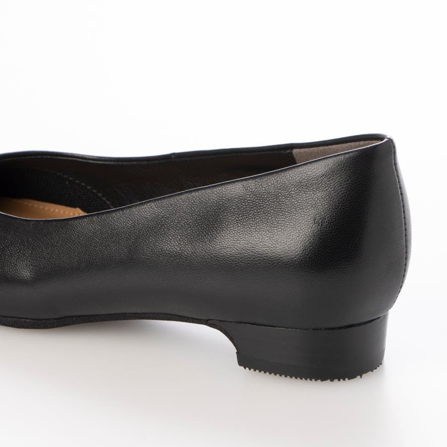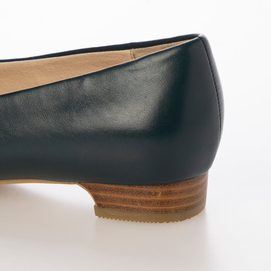 高級感のあるスタックヒールはローヒールなので疲れにくく、ベーシックなデザインでデイリーに使いやすい。