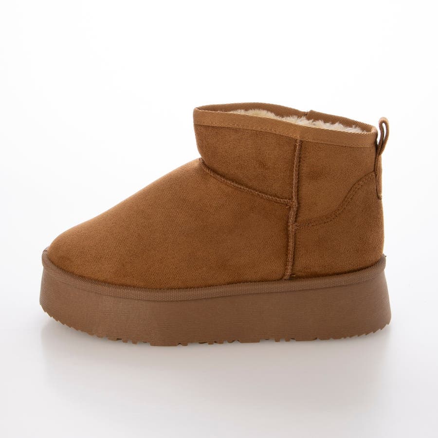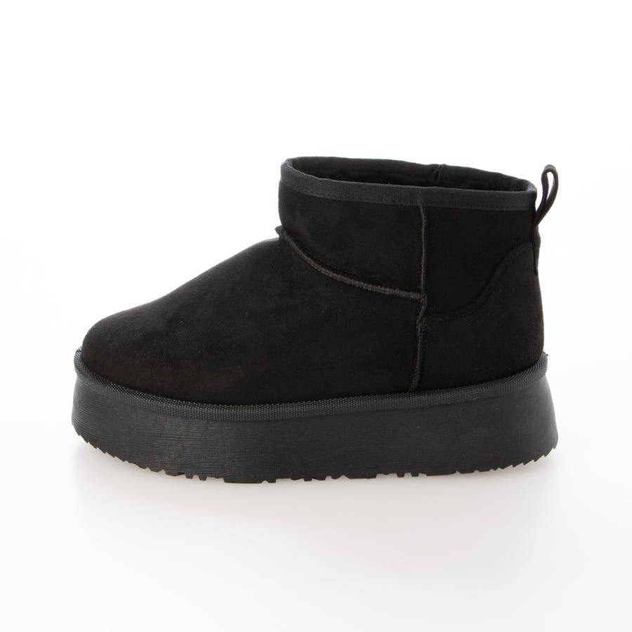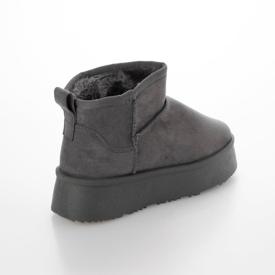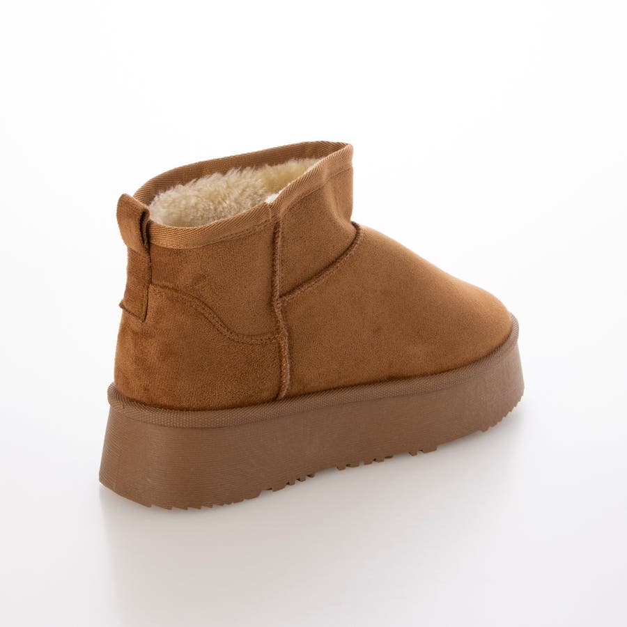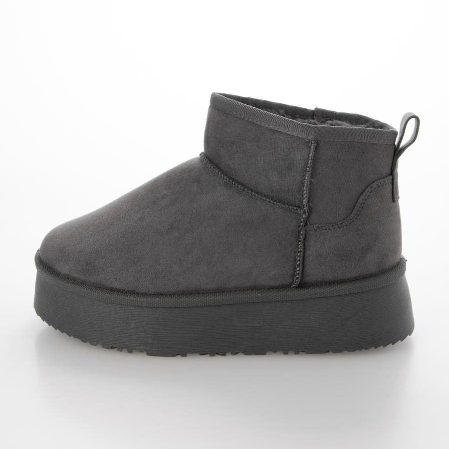 厚底とボアの素材感で足元にボリュームをプラスしてくれスタイリングのポイントに。