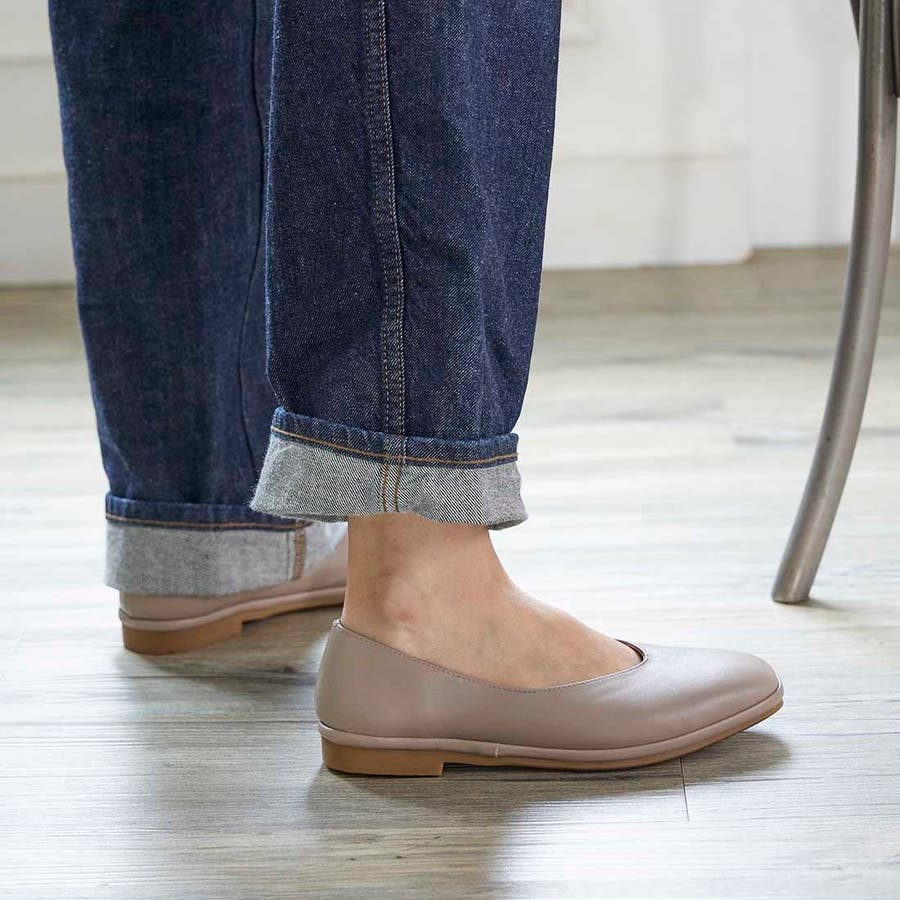屈曲の良いプラット製法で作られたフラットパンプス。(弊社品番IGSQ-22151、22152同ラスト)