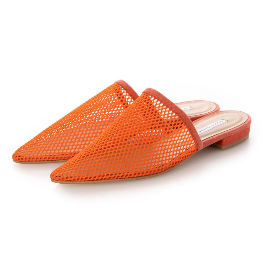 メッシュ素材が夏らしい印象を与えてくれる涼しげなフラットミュール。