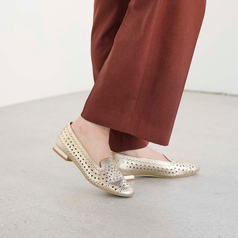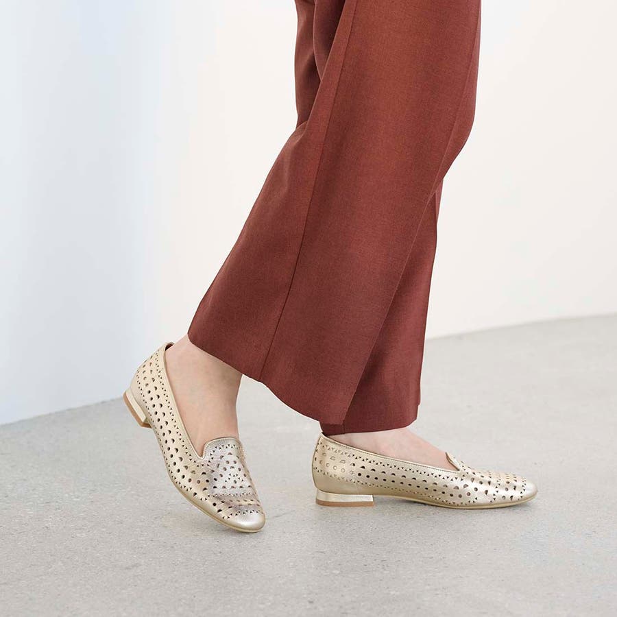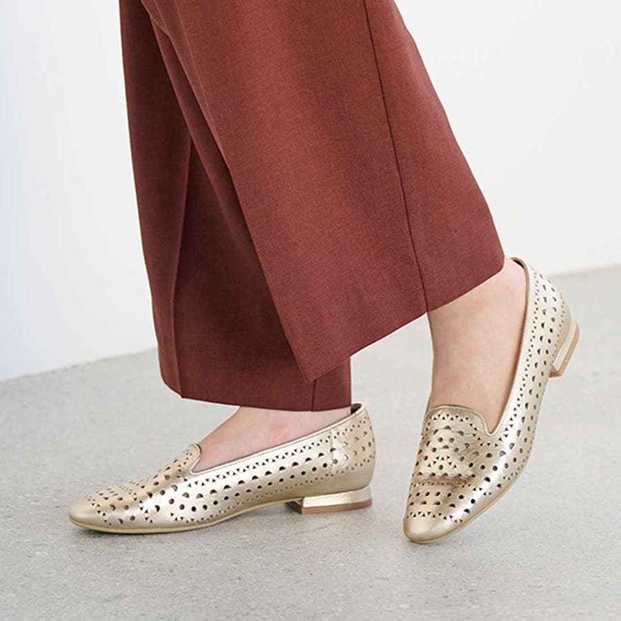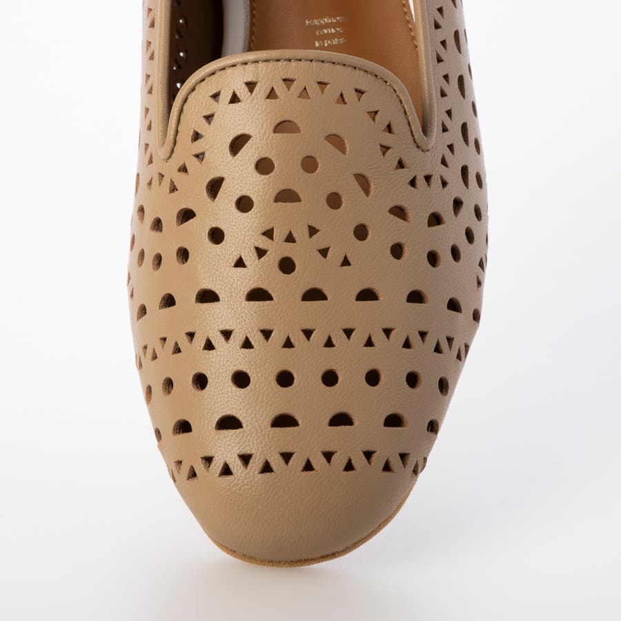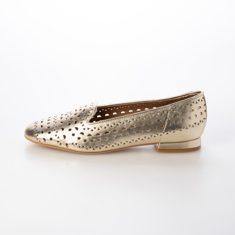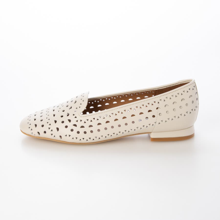 エスニック感のある華やかなパンチング柄で、リラックススタイルに程よいインパクトを与えてくれます。