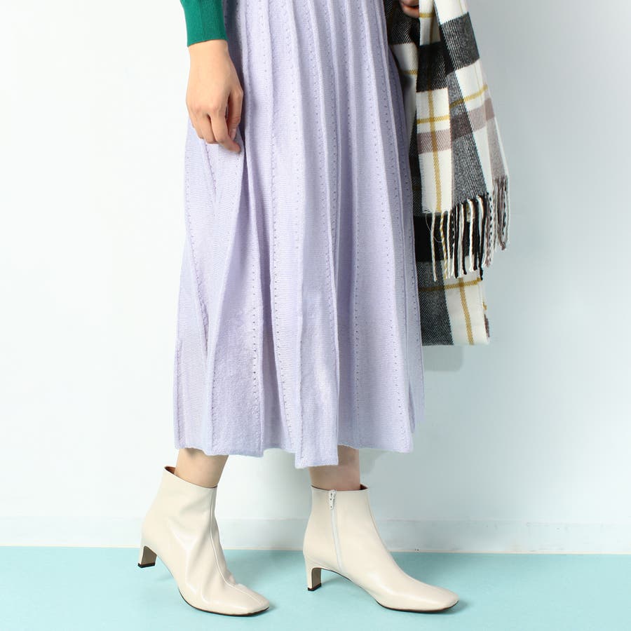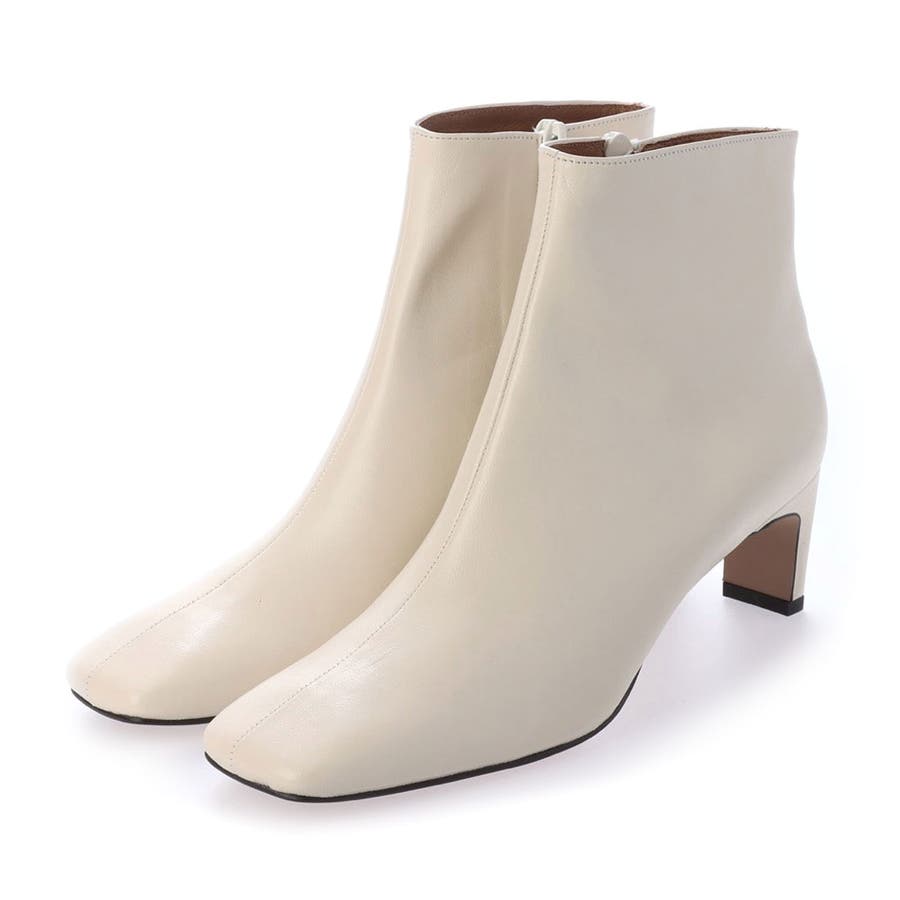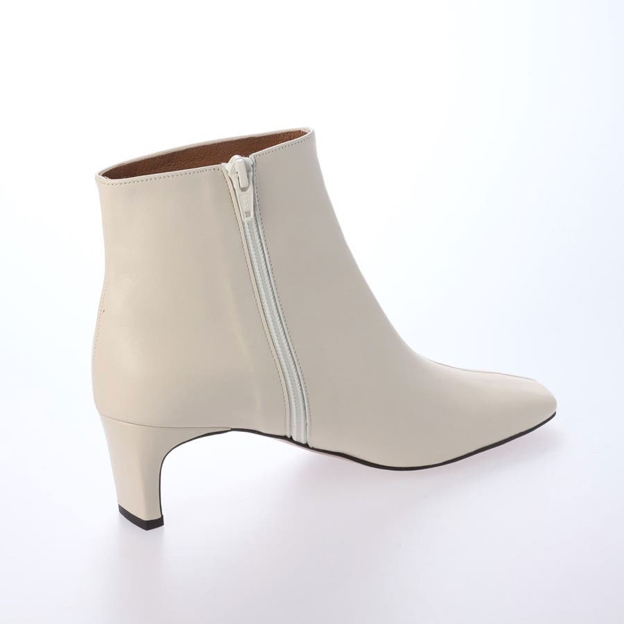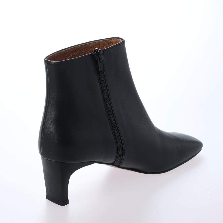 すっきりした幅広スクエアトゥと、幅広でも見た目華奢なヒールでよりモードな雰囲気のショートブーツ。