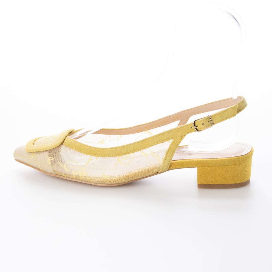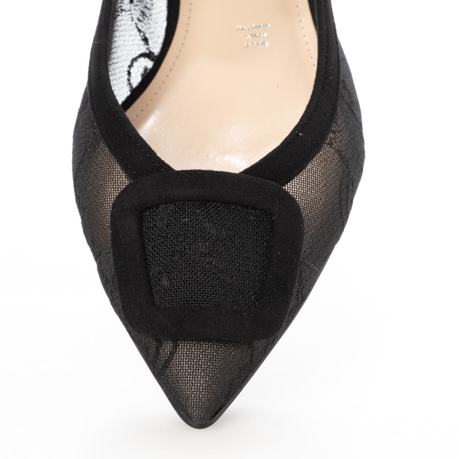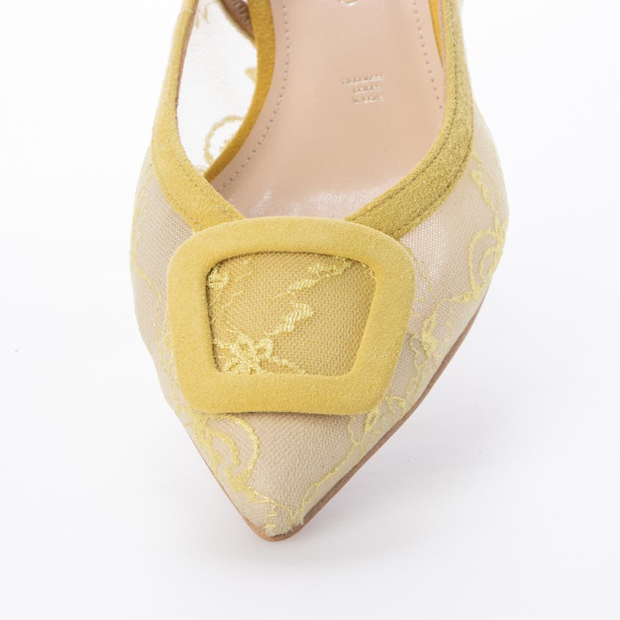 スクエアバックルが目を惹く、エレガンスなチュールパンプスがネット限定で登場。