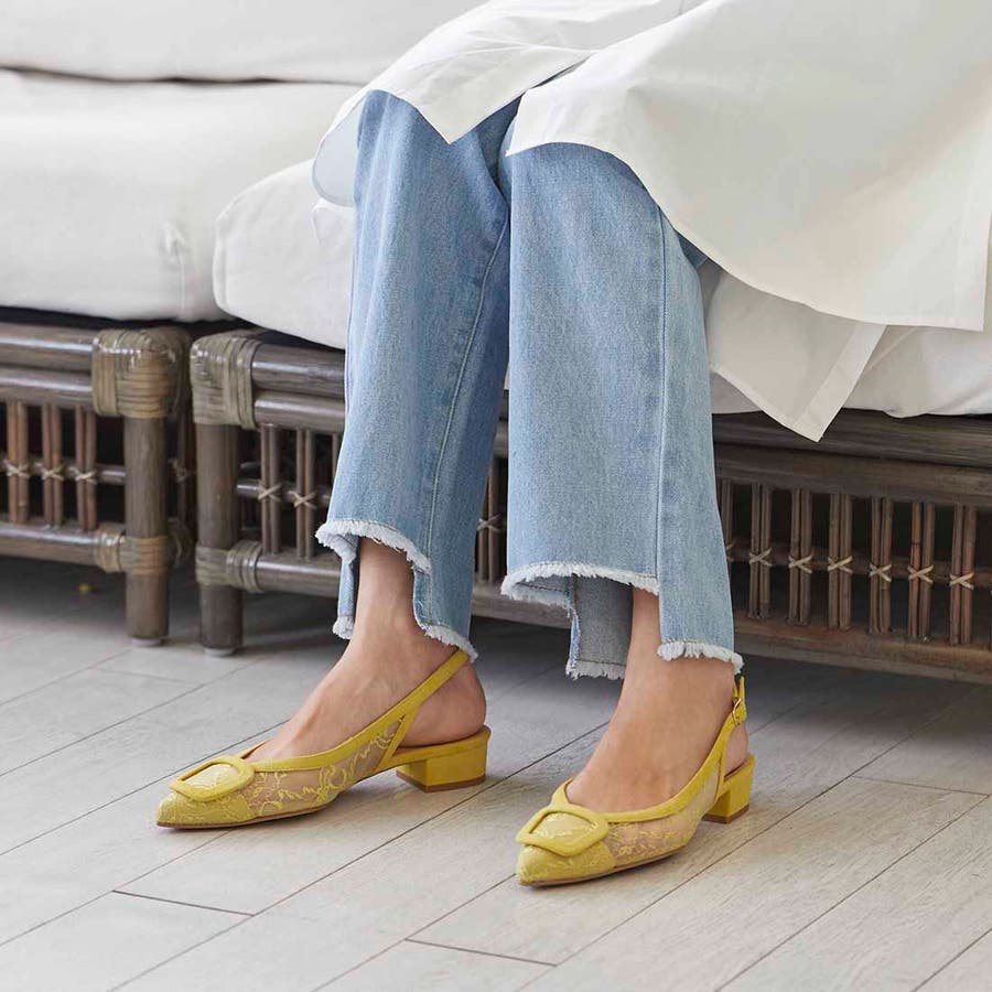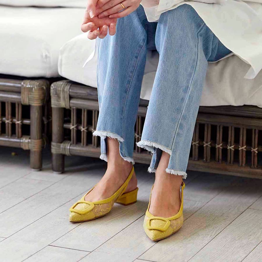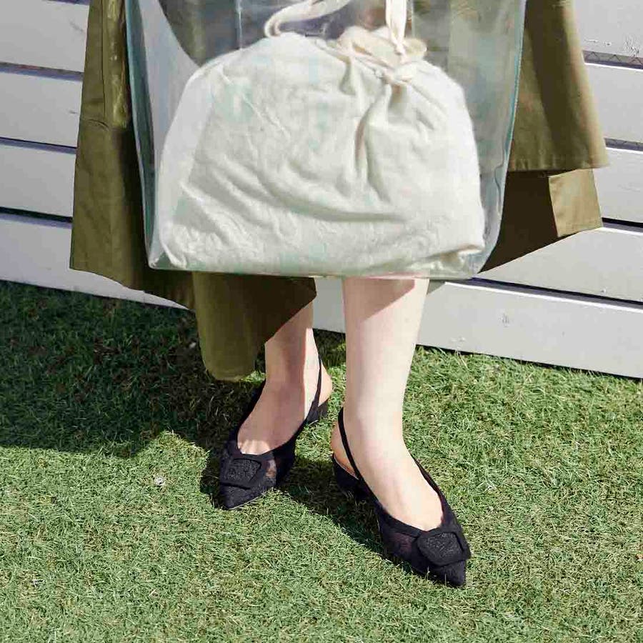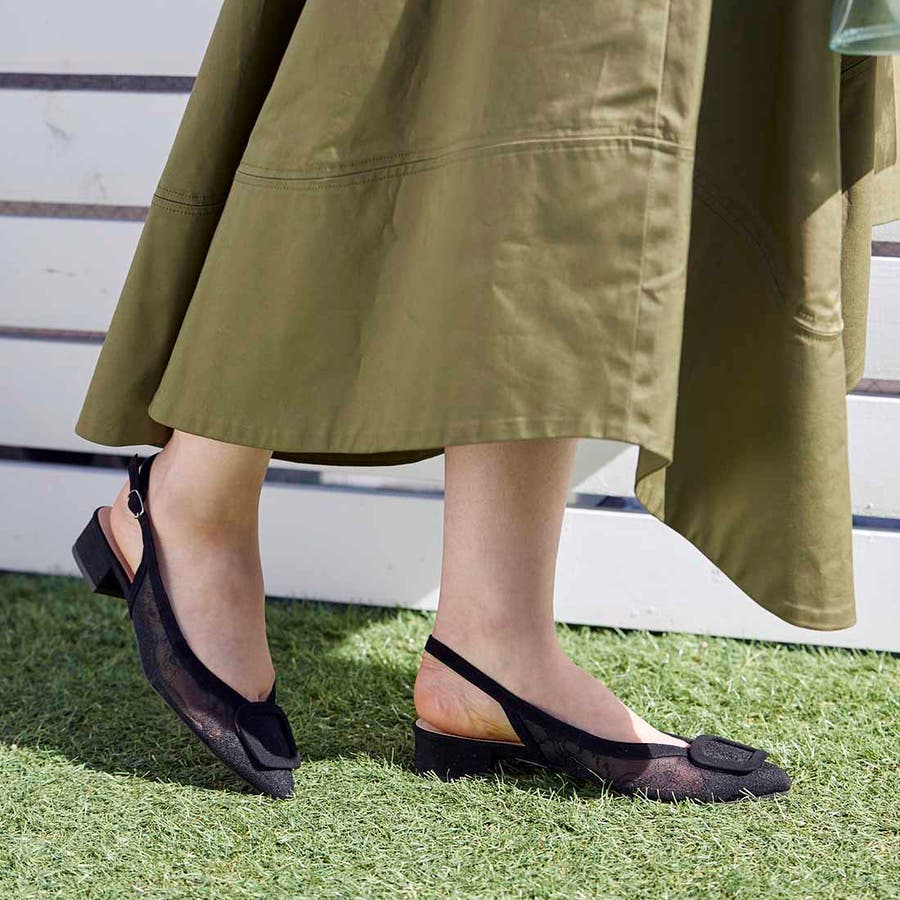 かかとをスッキリさせつつ、華奢なデザインが足元をグッと格上げしてくれそう。