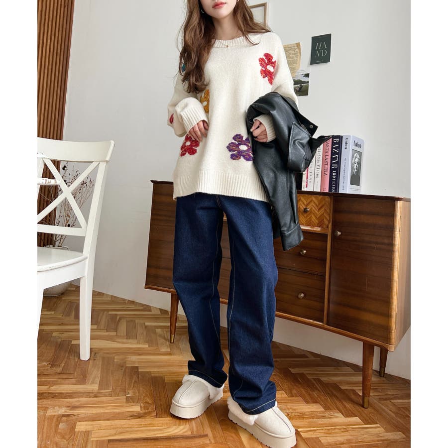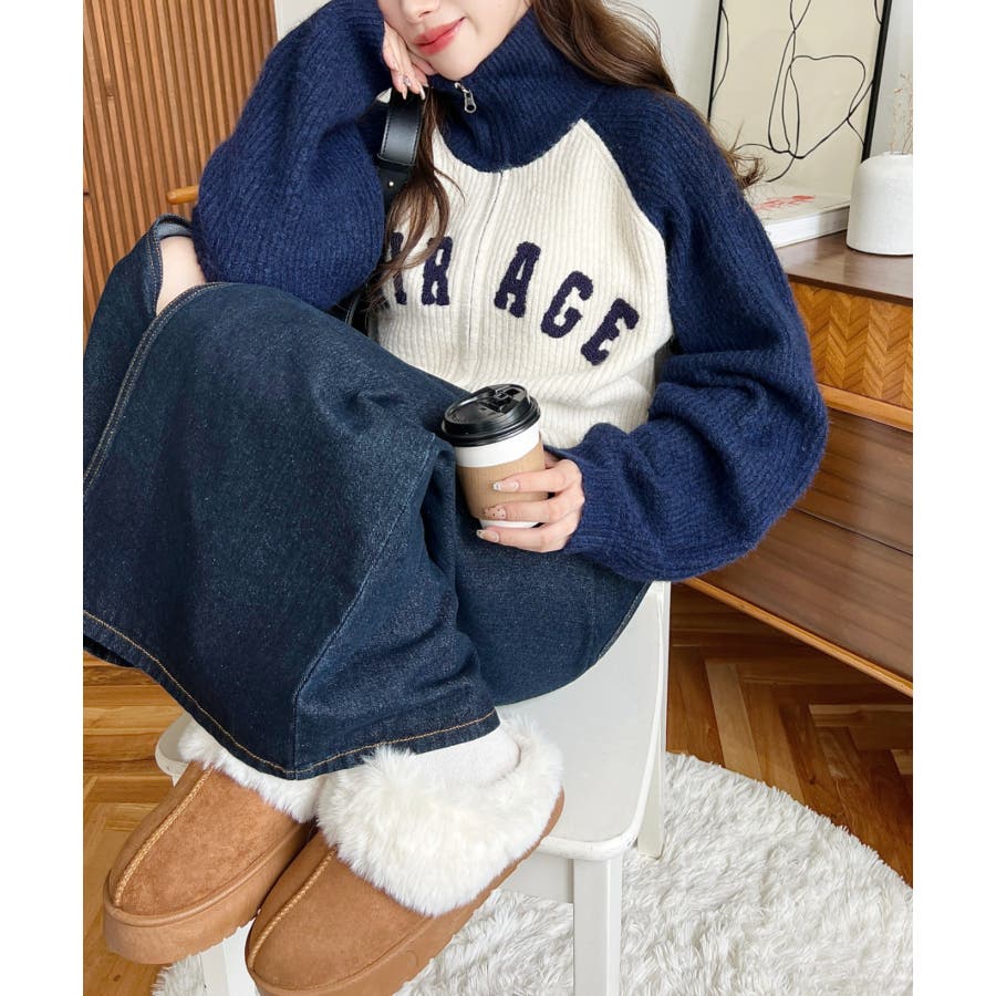 ・目を惹くフェイクムートン×ファーの存在感が、シンプルな秋冬スタイリングのポイントに◎