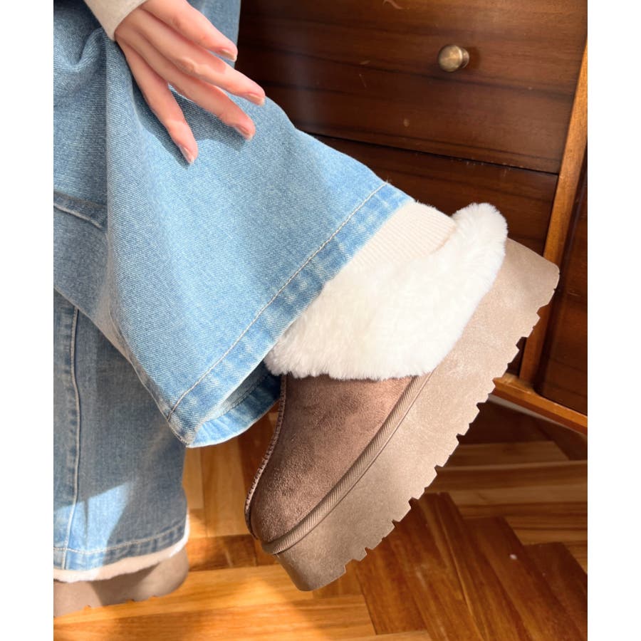 ・バッグレスなスリッポンタイプで手軽な履きやすさ◎内側全体にたっぷり使用したふかふかなファーが足元をしっかり暖めてくれるアイテム。
