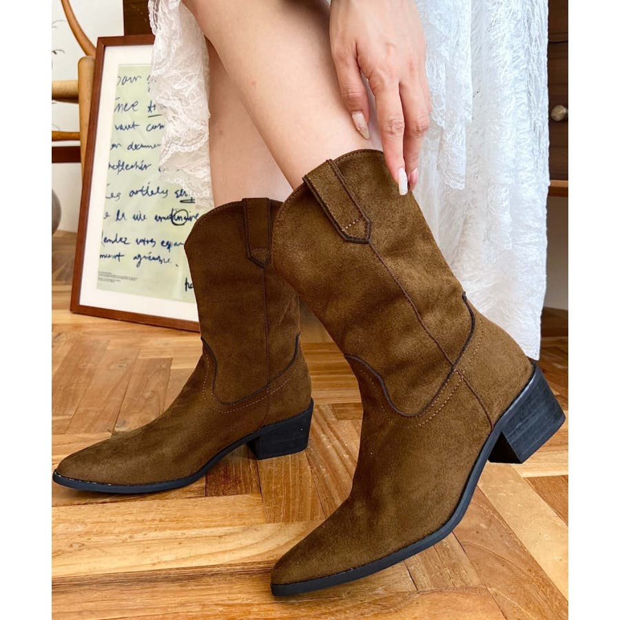 ・ウエスタンブーツならではのステッチワークがアクセントになり、シンプルなコーデにも存在感をプラス。