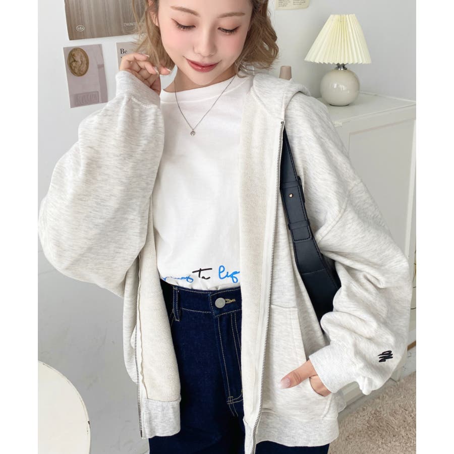 裏毛袖ワンポイントバック刺繍ジップアップパーカーTC