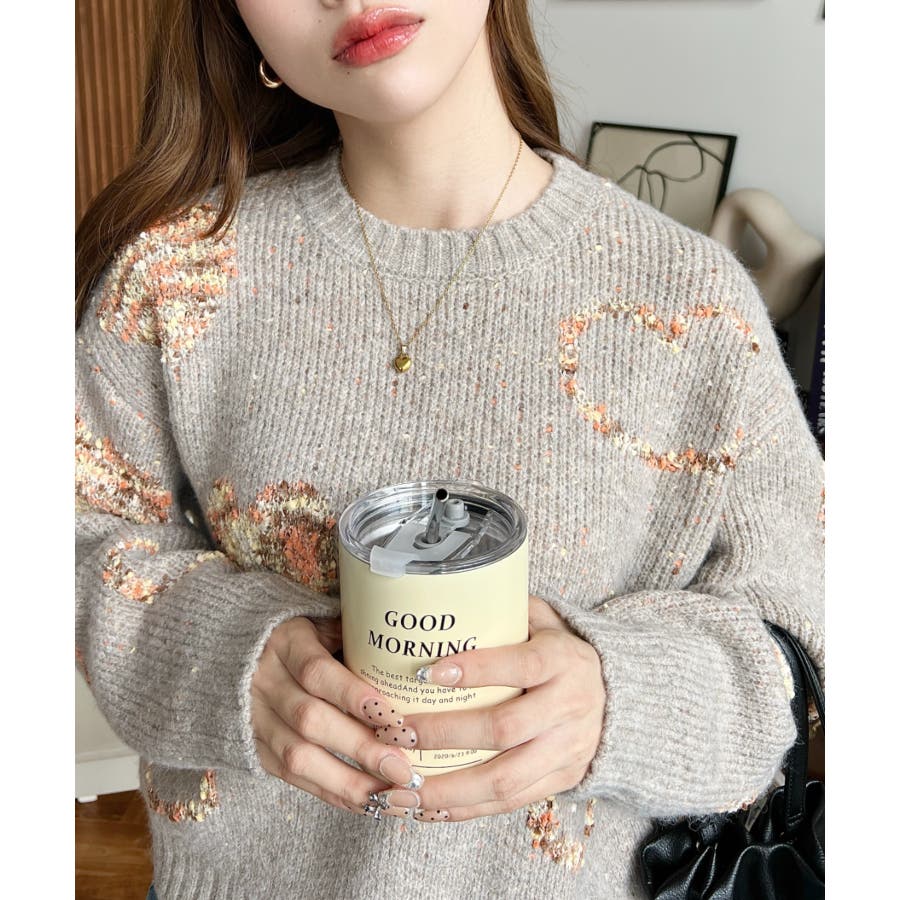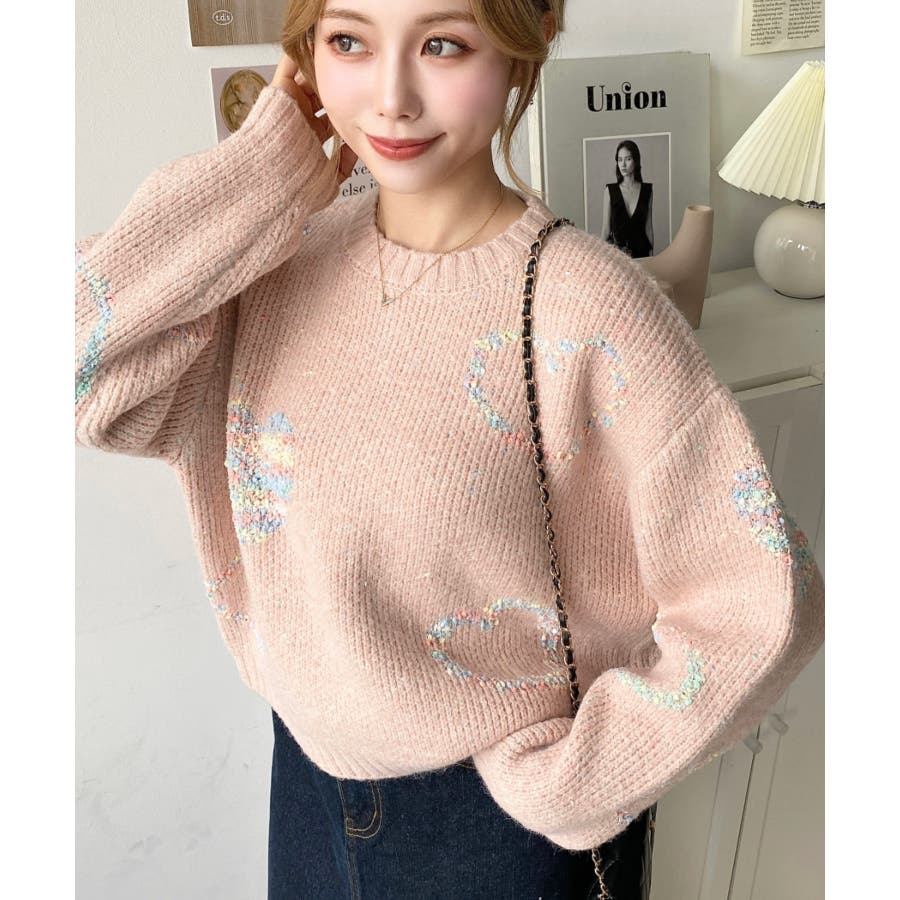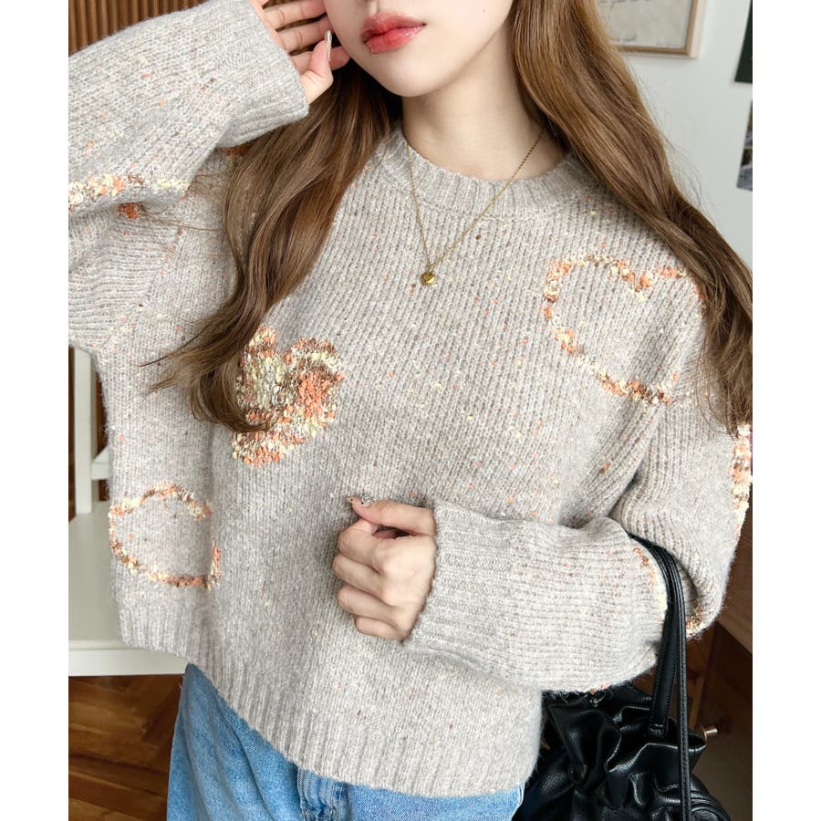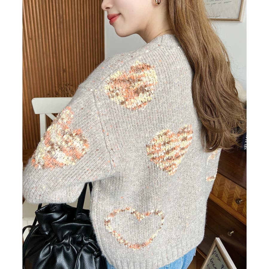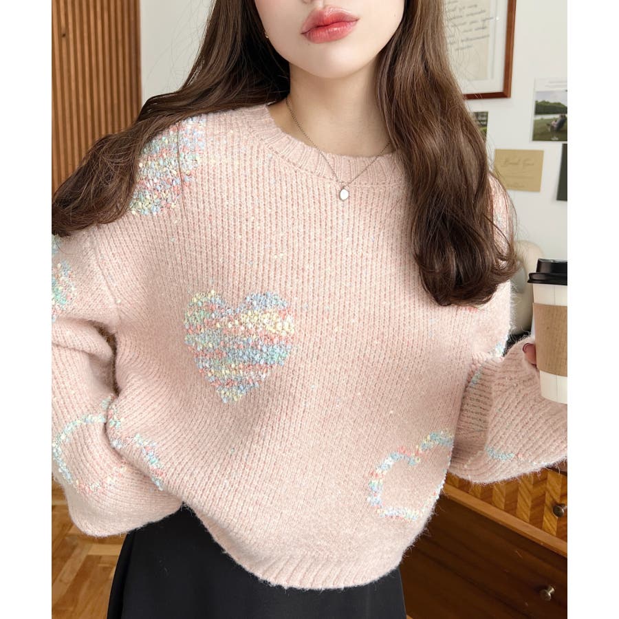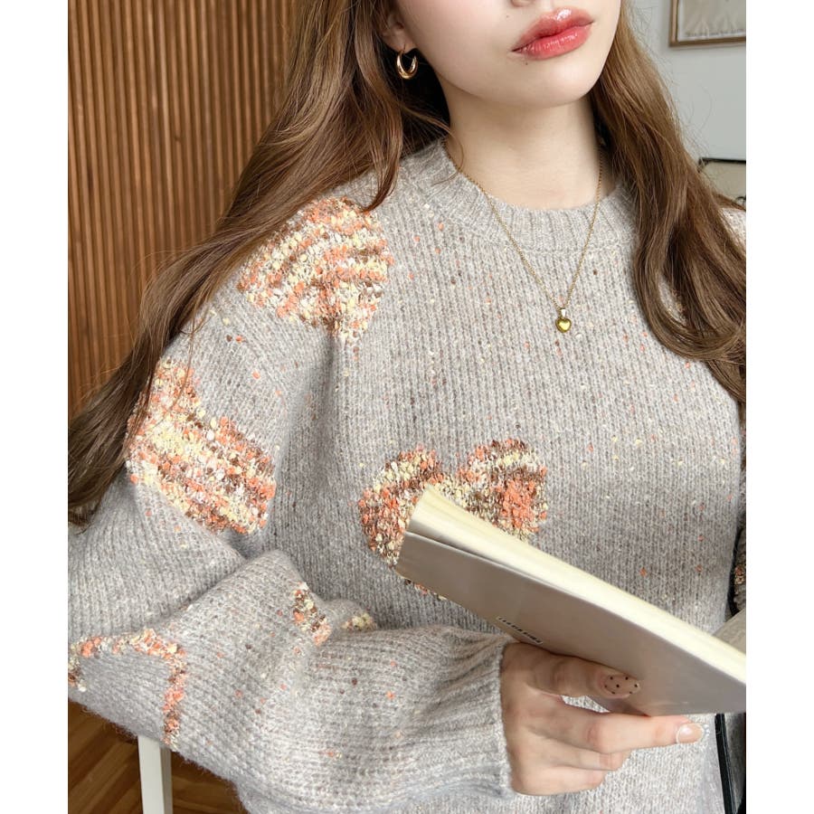 ◆Design・ハートモチーフのデザインとミックス糸がガーリーでカジュアルな印象を演出してくれます◎・裾のワイドリブが統一感をもたせてくれる、細部まで計算されたサイジングで華奢魅せも叶う程よいルーズさに仕上げました。・落ち着いた馴染みの良いカラーだけど、ポップな印象も兼ねた大人可愛いニットです!
