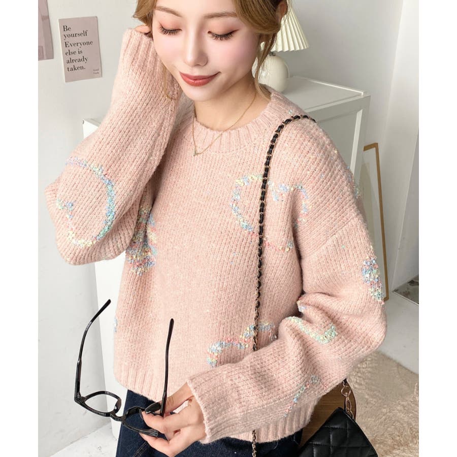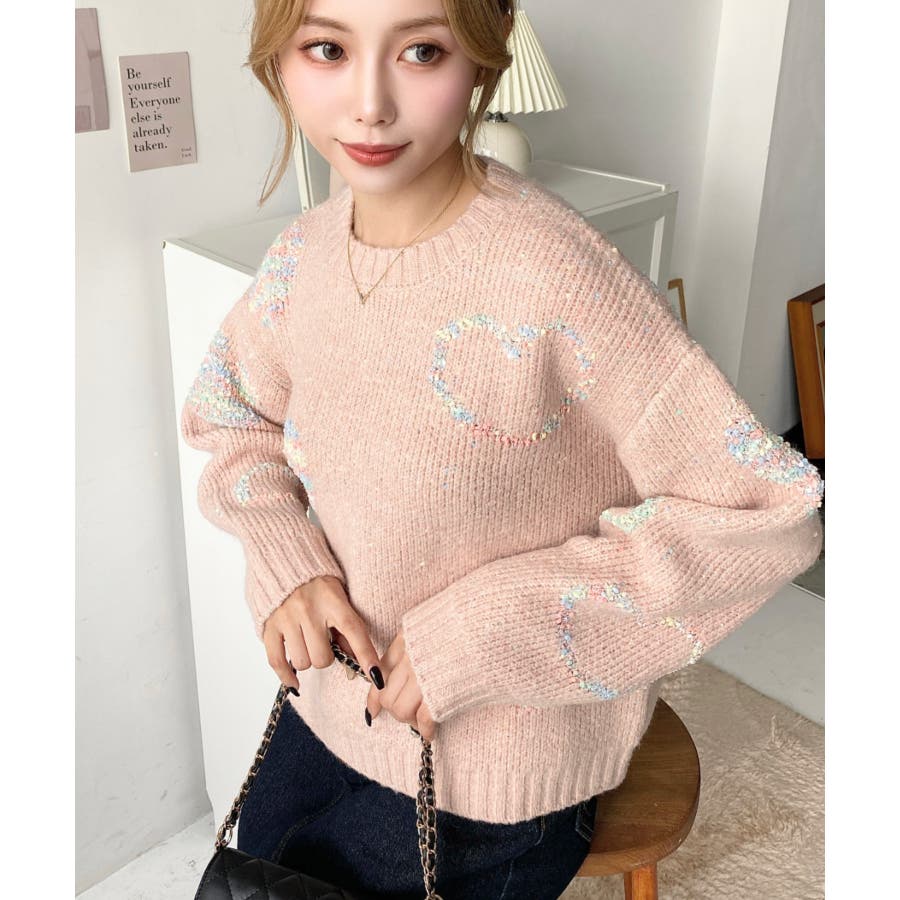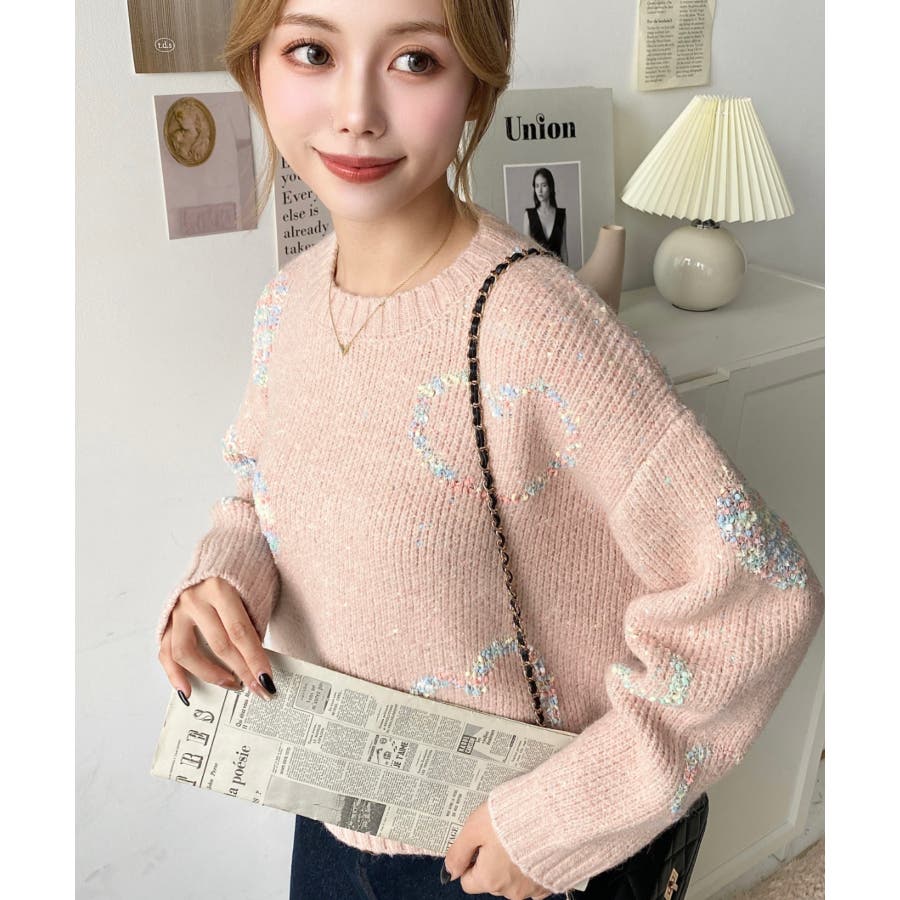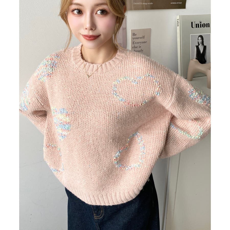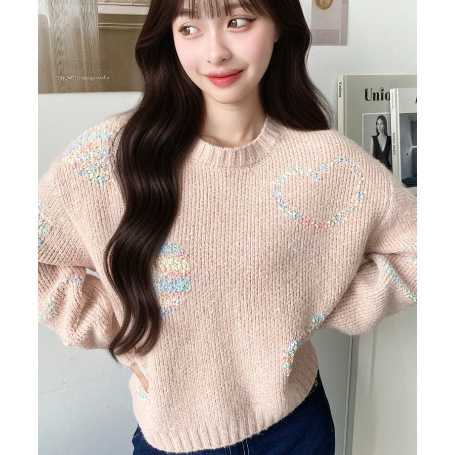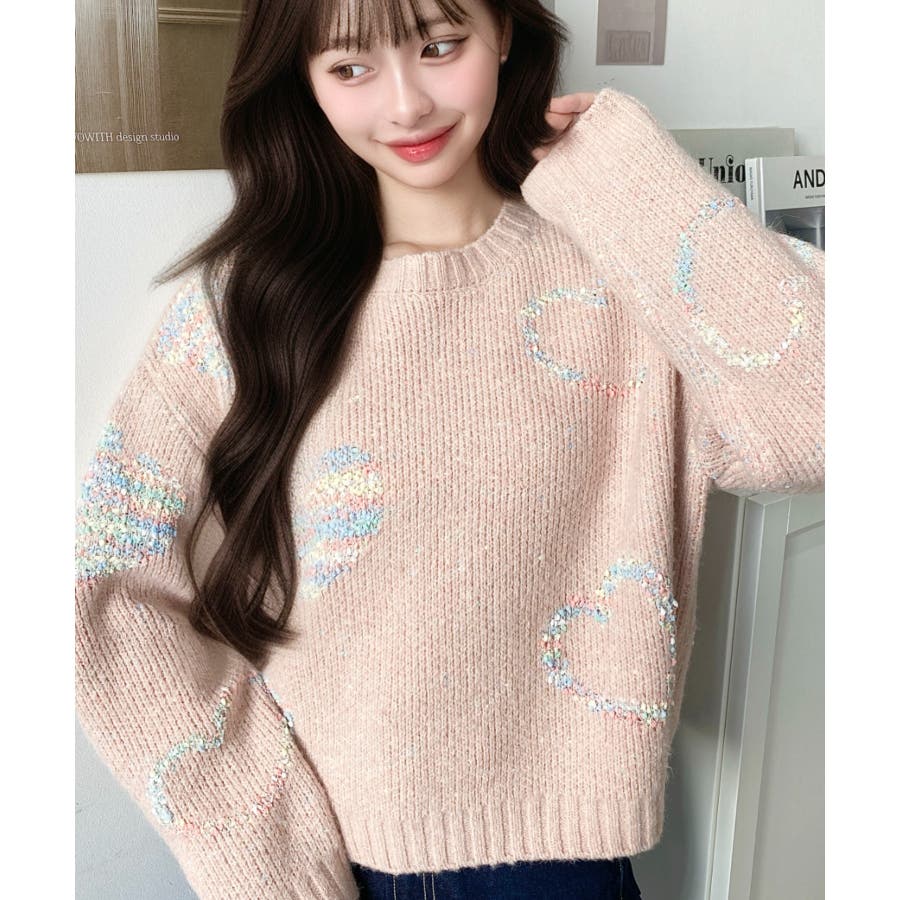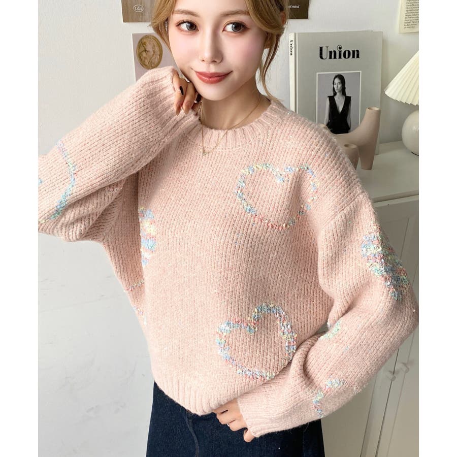 ◆Design・ハートモチーフのデザインとミックス糸がガーリーでカジュアルな印象を演出してくれます◎・裾のワイドリブが統一感をもたせてくれる、細部まで計算されたサイジングで華奢魅せも叶う程よいルーズさに仕上げました。・落ち着いた馴染みの良いカラーだけど、ポップな印象も兼ねた大人可愛いニットです!