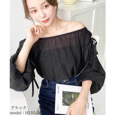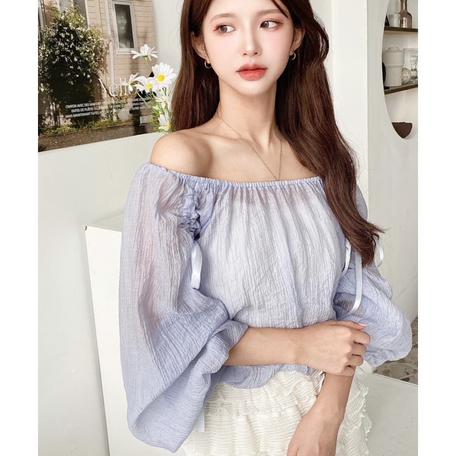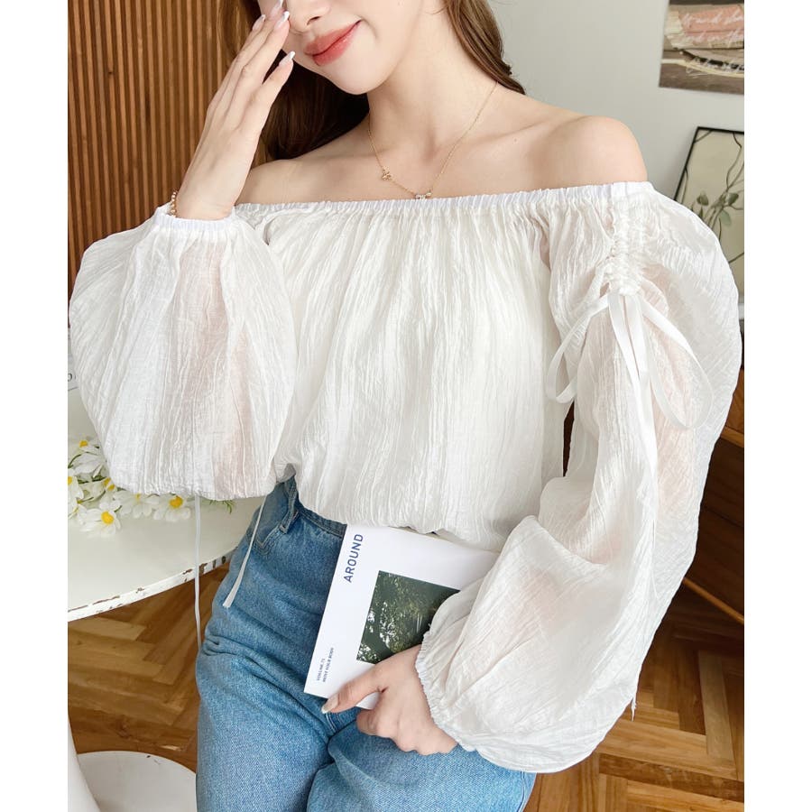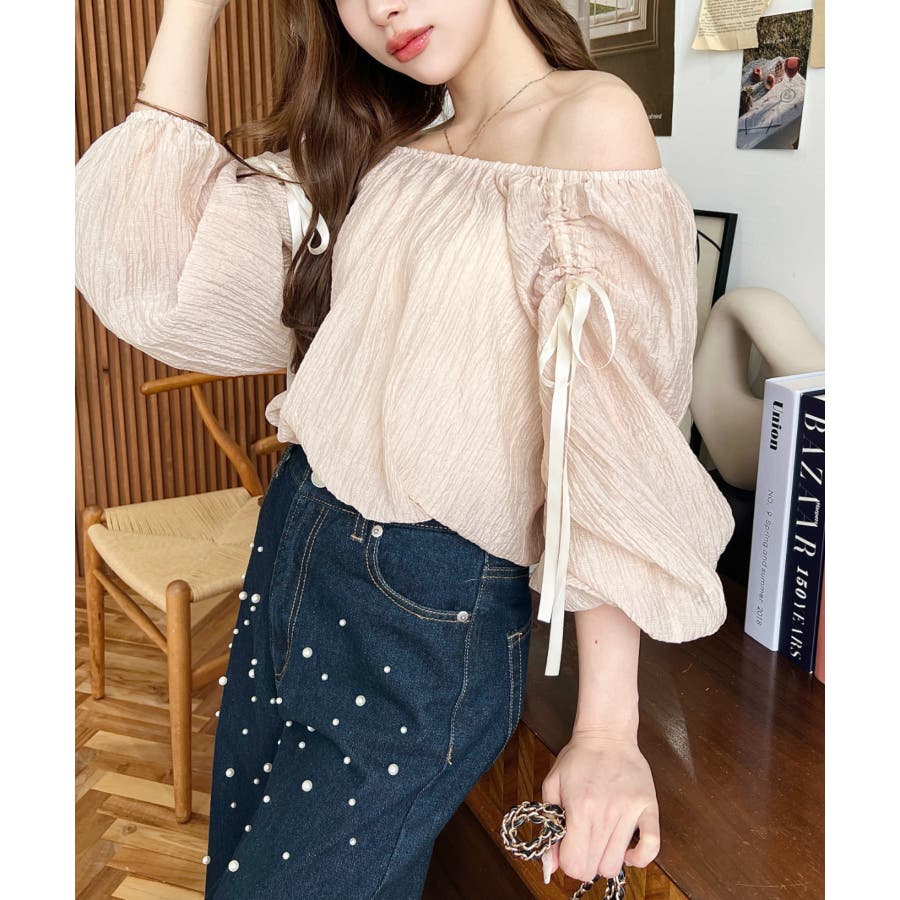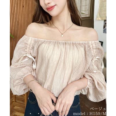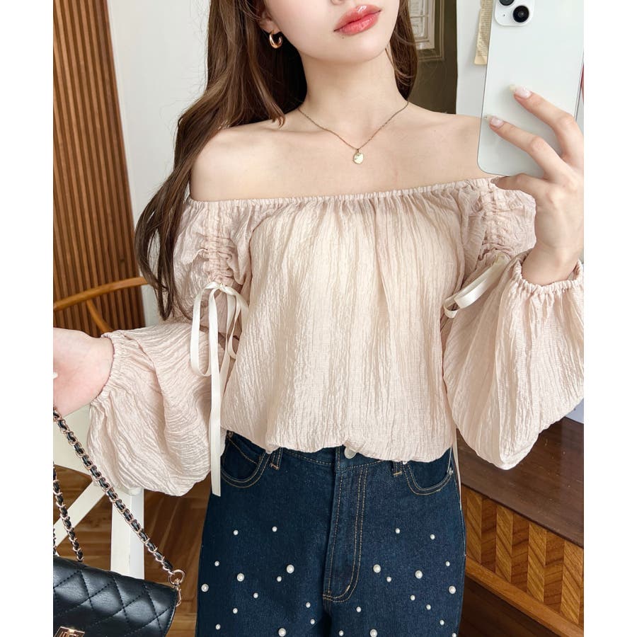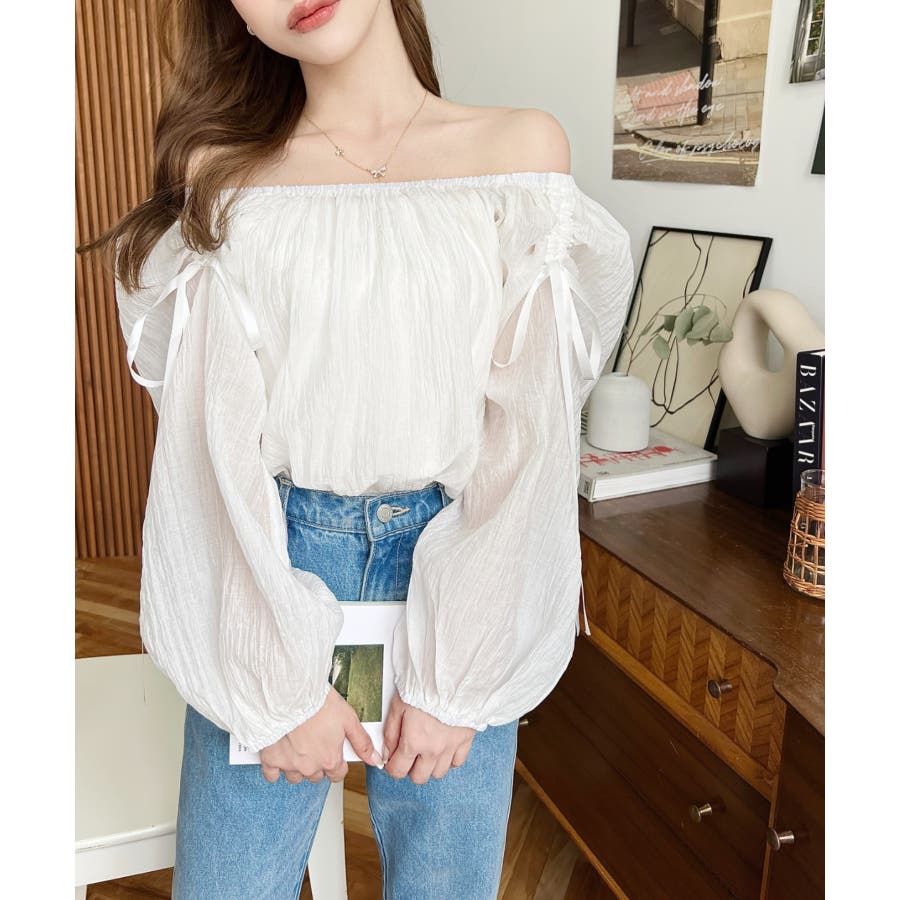 ショルダーシャーリングリボンオフショルブラウス