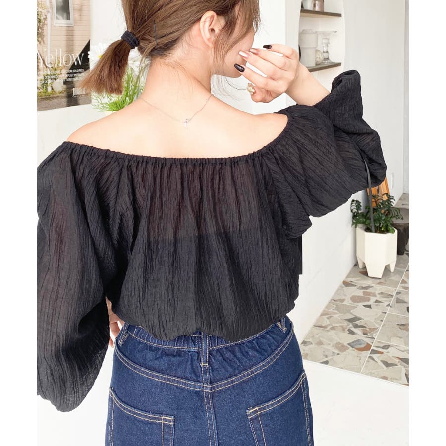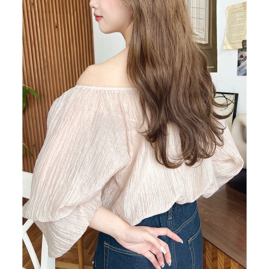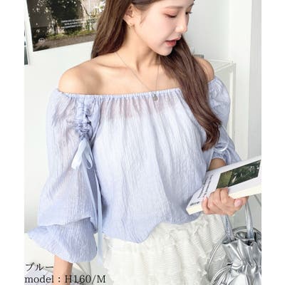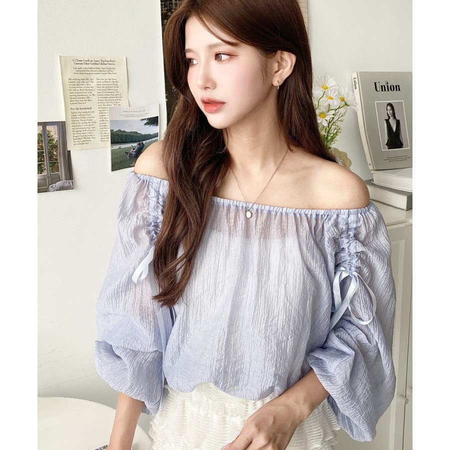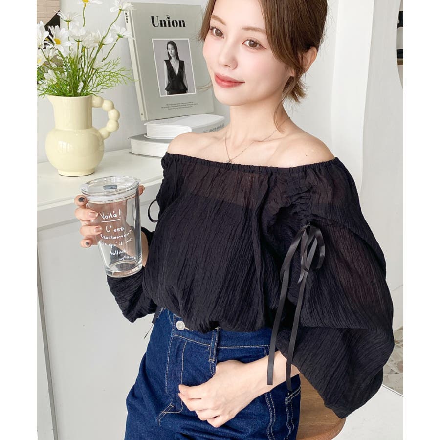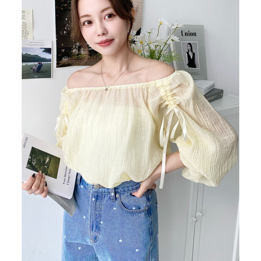 ショルダーシャーリングリボンオフショルブラウス