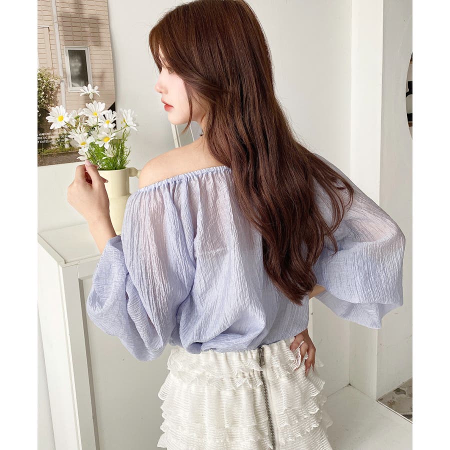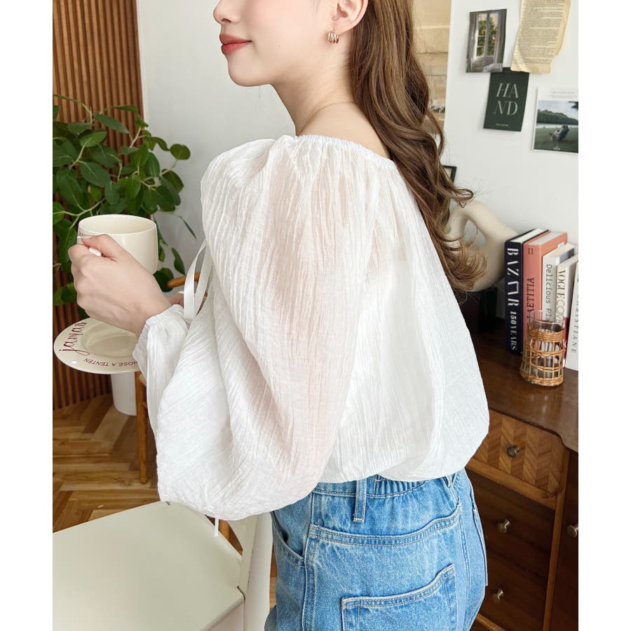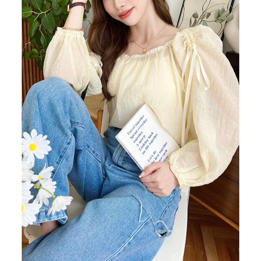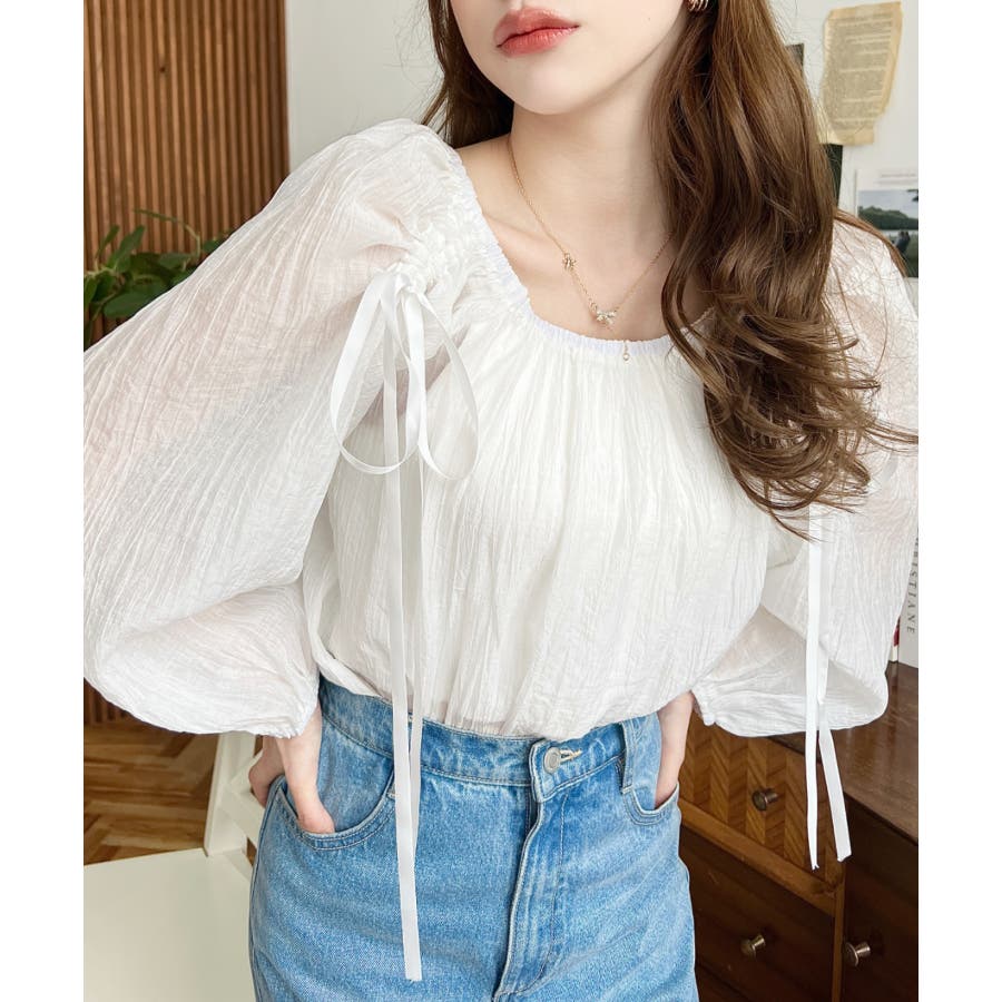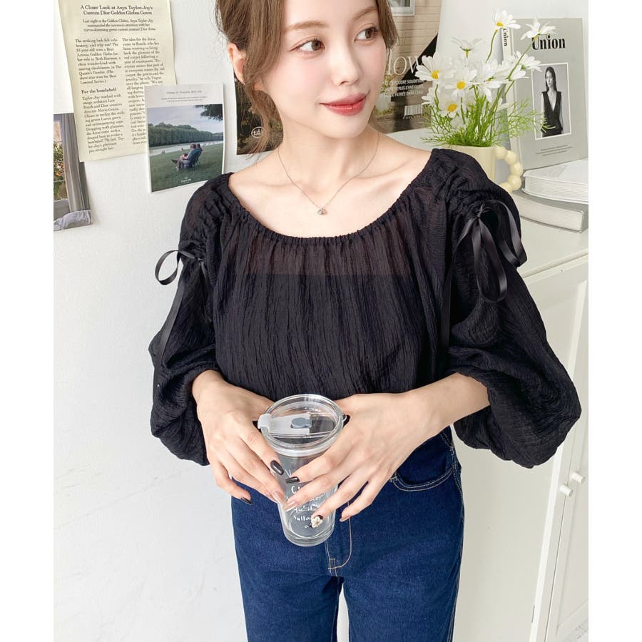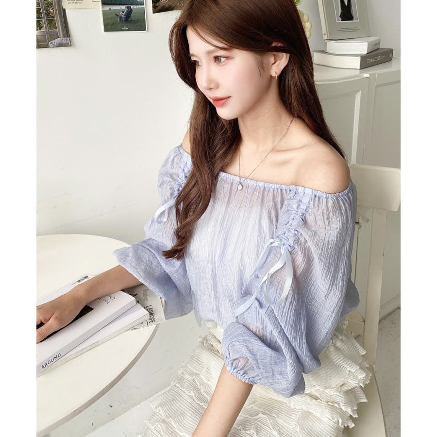 シャツ ブラウス リボン シャーリング オフショル 袖 スリーブ シースルー 透け感 着回し レディース レディースファッション トップス 大人カジュアル プチプラ 定番 春 夏 ls0080
