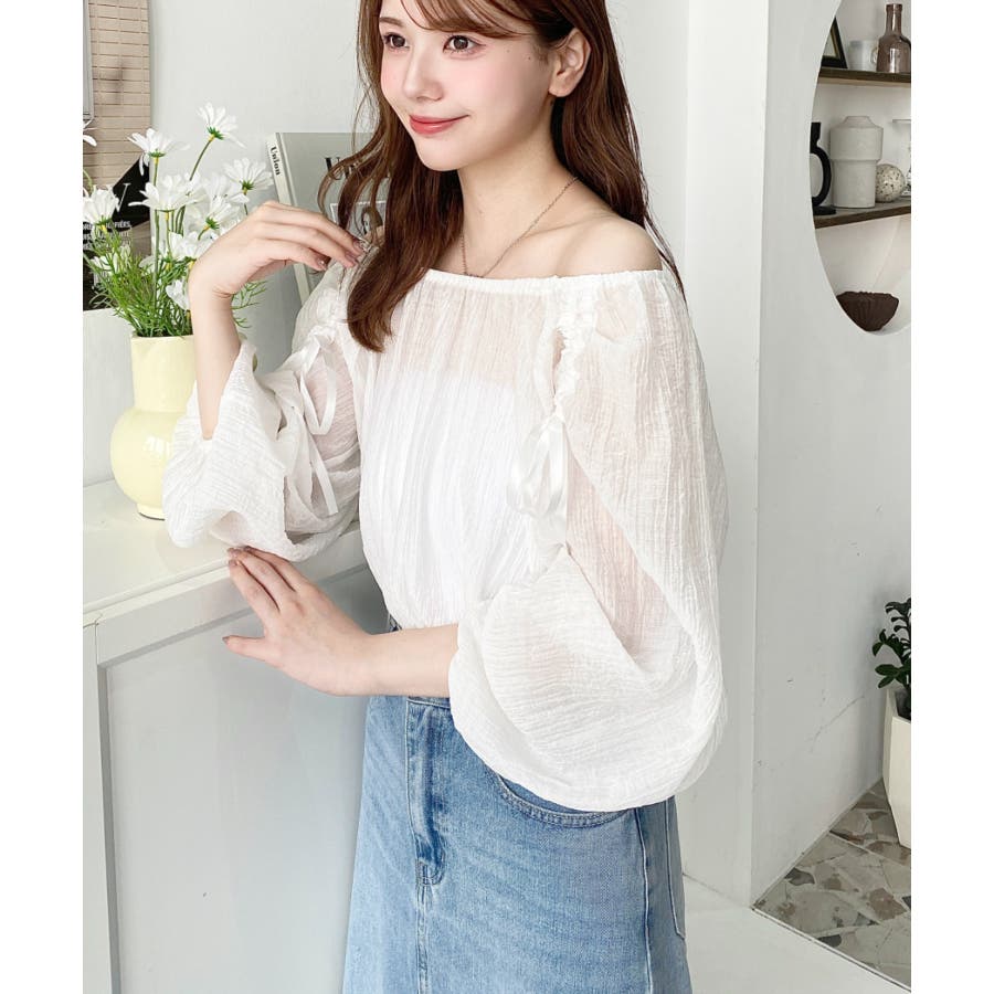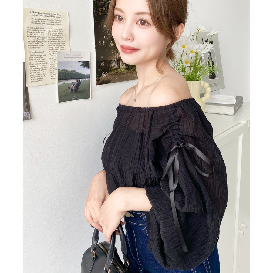 ・トレンドのリボンデザインを取り込んだオフショルブラウス。