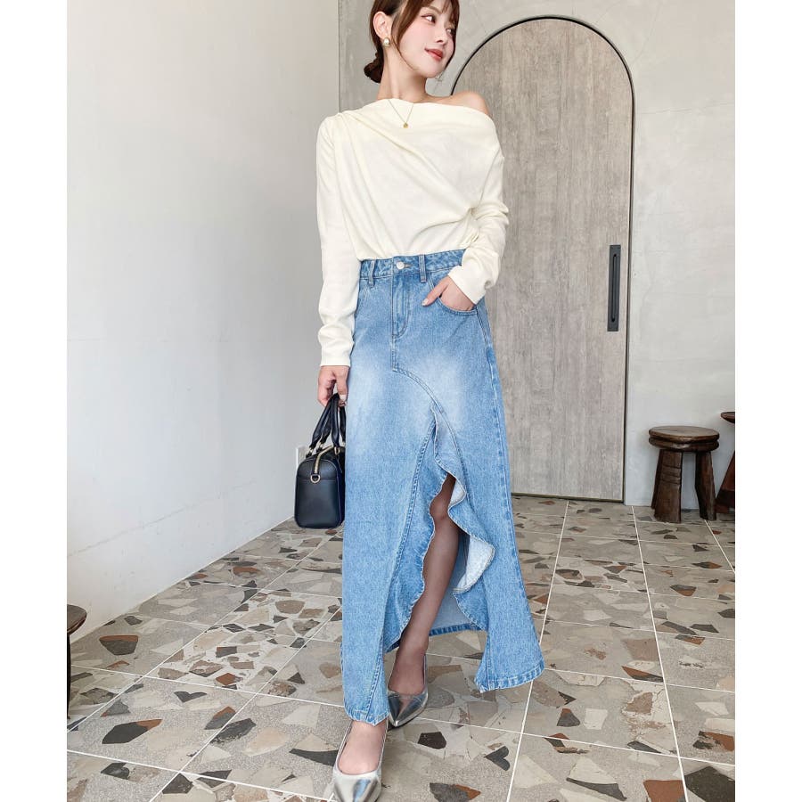 デニム素材だからカジュアルだけど、フリル&アシメデザインで大人フェミニンな雰囲気もありお気に入りです◎