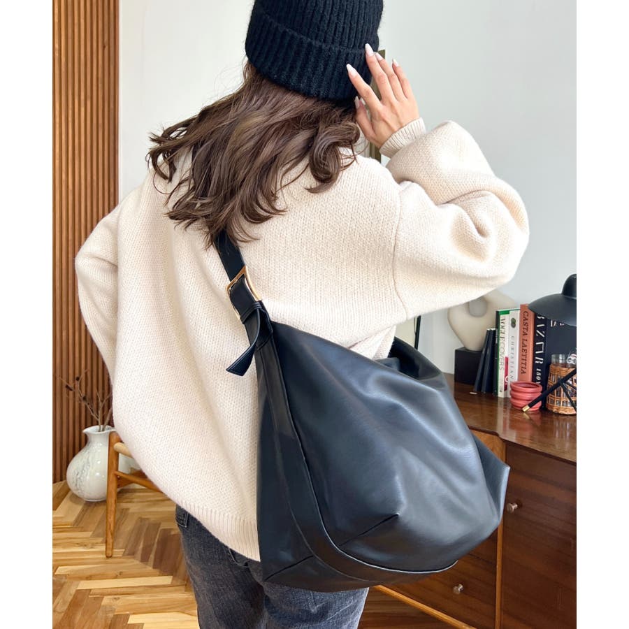 ・太めのベルトとゴールドのバックルがコーデにこなれ感をプラスしてくれる、スタイリッシュなフォルムのショルダーバッグ。