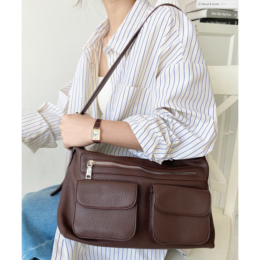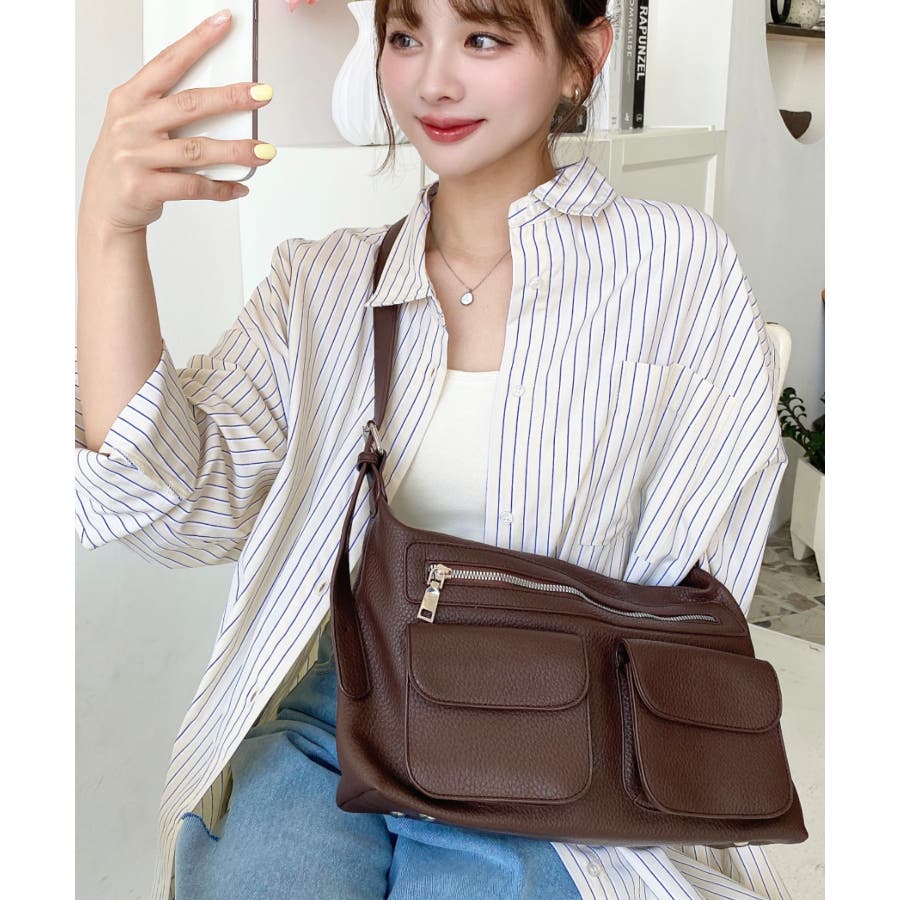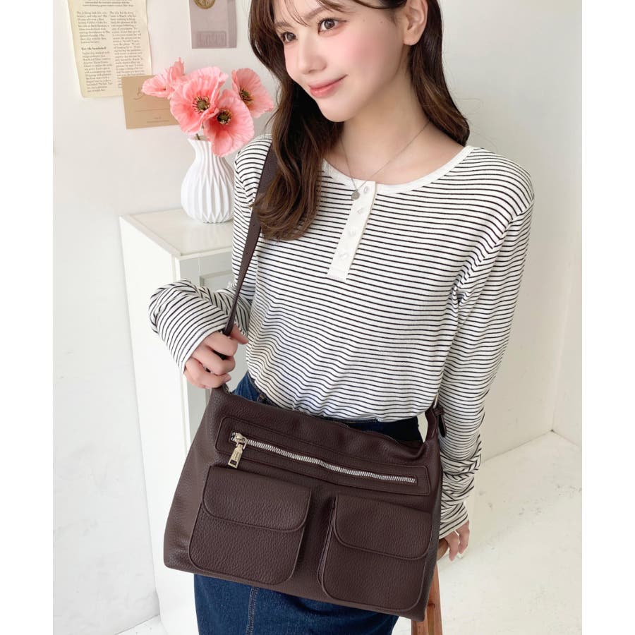 【フロントポケットが今っぽい◎使いやすさとトレンドライクを両立したダブルフラップポケットバッグ】