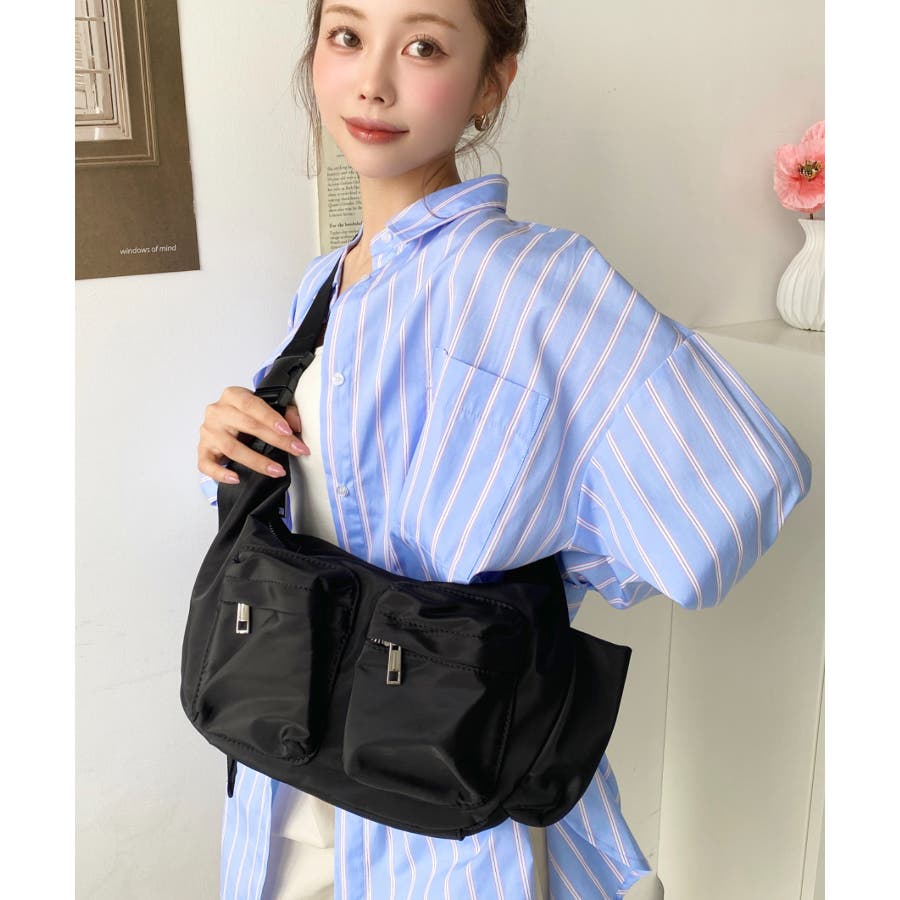 ・フロントの立体Wポケットがカジュアル&小物の収納に便利な優秀ナイロンバッグ。