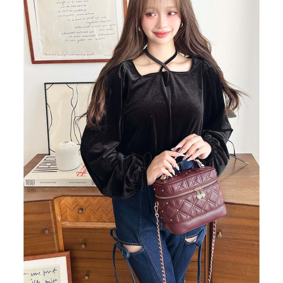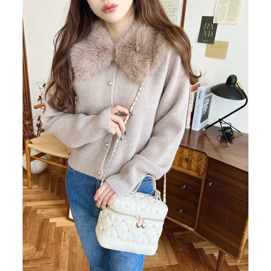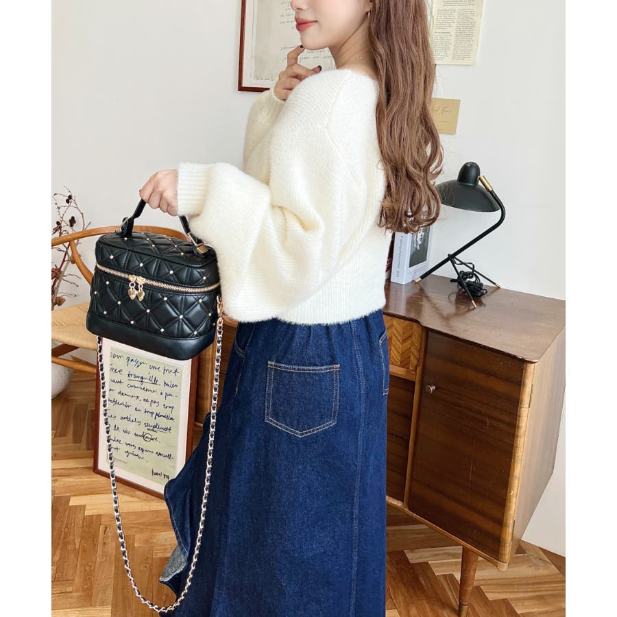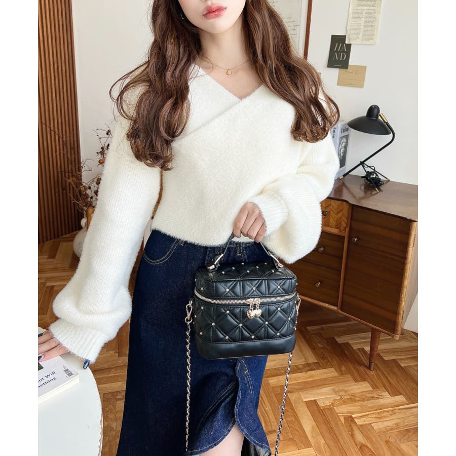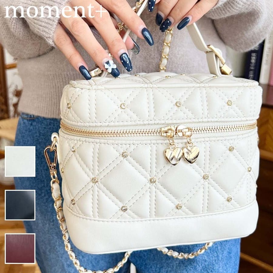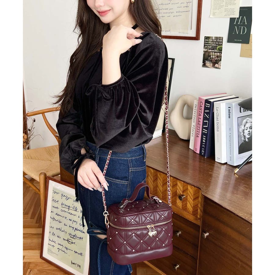 ハートチャームビジューキルティングバニティバッグ