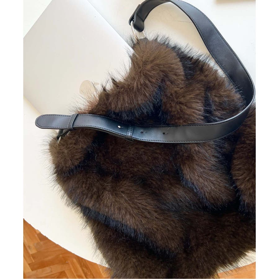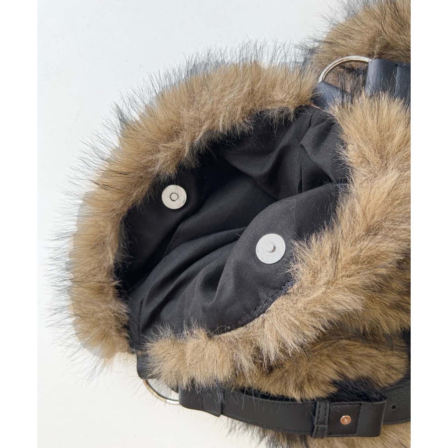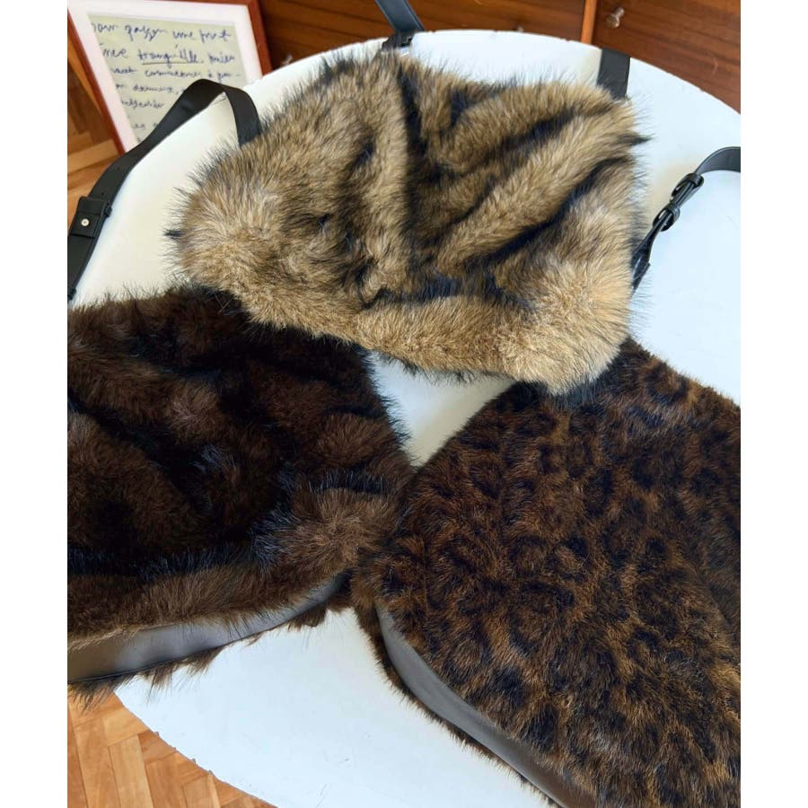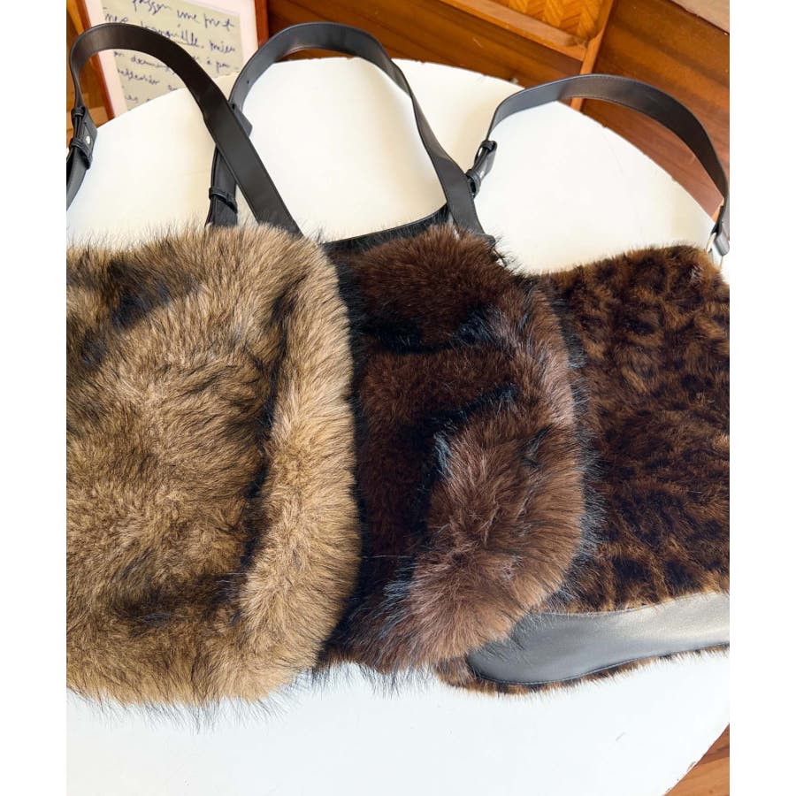 【存在感抜群! ベルトショルダーアニマルフェイクファーバッグ】