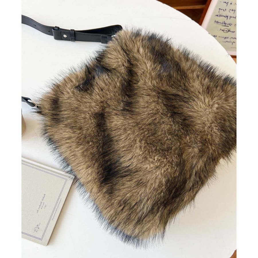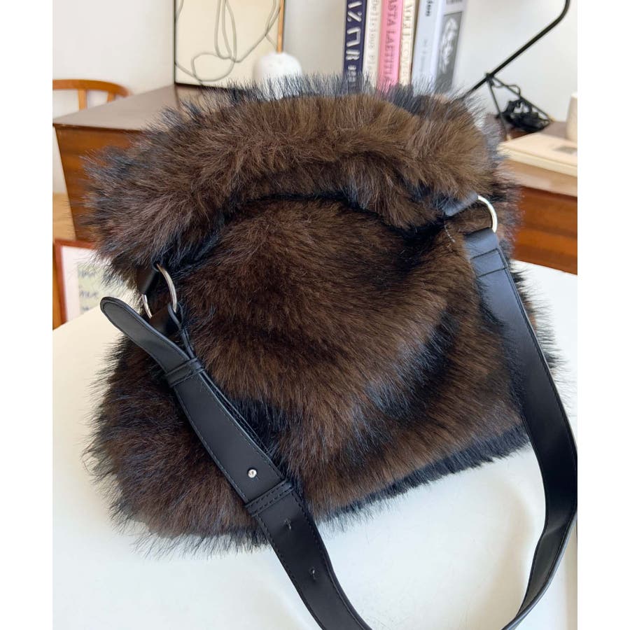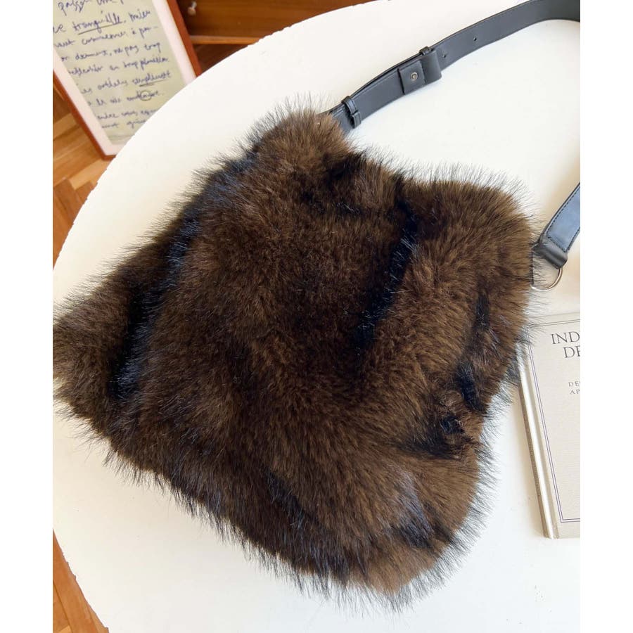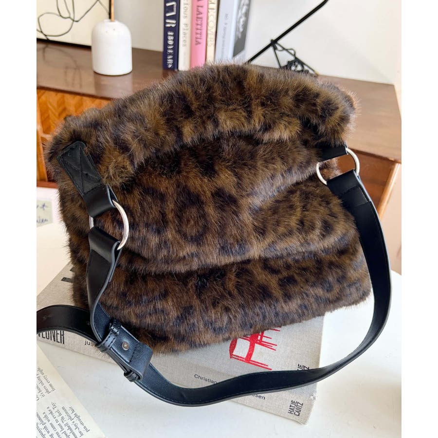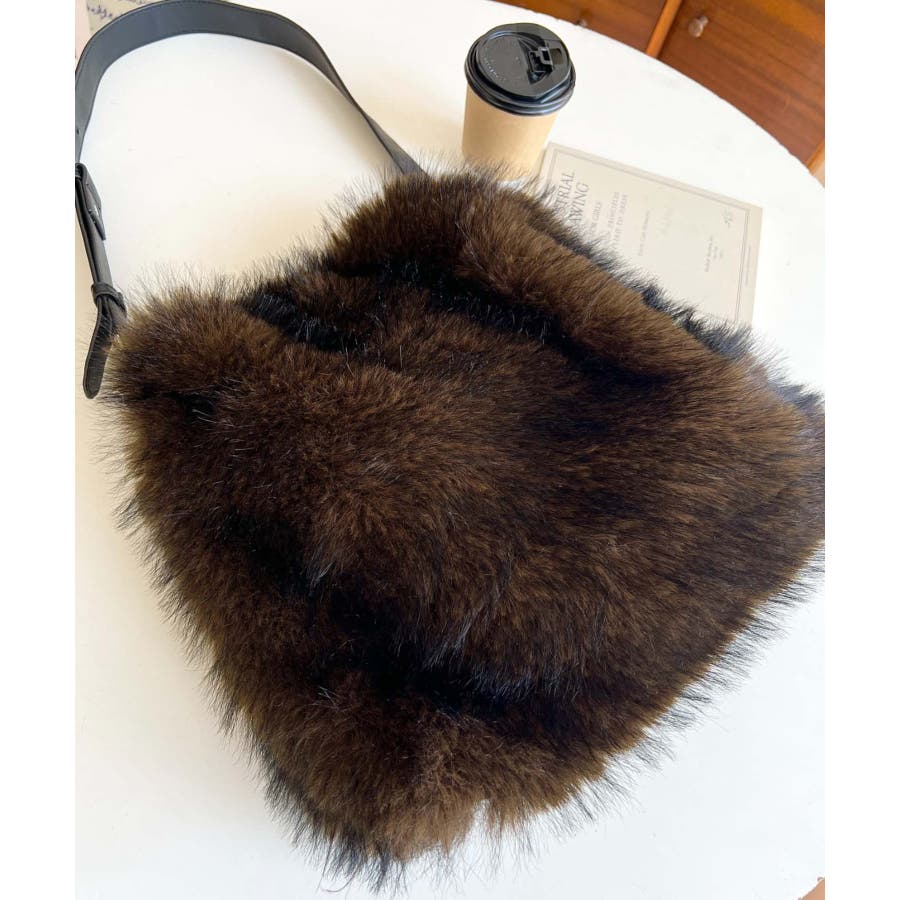 【存在感抜群! ベルトショルダーアニマルフェイクファーバッグ】