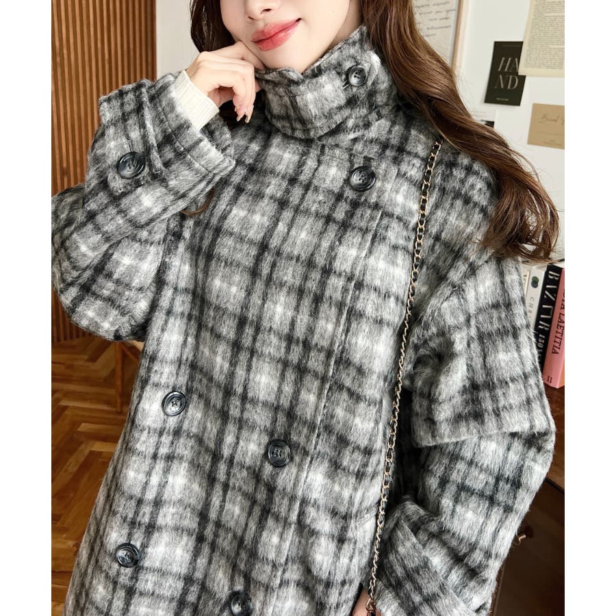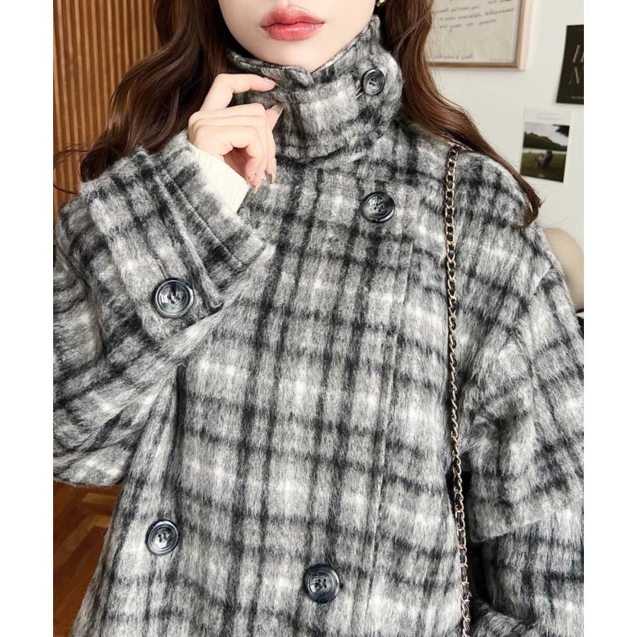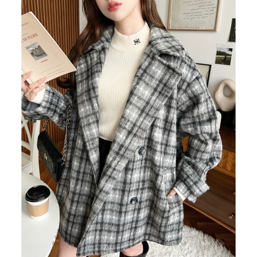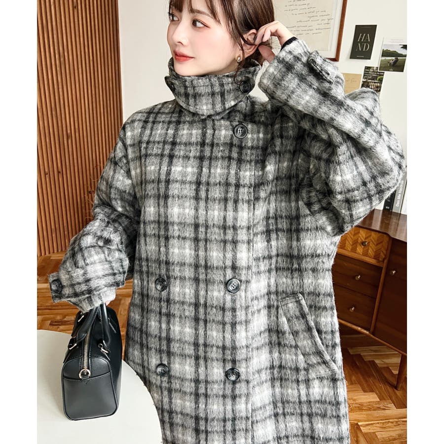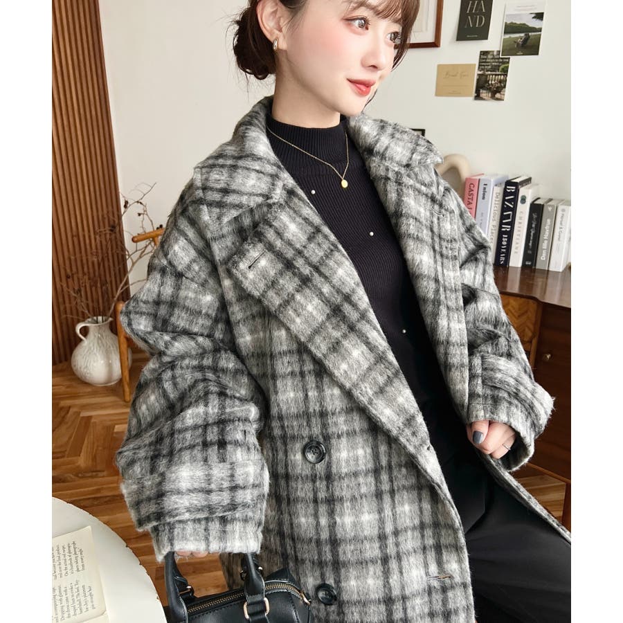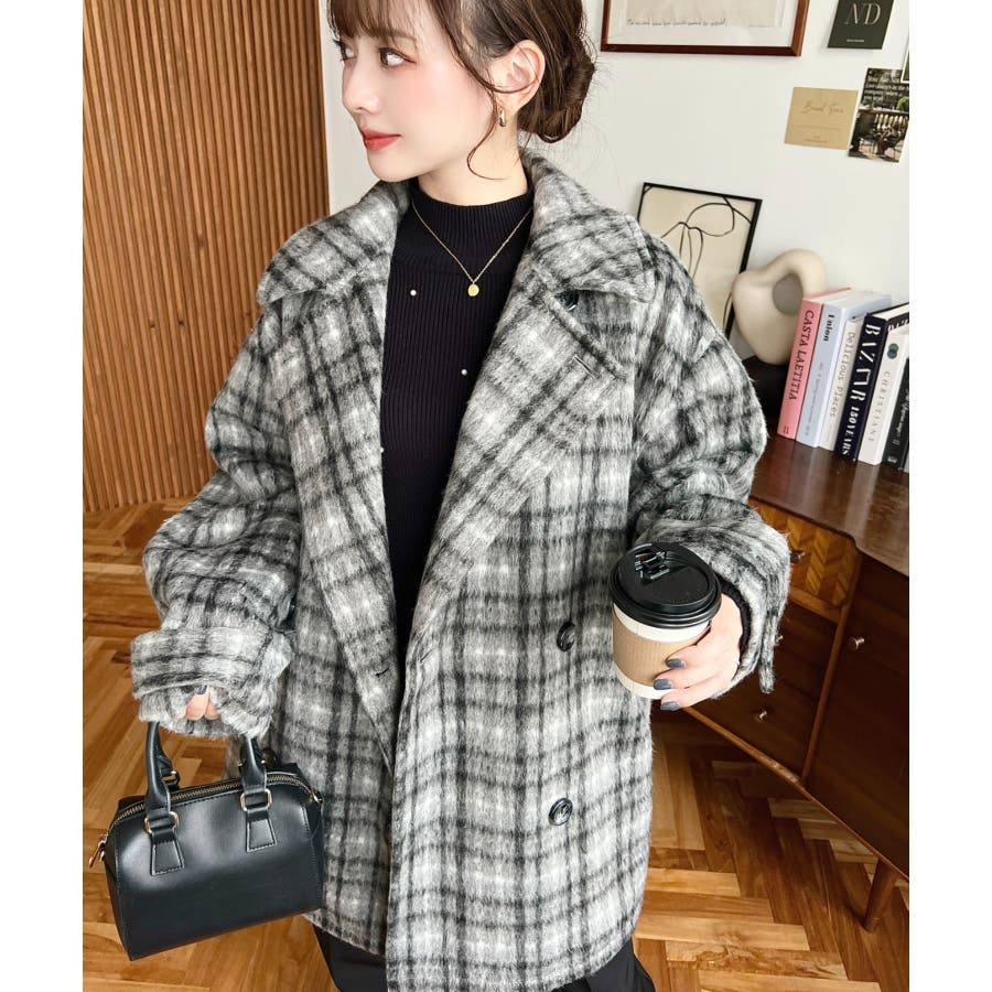 ・シャギーチェック柄&ニットメルトン無地の、2パターンの生地感から選べるPコート!