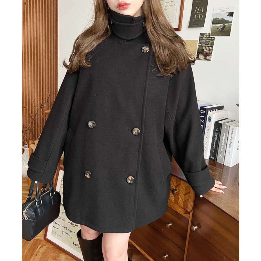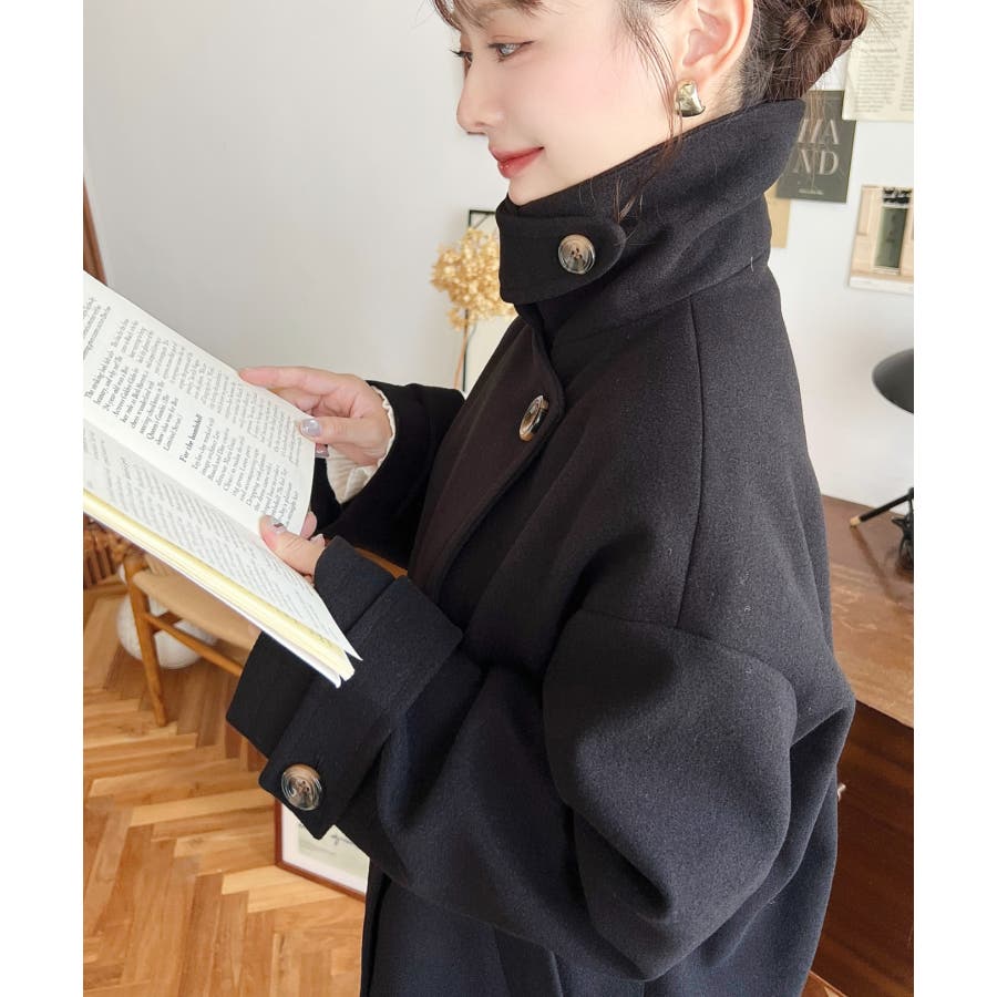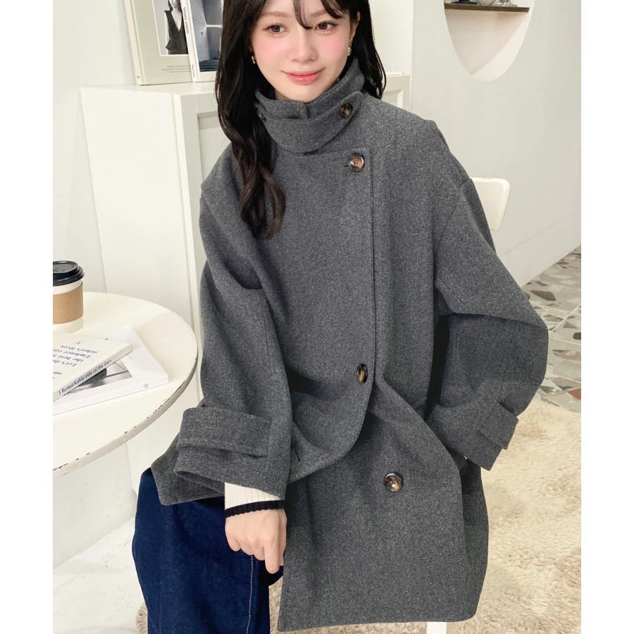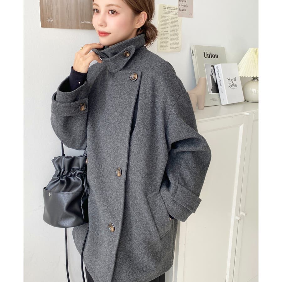 ・ルーズなシルエットはコーデの幅を広げてくれます◎ボタン付きなのでスタンドカラーにも。
