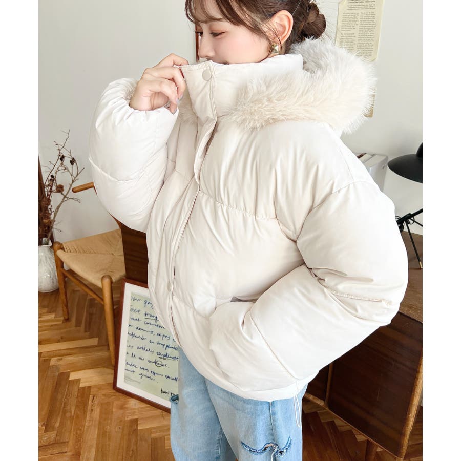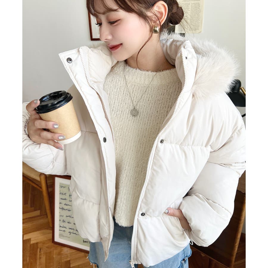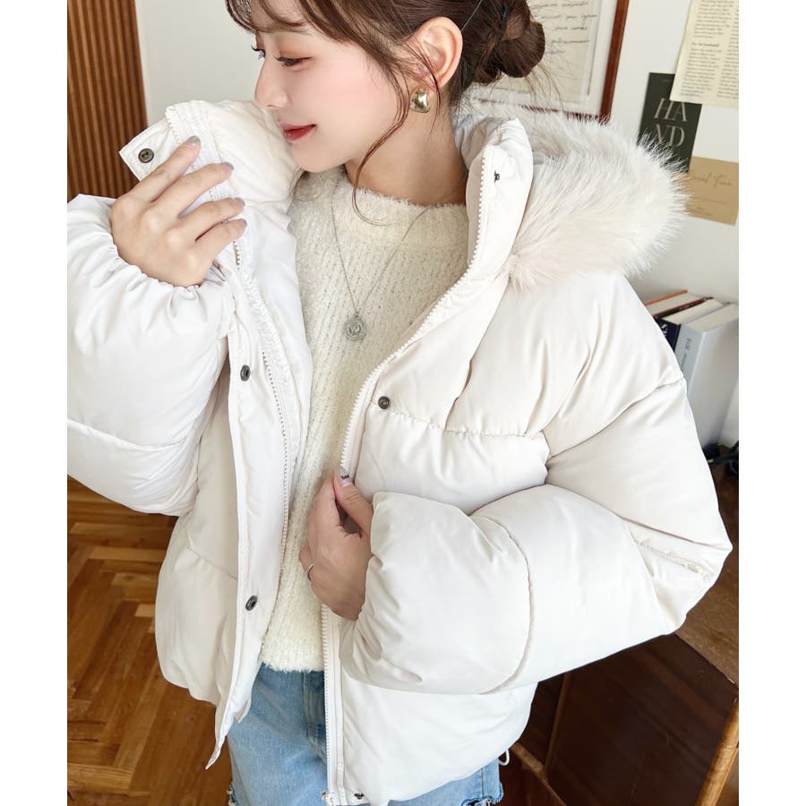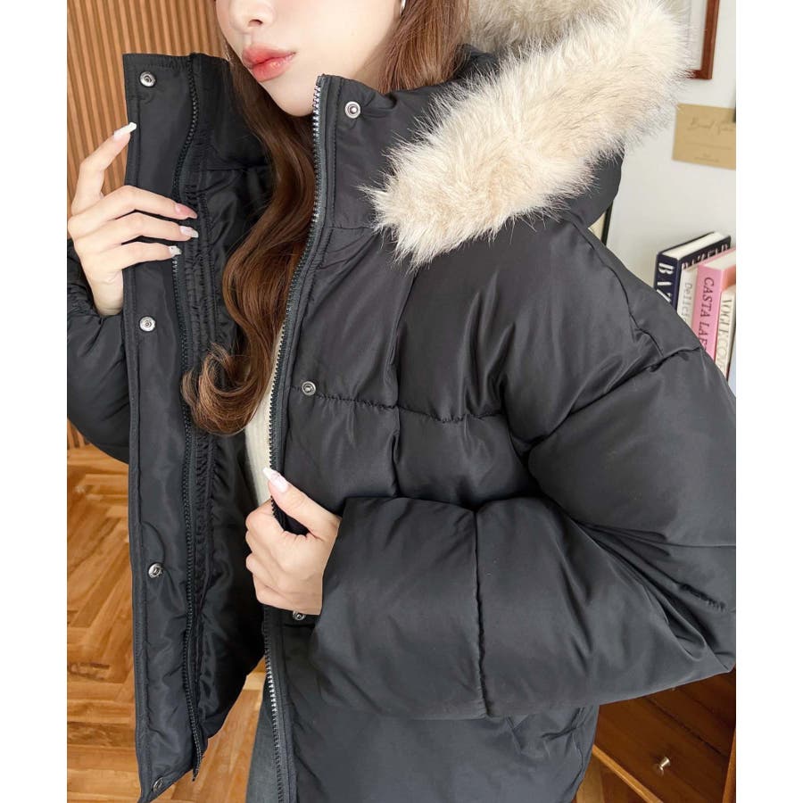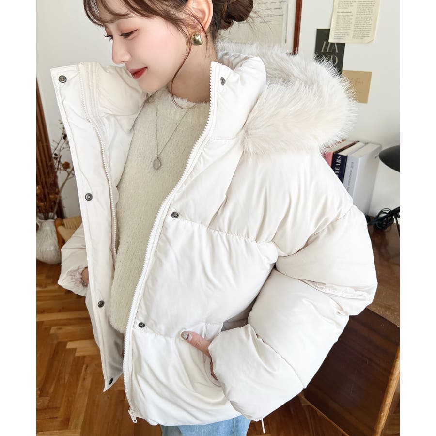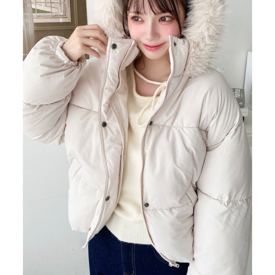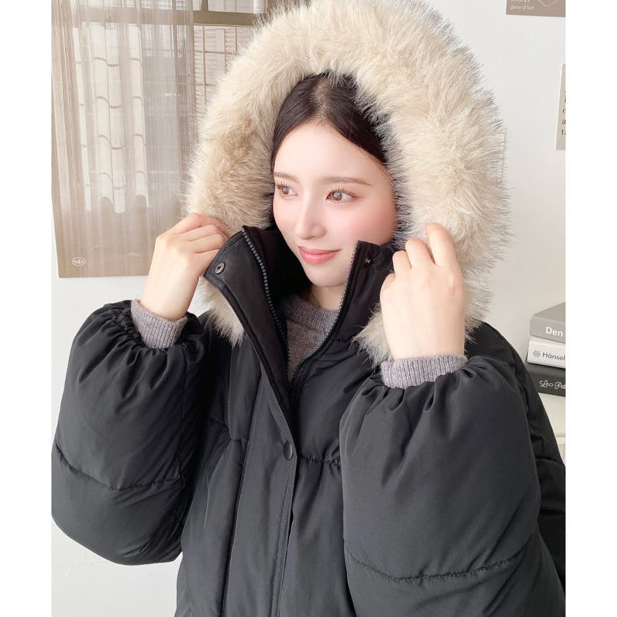 ・スカート合わせでフェミニンなスタイルにも対応。・フードのファーがアクセントになり、シンプルなコーディネートもぐっと華やかに。
