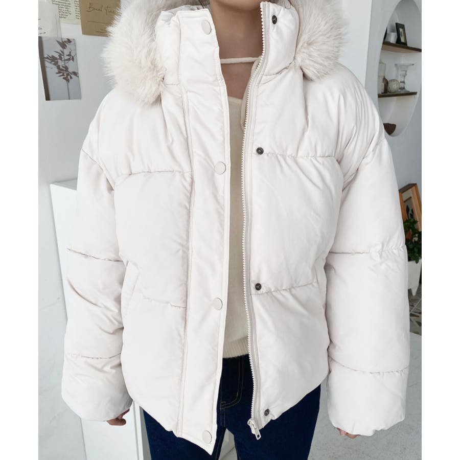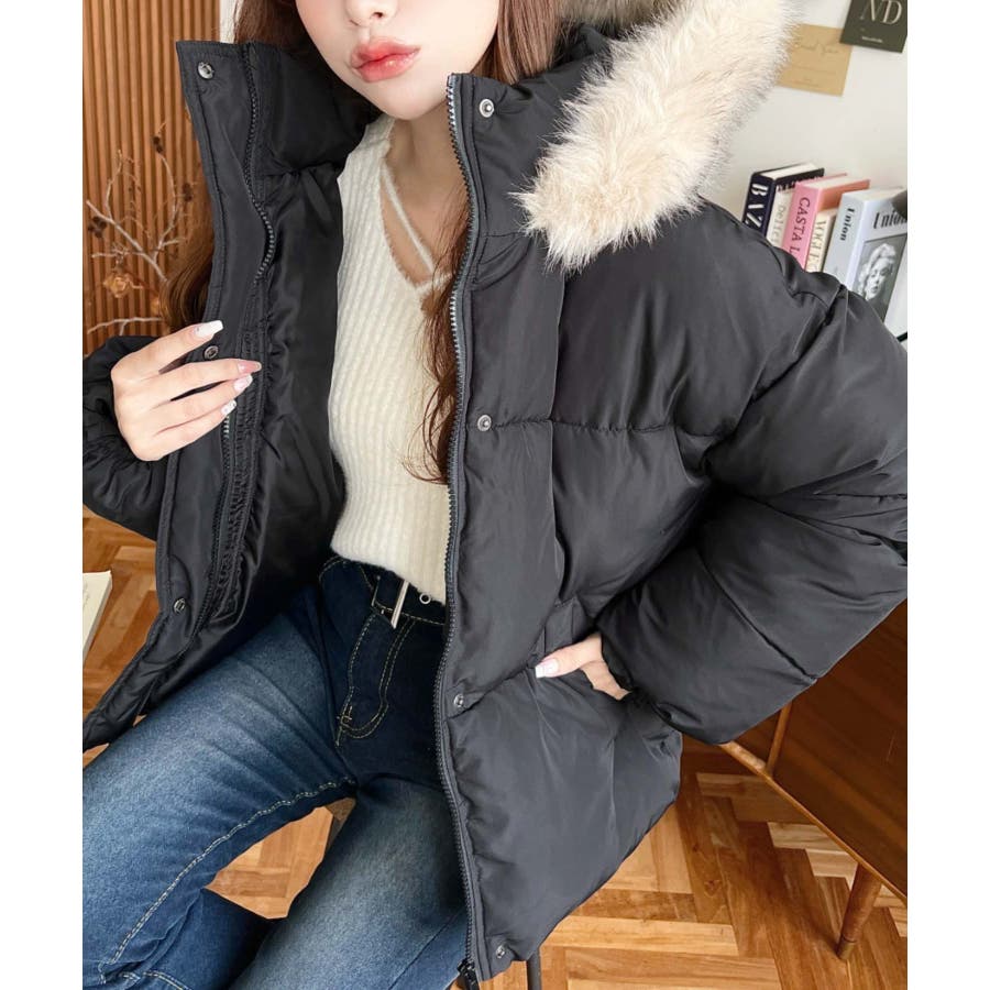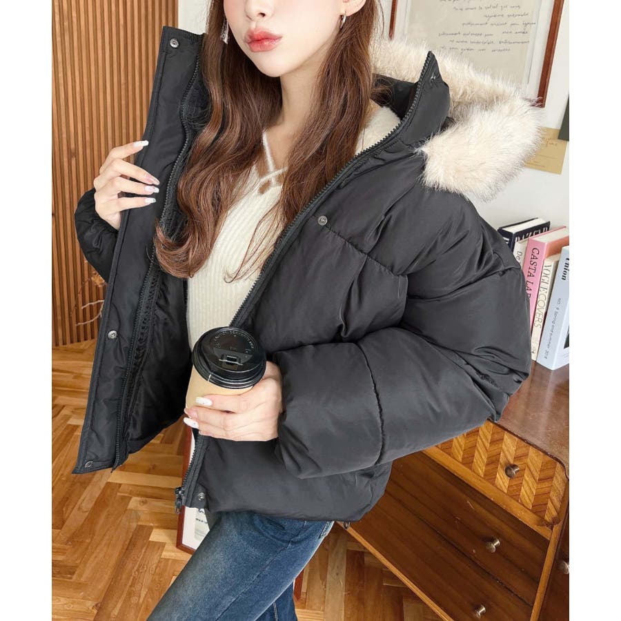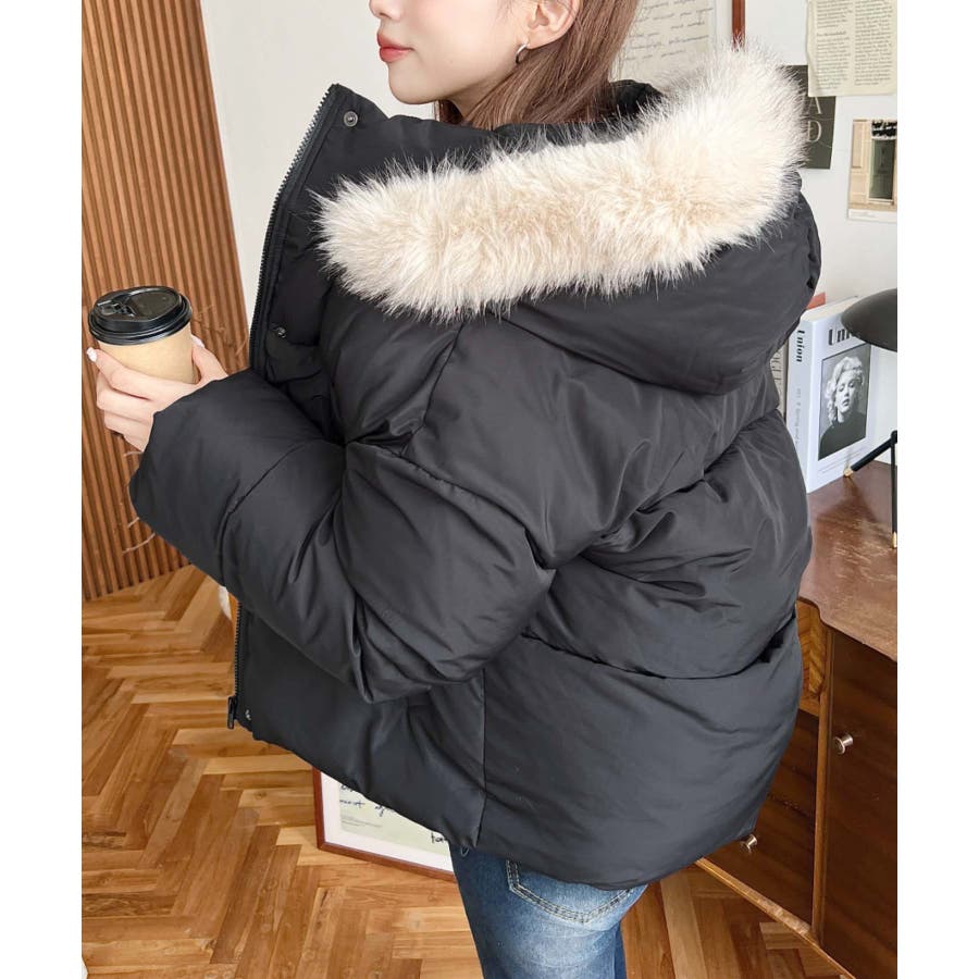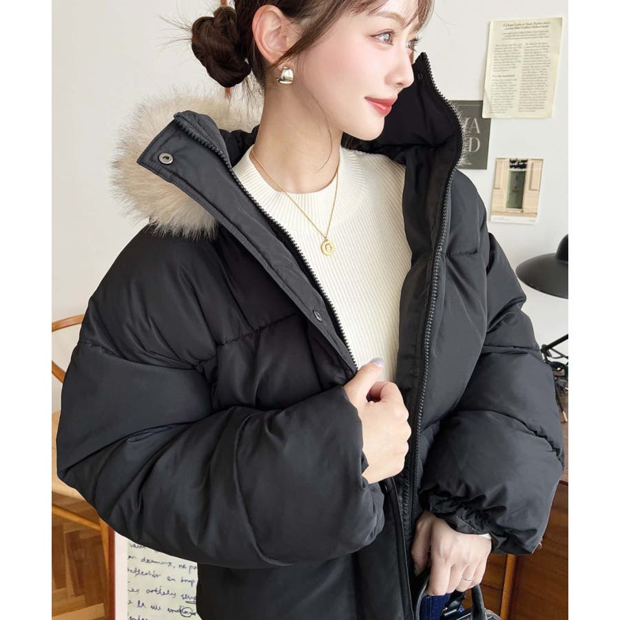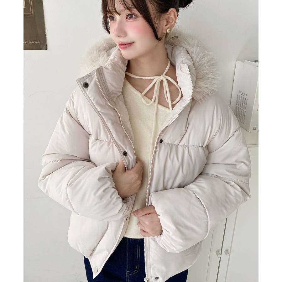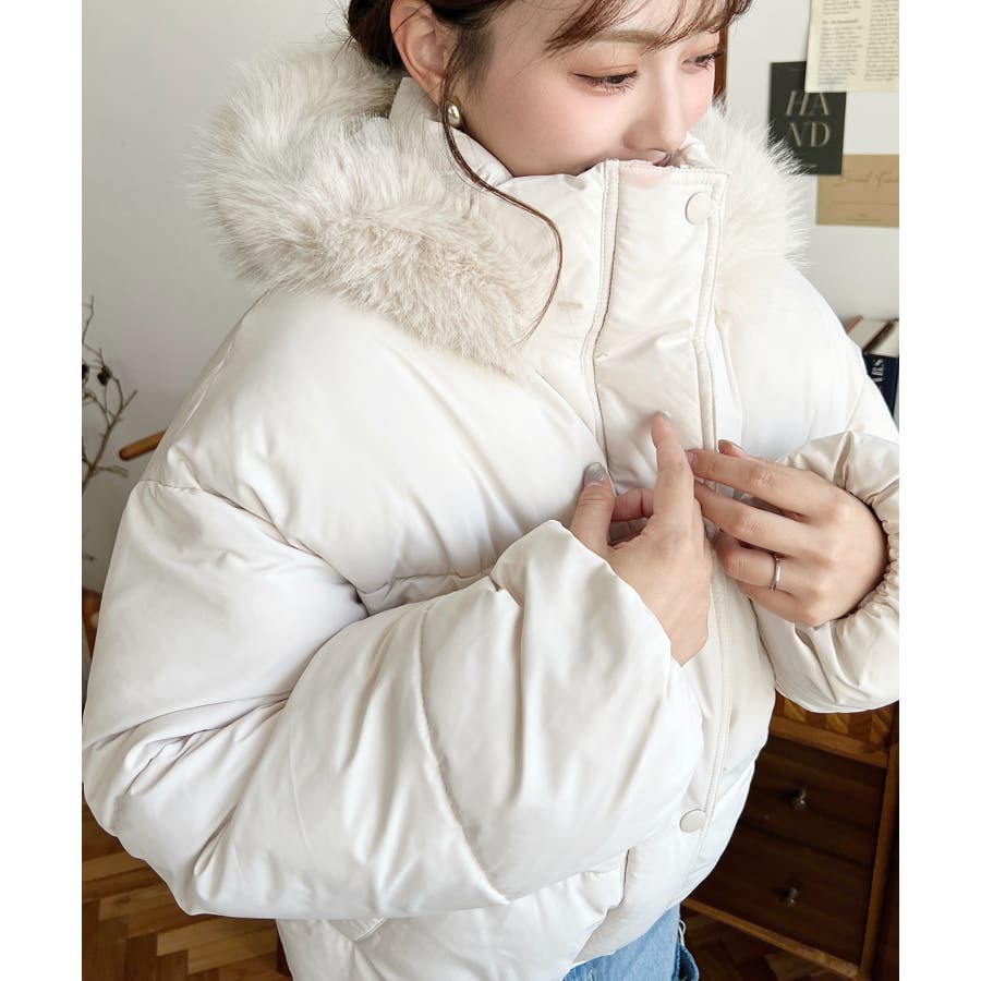 ・スカート合わせでフェミニンなスタイルにも対応。・フードのファーがアクセントになり、シンプルなコーディネートもぐっと華やかに。