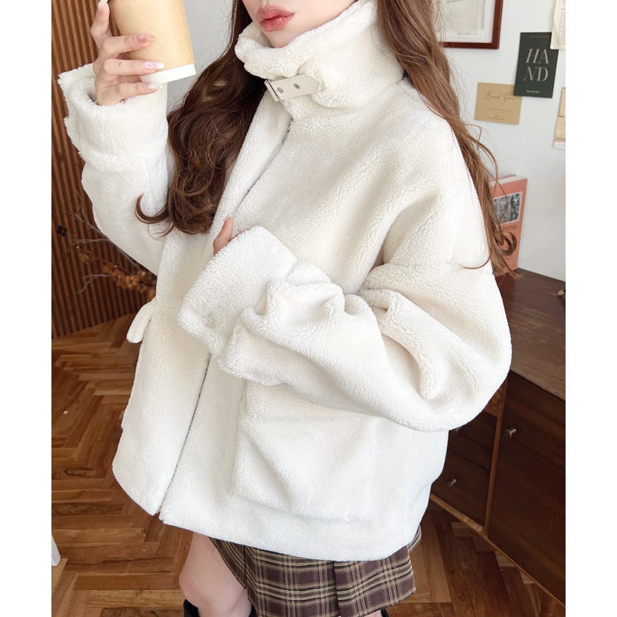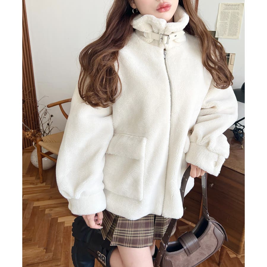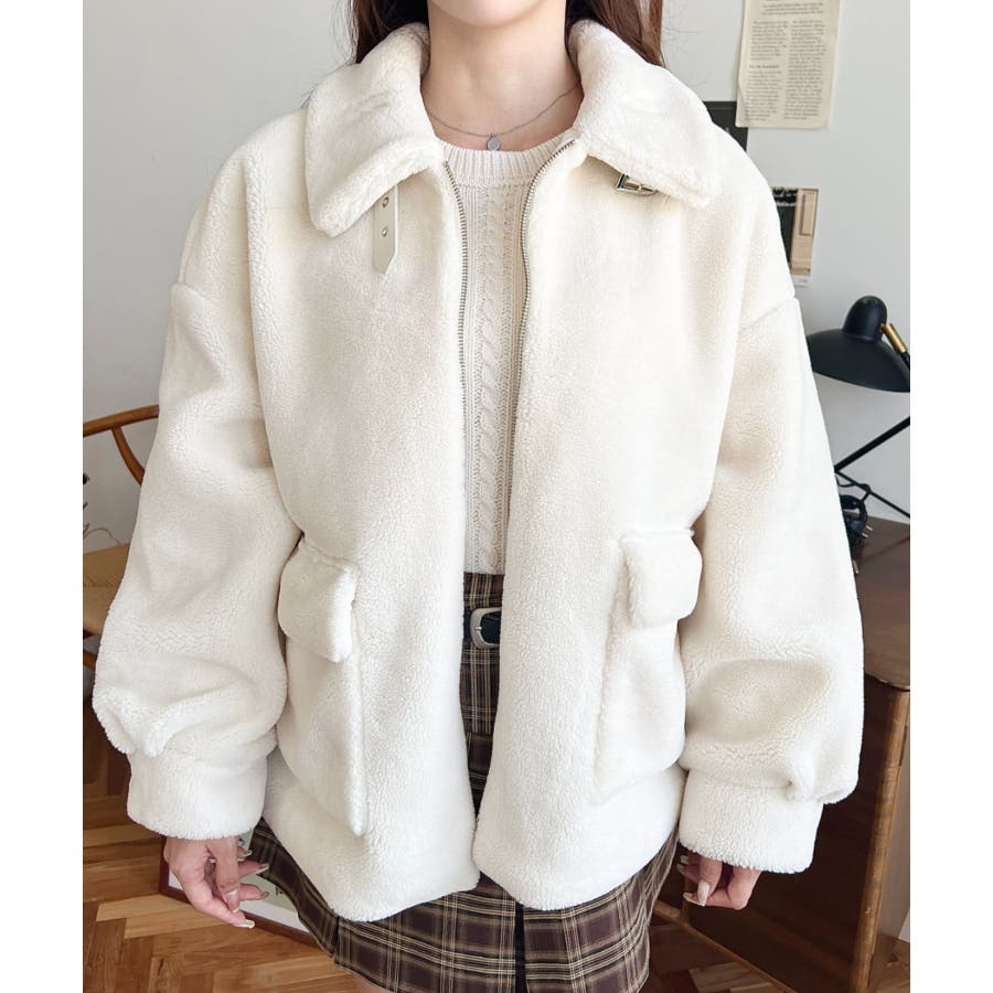 ・ふかふかな肌ざわりのテディベアボア素材を使用した、シーズンムードたっぷりのブルゾンが登場!