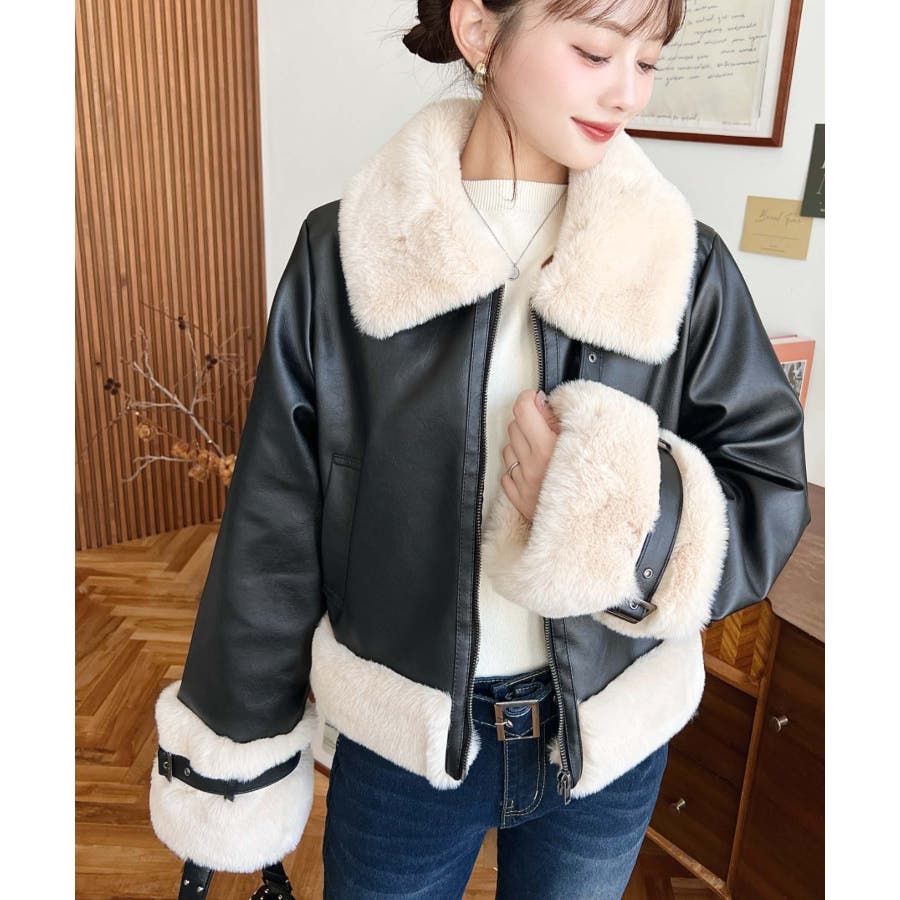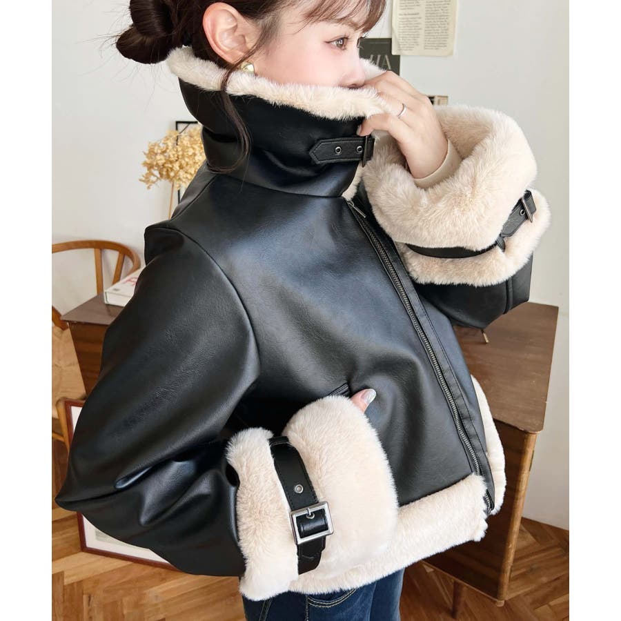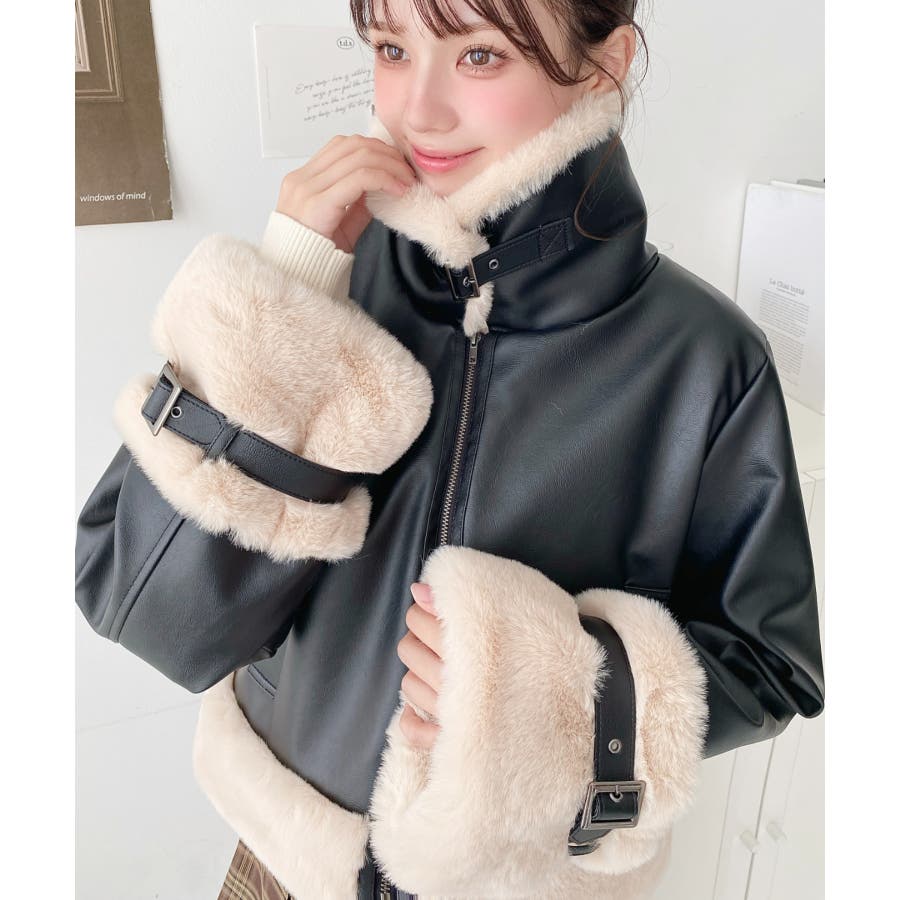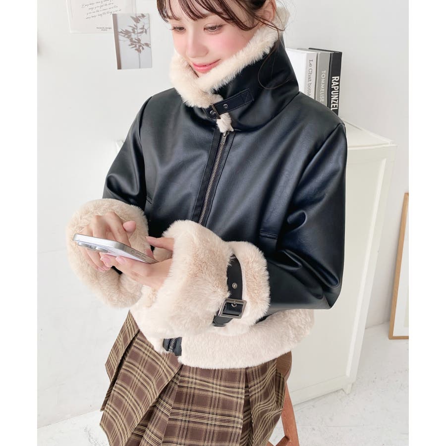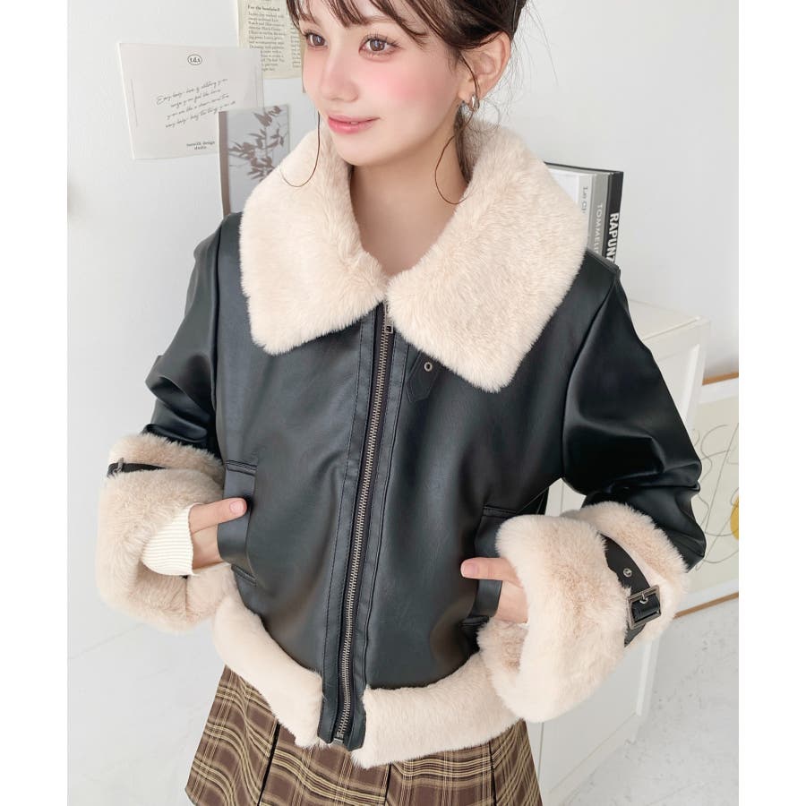 【レザージャケット×フェイクファーでこなれ感UP!羽織るだけでスタイルが決まるフライトジャケット♪】