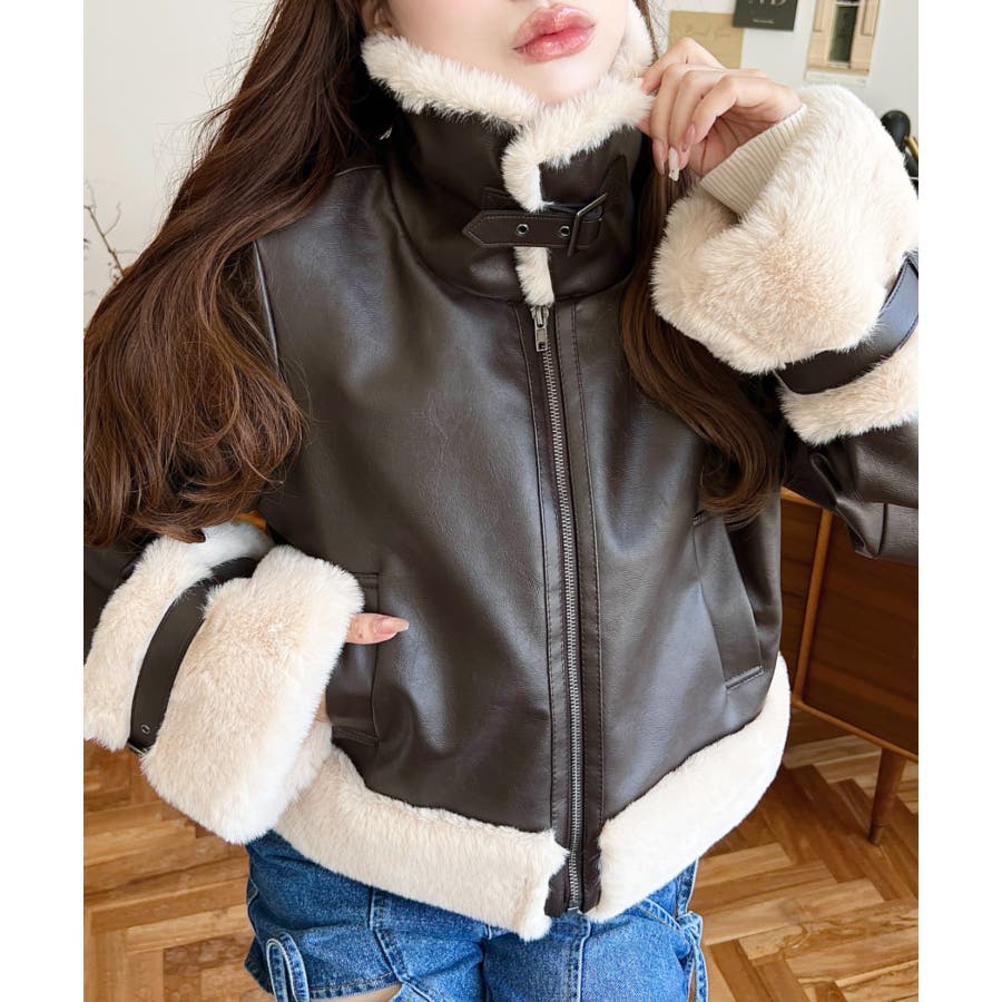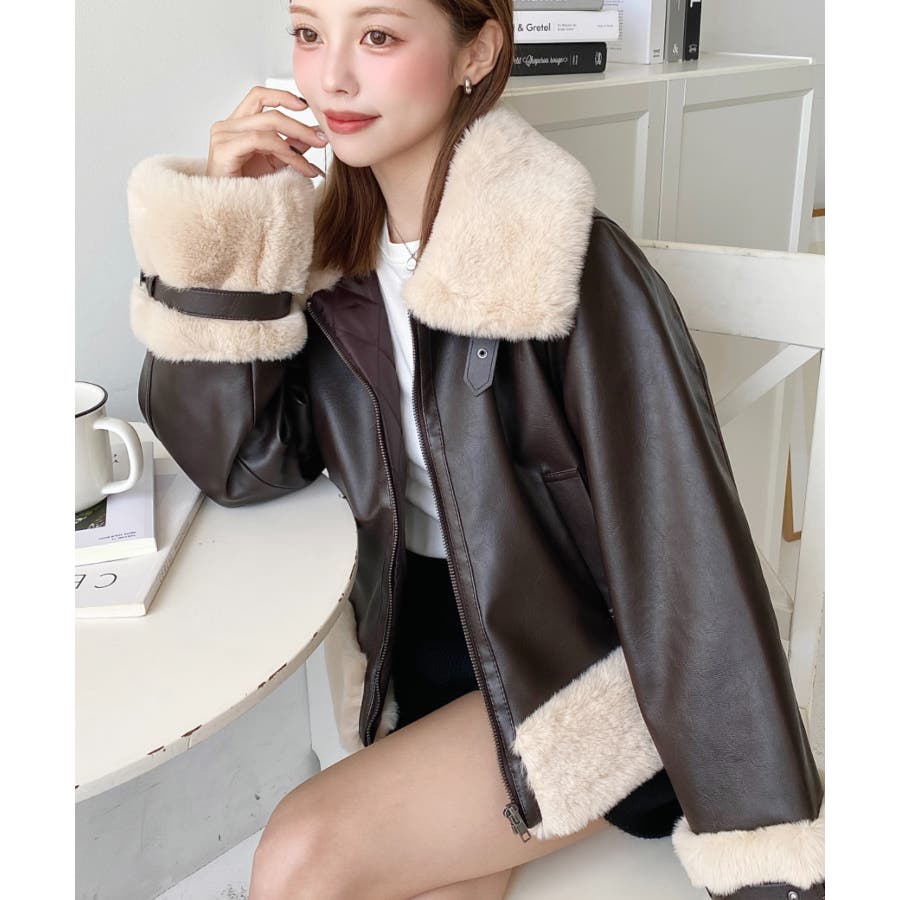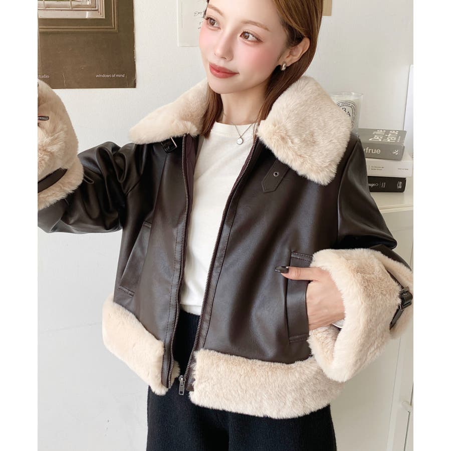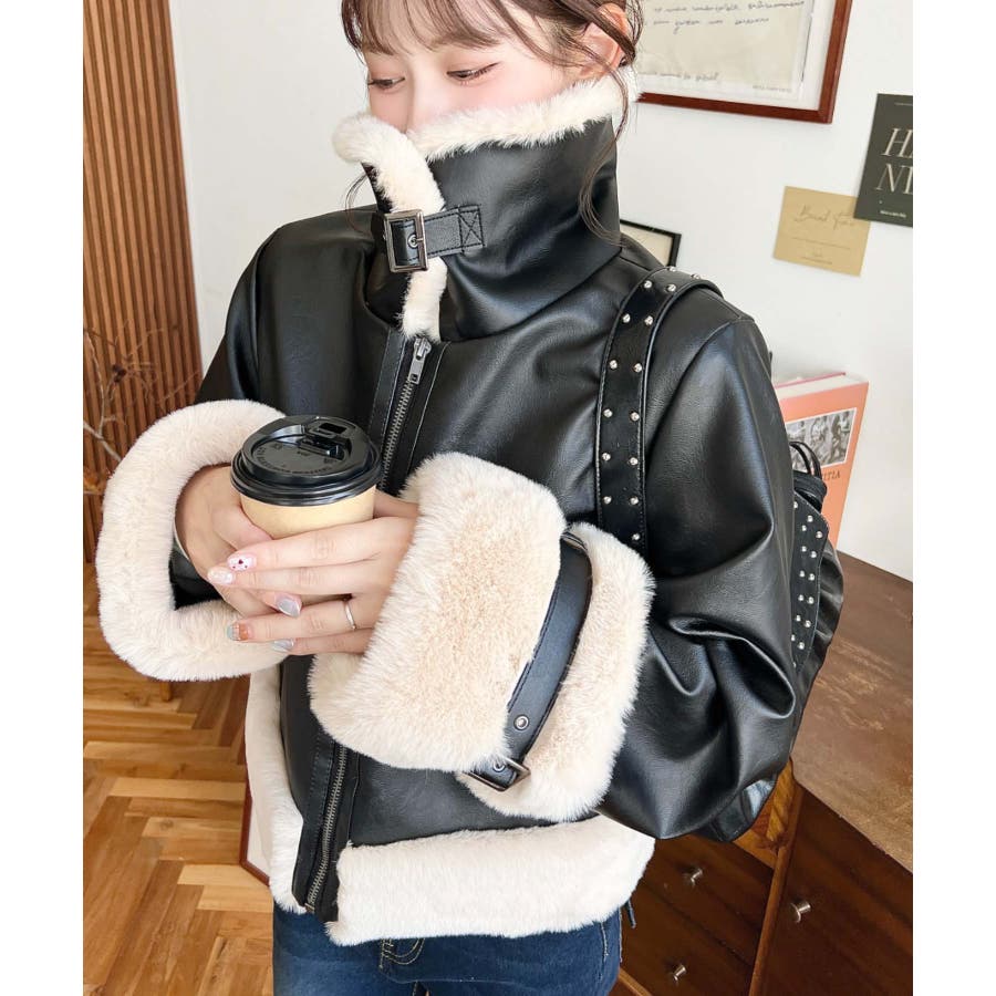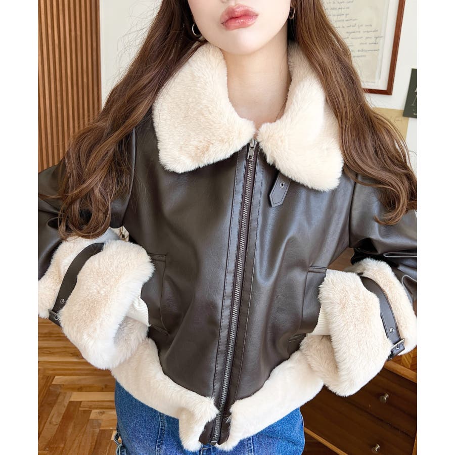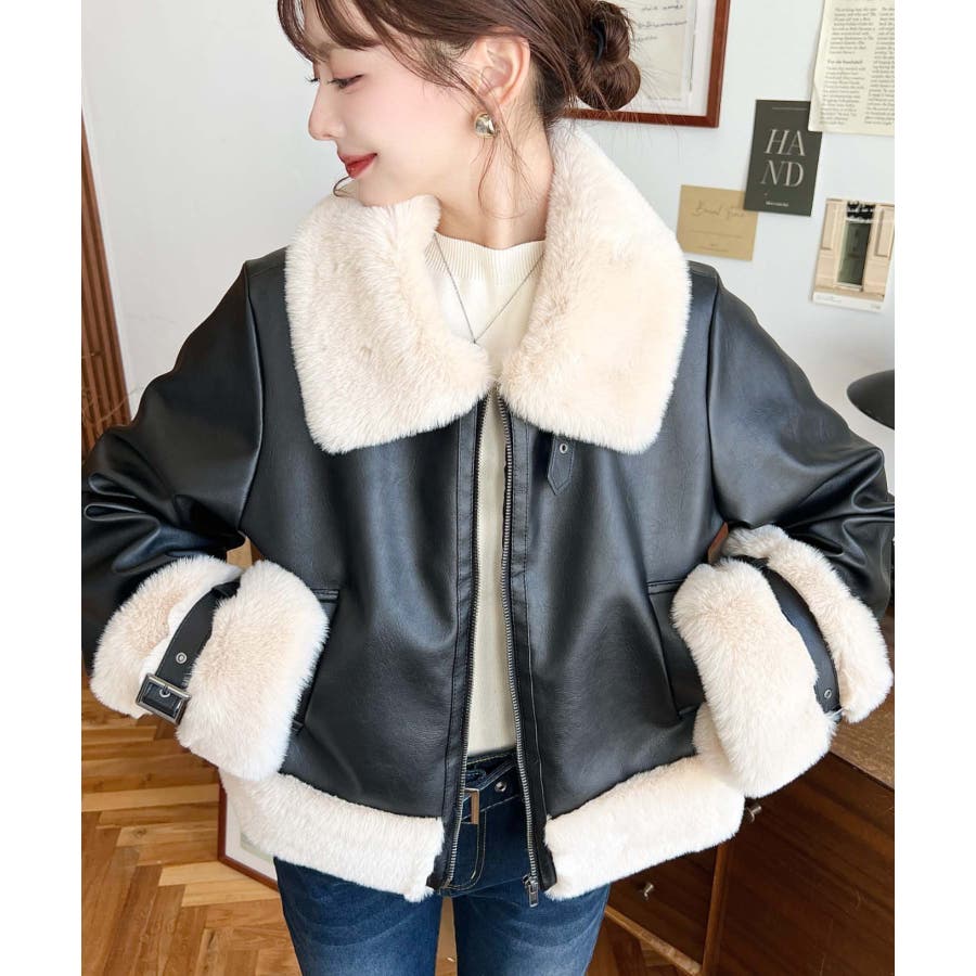 【レザージャケット×フェイクファーでこなれ感UP!羽織るだけでスタイルが決まるフライトジャケット♪】