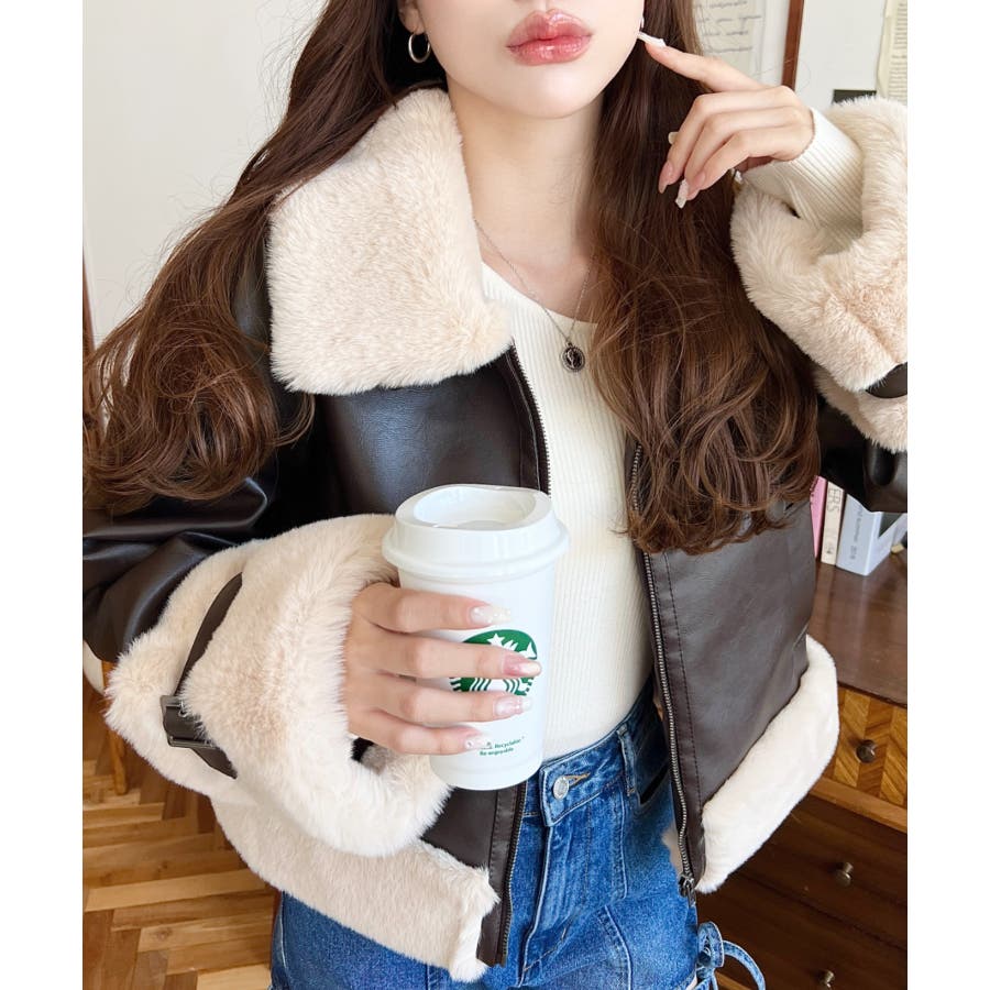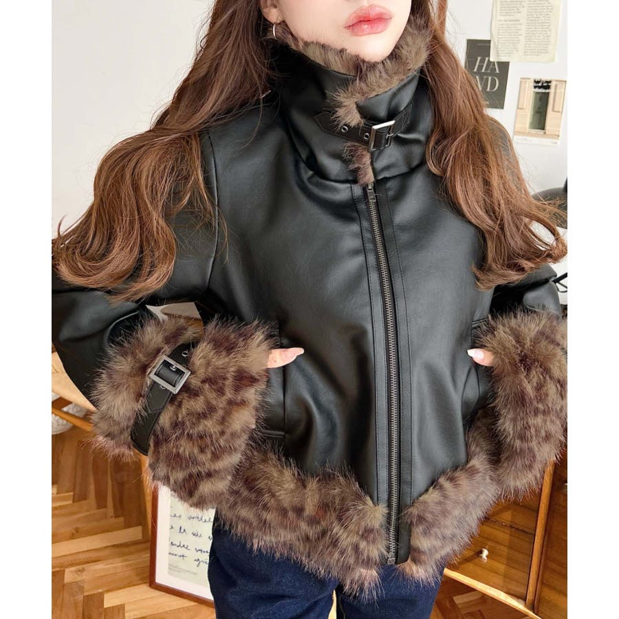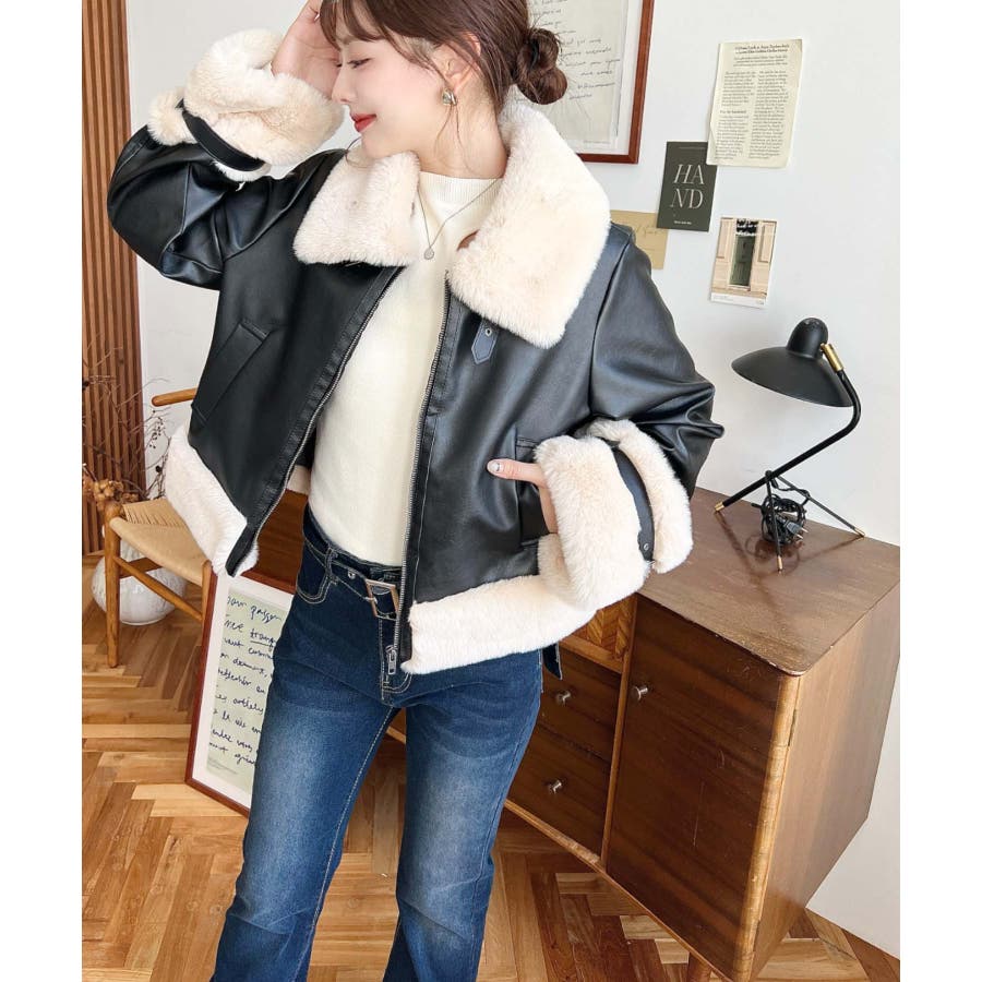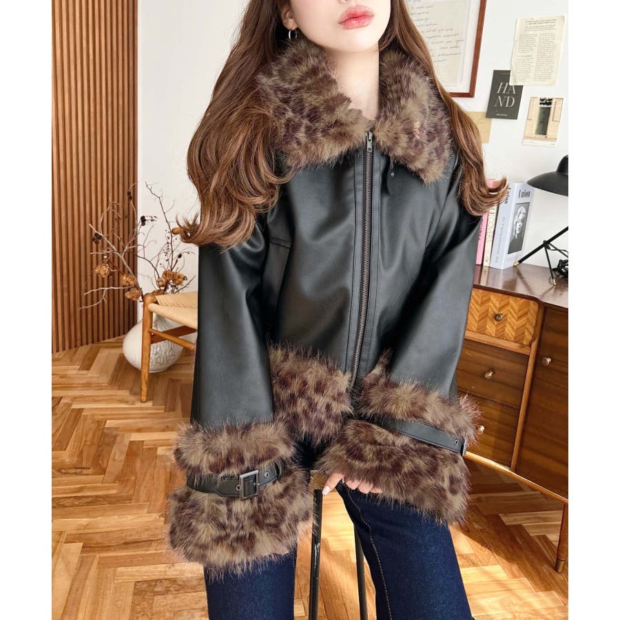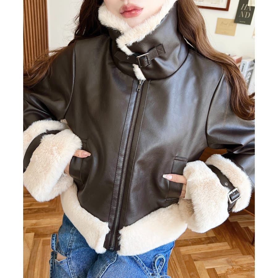 【レザージャケット×フェイクファーでこなれ感UP!羽織るだけでスタイルが決まるフライトジャケット♪】