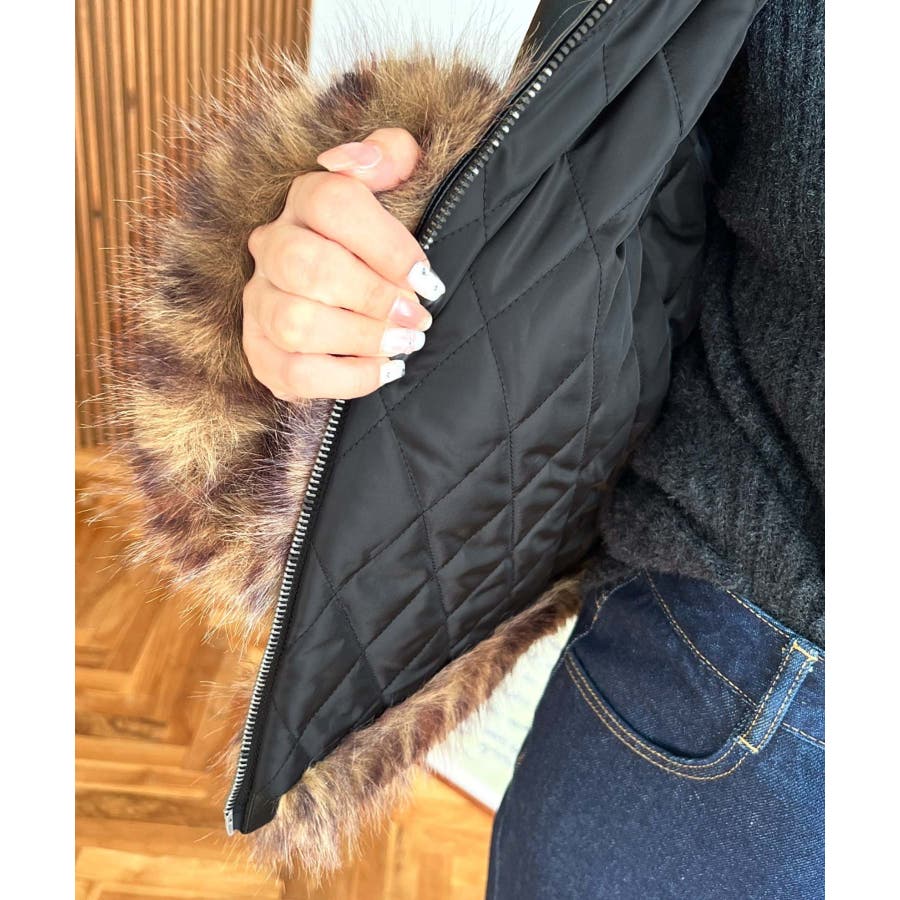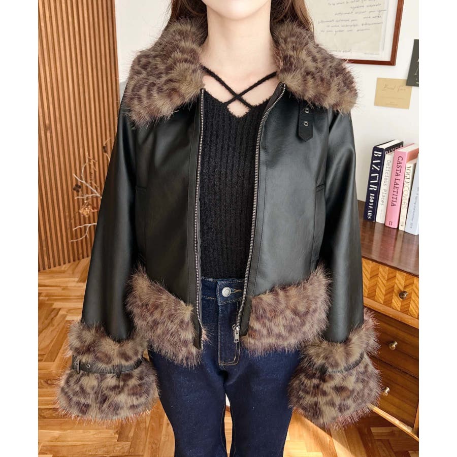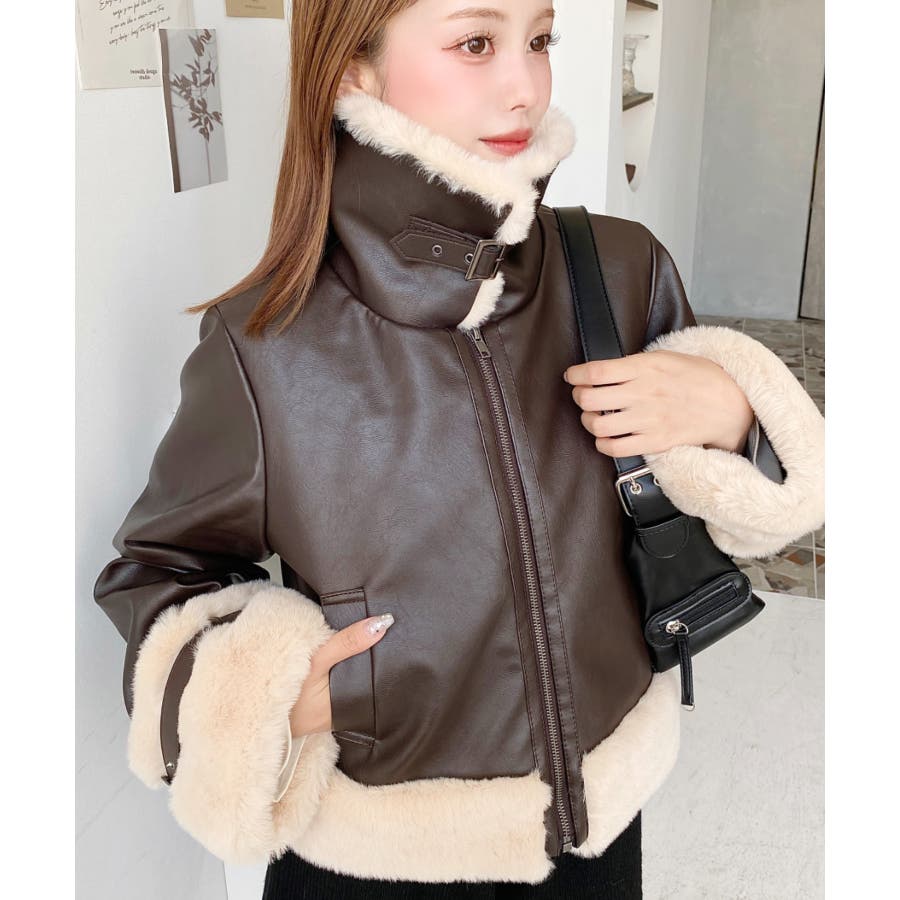 ・裏地はキルト仕立てで防寒性も高く、真冬でも快適な着心地。フェイクレザーならではの軽さと扱いやすさで、デイリーに楽しめる一枚です。