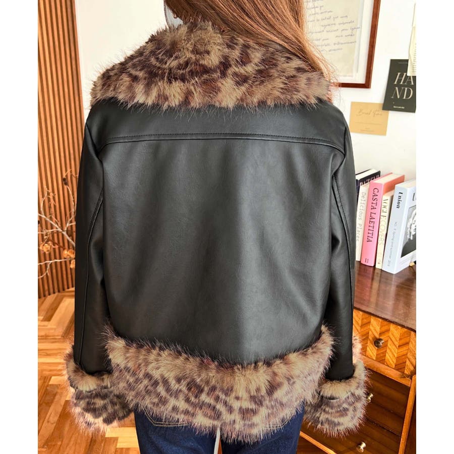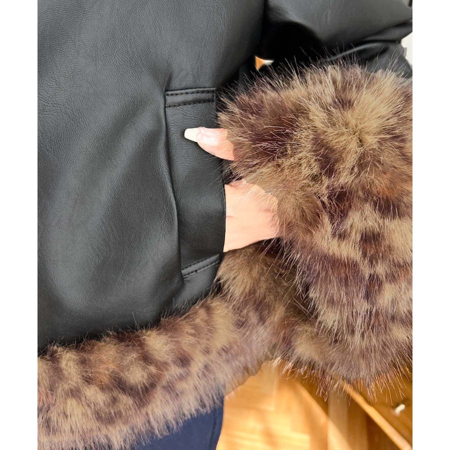 フェイクレザー×フェイクファームートン風裏地キルトフライトジャケット