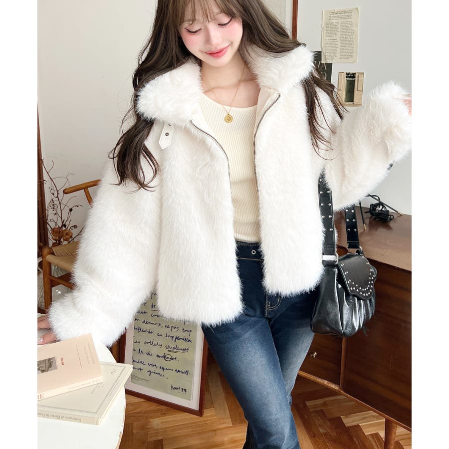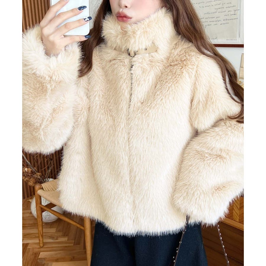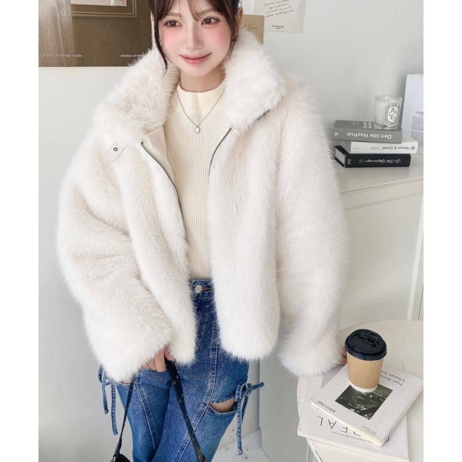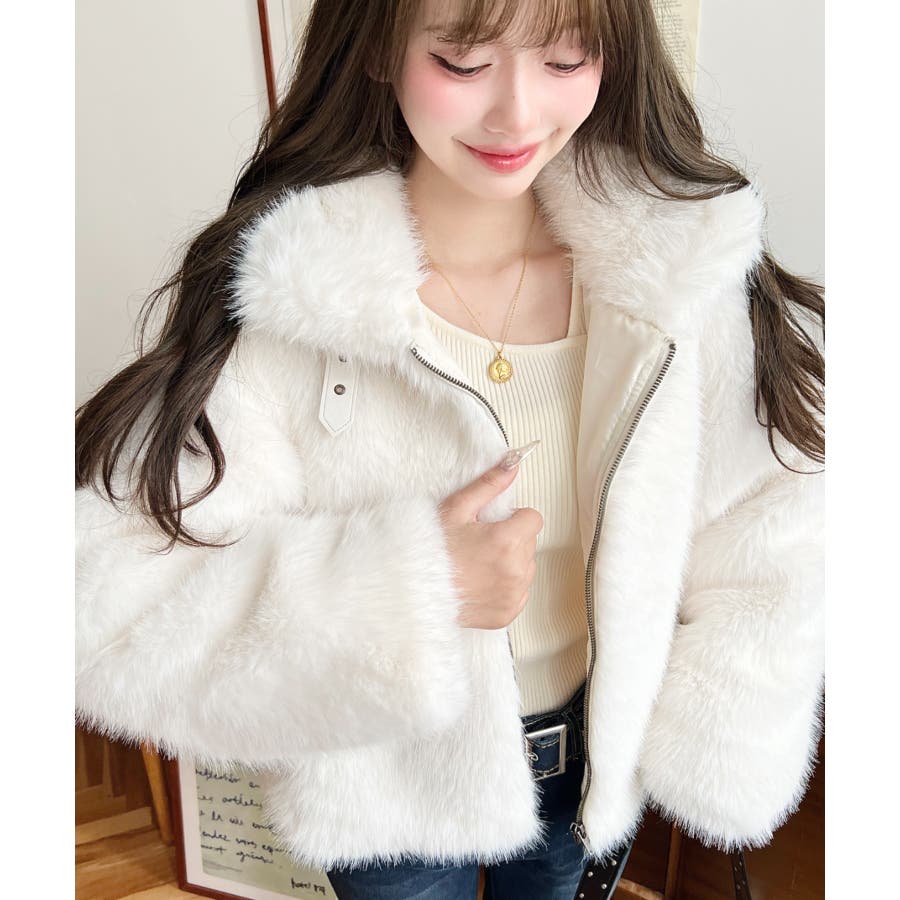 ・ふわふわで触り心地が良く、見た目にも季節感と可愛らしさをプラス。羽織るだけで高級感を演出するフェイクファーブルゾン♪