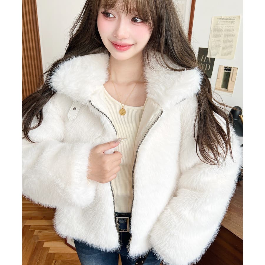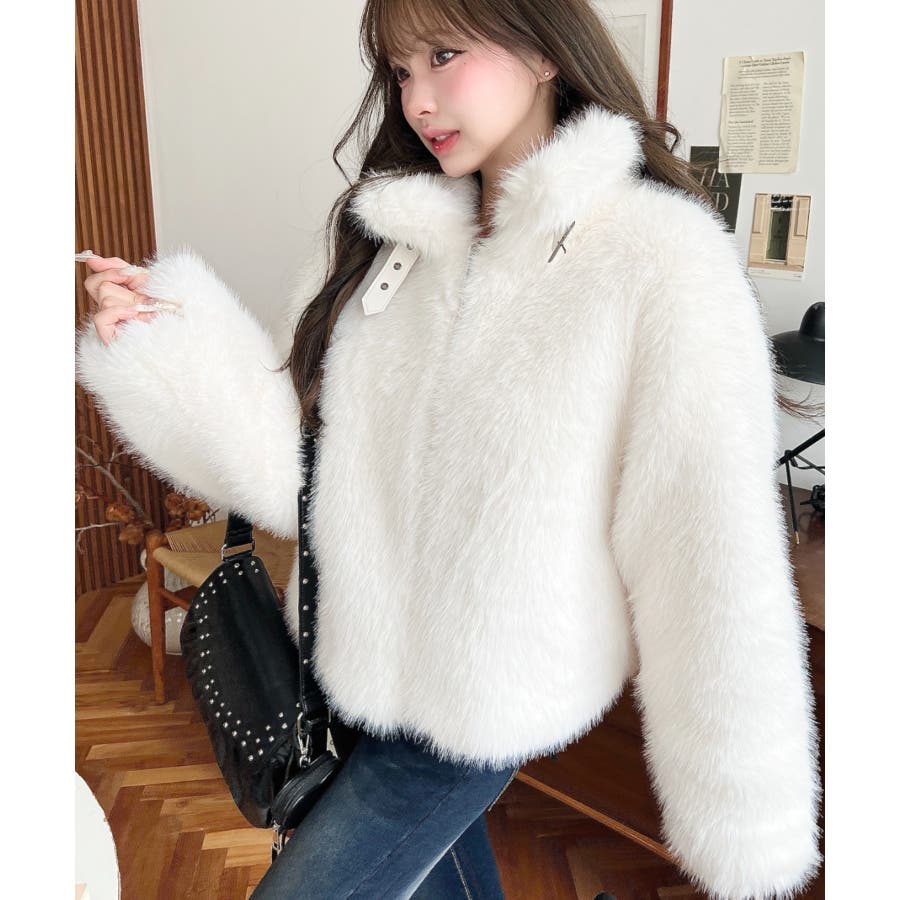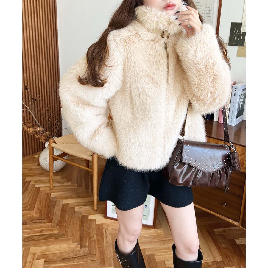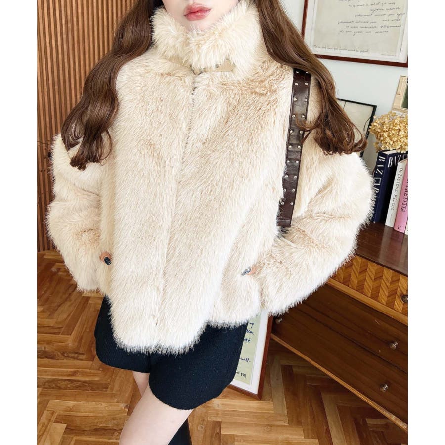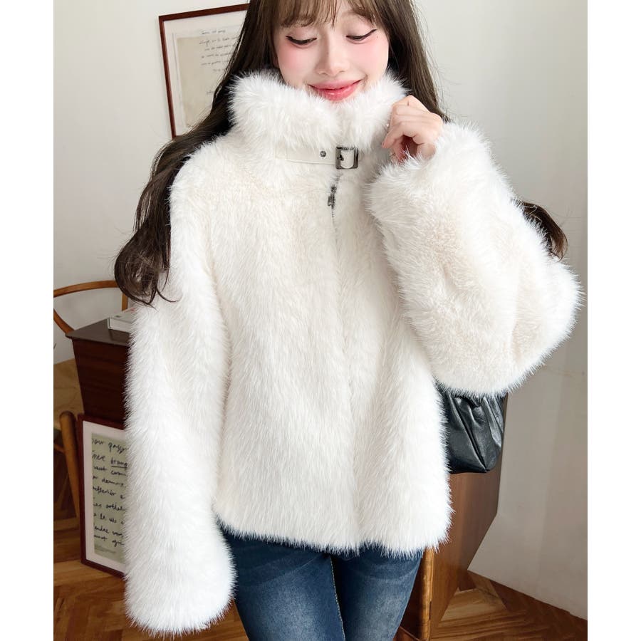 ・ふわふわで触り心地が良く、見た目にも季節感と可愛らしさをプラス。羽織るだけで高級感を演出するフェイクファーブルゾン♪