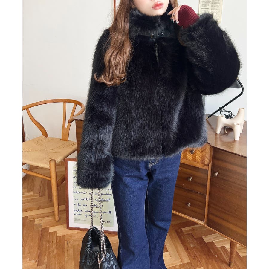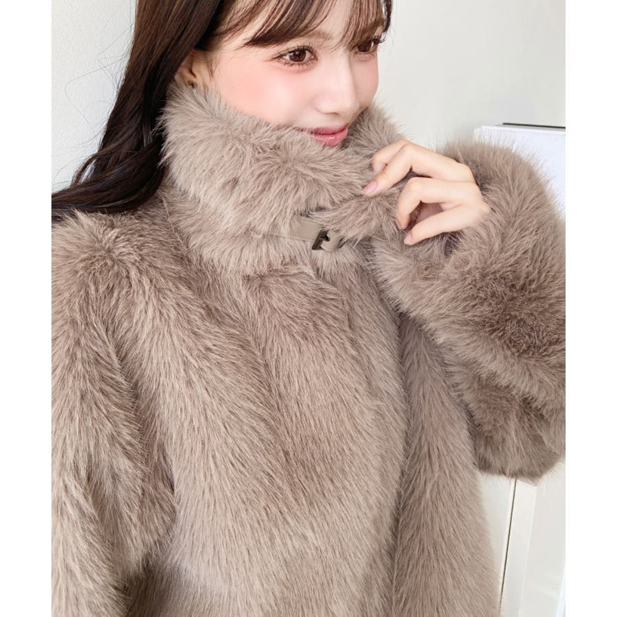 もこもこファーがとにかく可愛くて、着るだけで着映えしコーデに高級感が出るので大人っぽコーデで合わせたいです◎