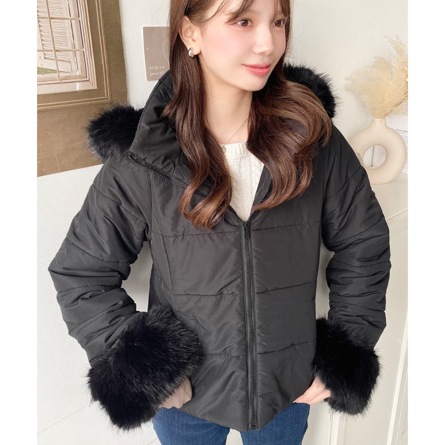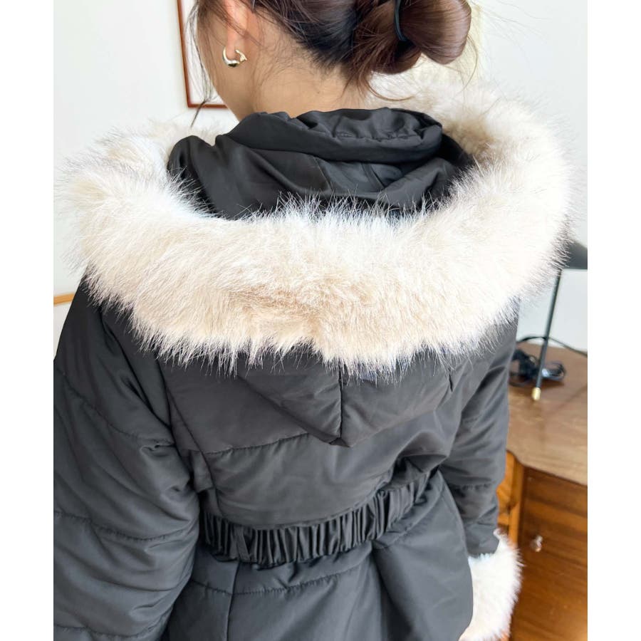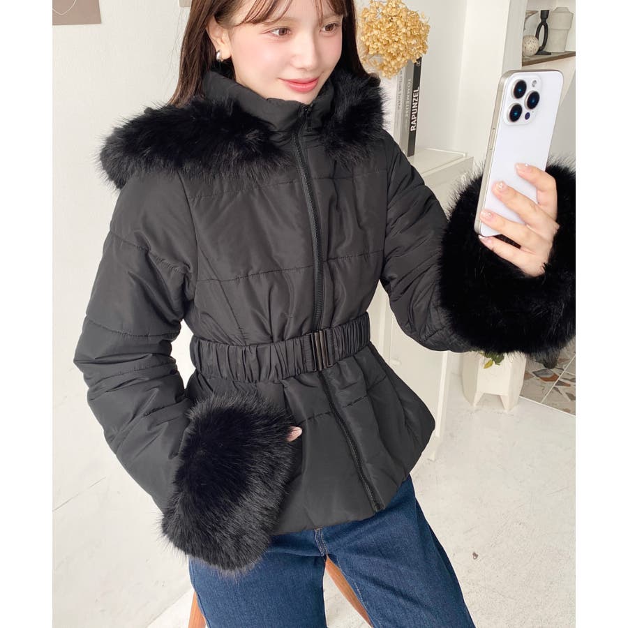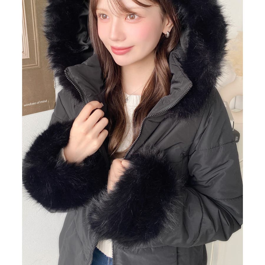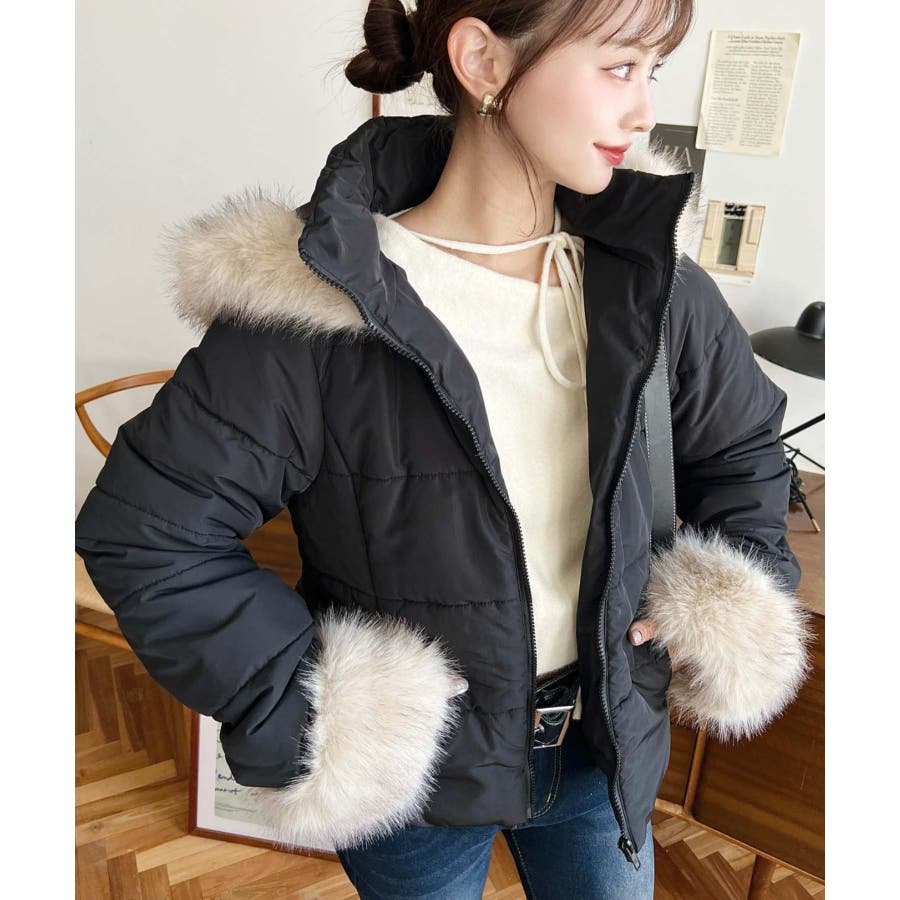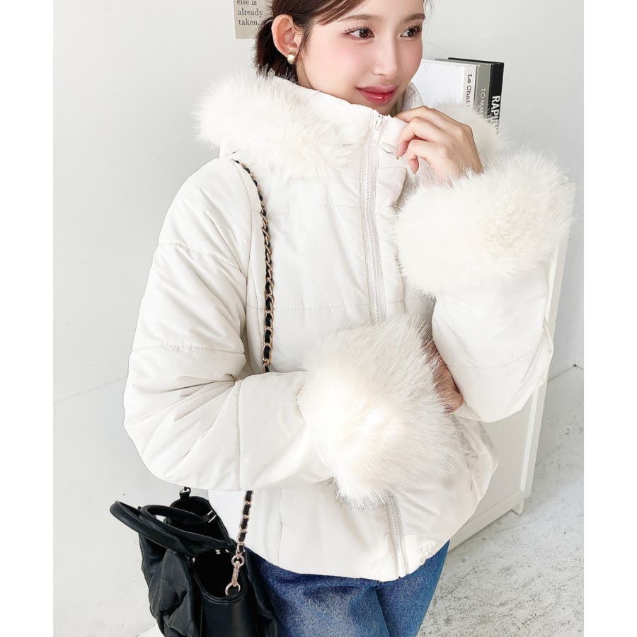 ・顔まわりのフードファーで華やかに、さらにボリュームが出ることで小顔見え効果もあり、コーデのアクセントになる冬には欠かせないダウンジャケットです♪