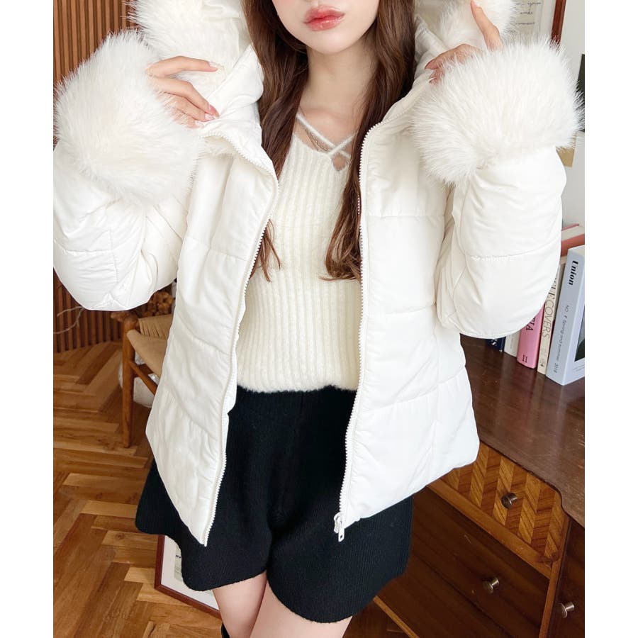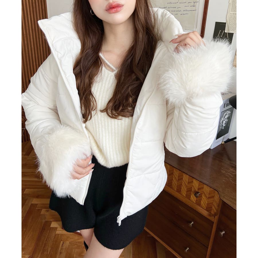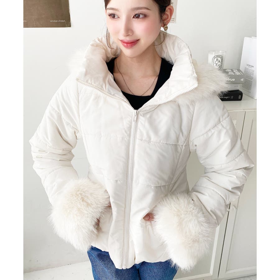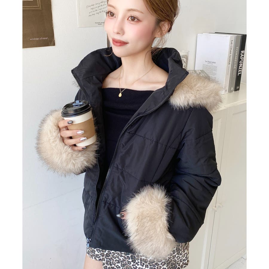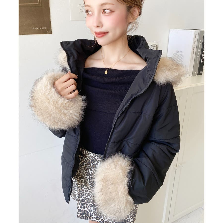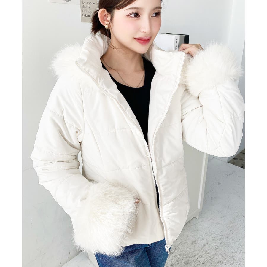 ・顔まわりのフードファーで華やかに、さらにボリュームが出ることで小顔見え効果もあり、コーデのアクセントになる冬には欠かせないダウンジャケットです♪