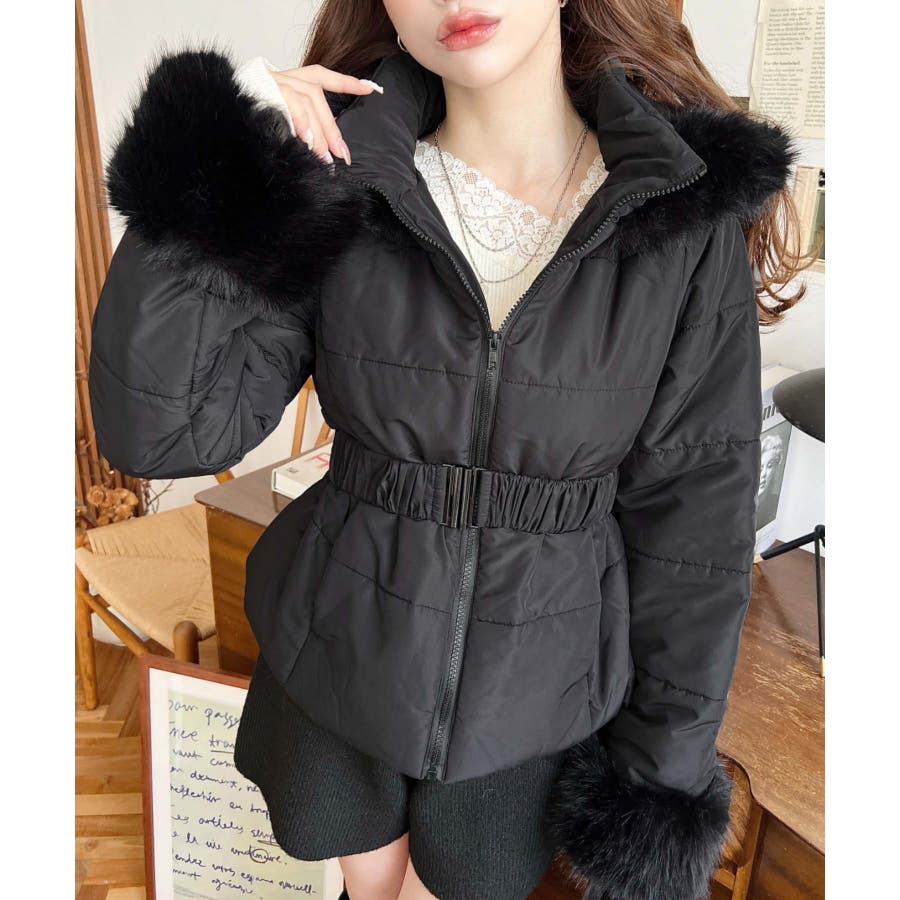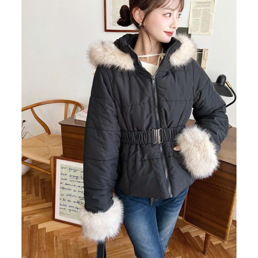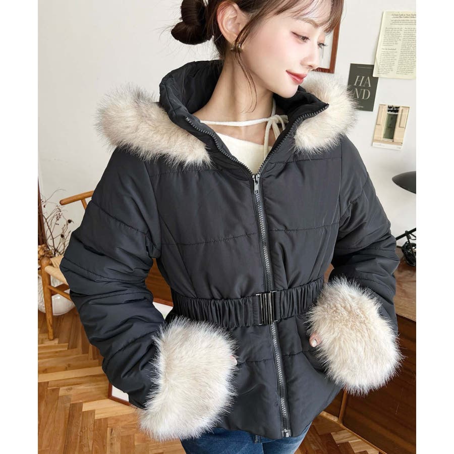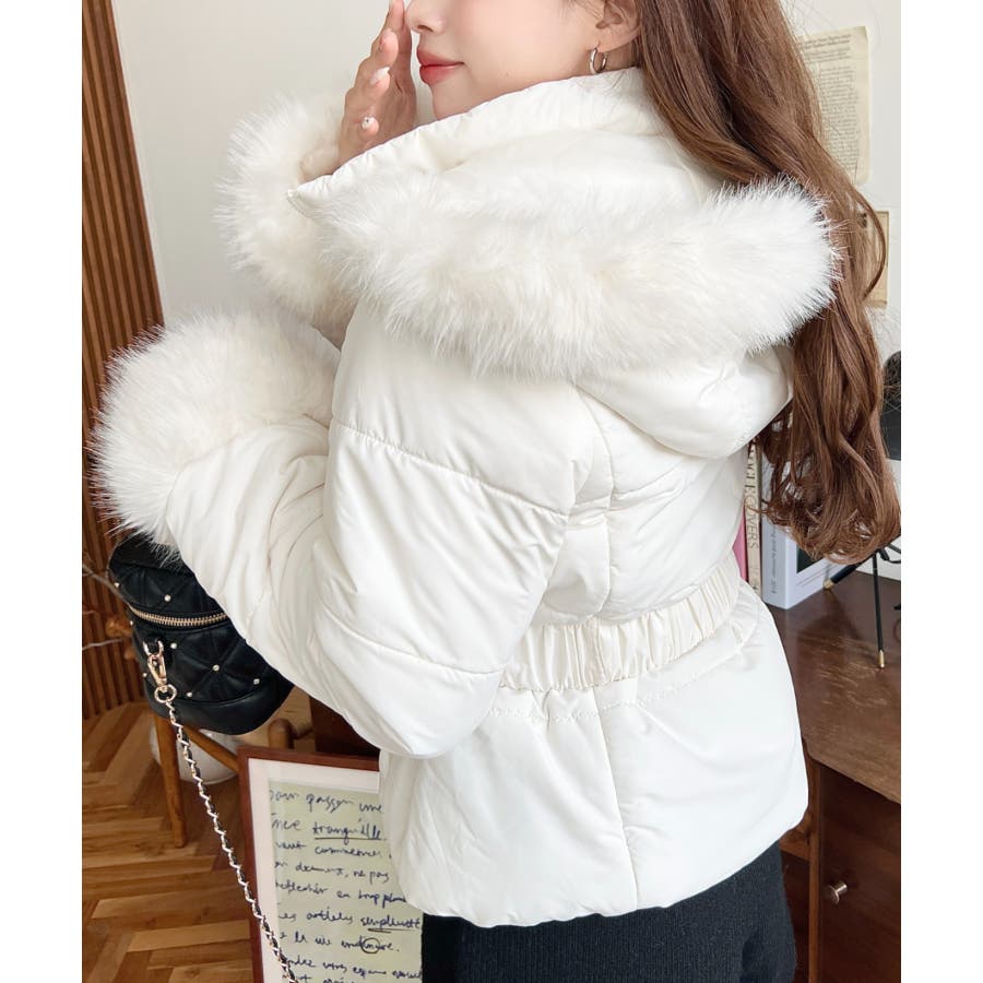 【ウエストマークで冬もスタイルアップ、軽やかに暖かく、防寒もおしゃれも叶えるフードファーダウンジャケット♪】